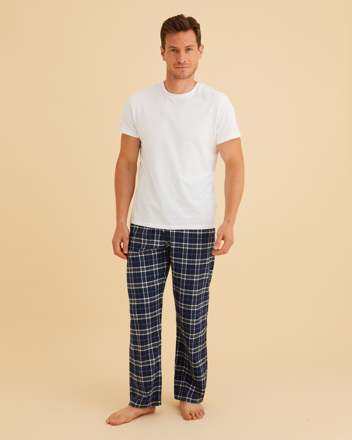 Men's Brushed Cotton Pyjama Trousers - Navy Gingham