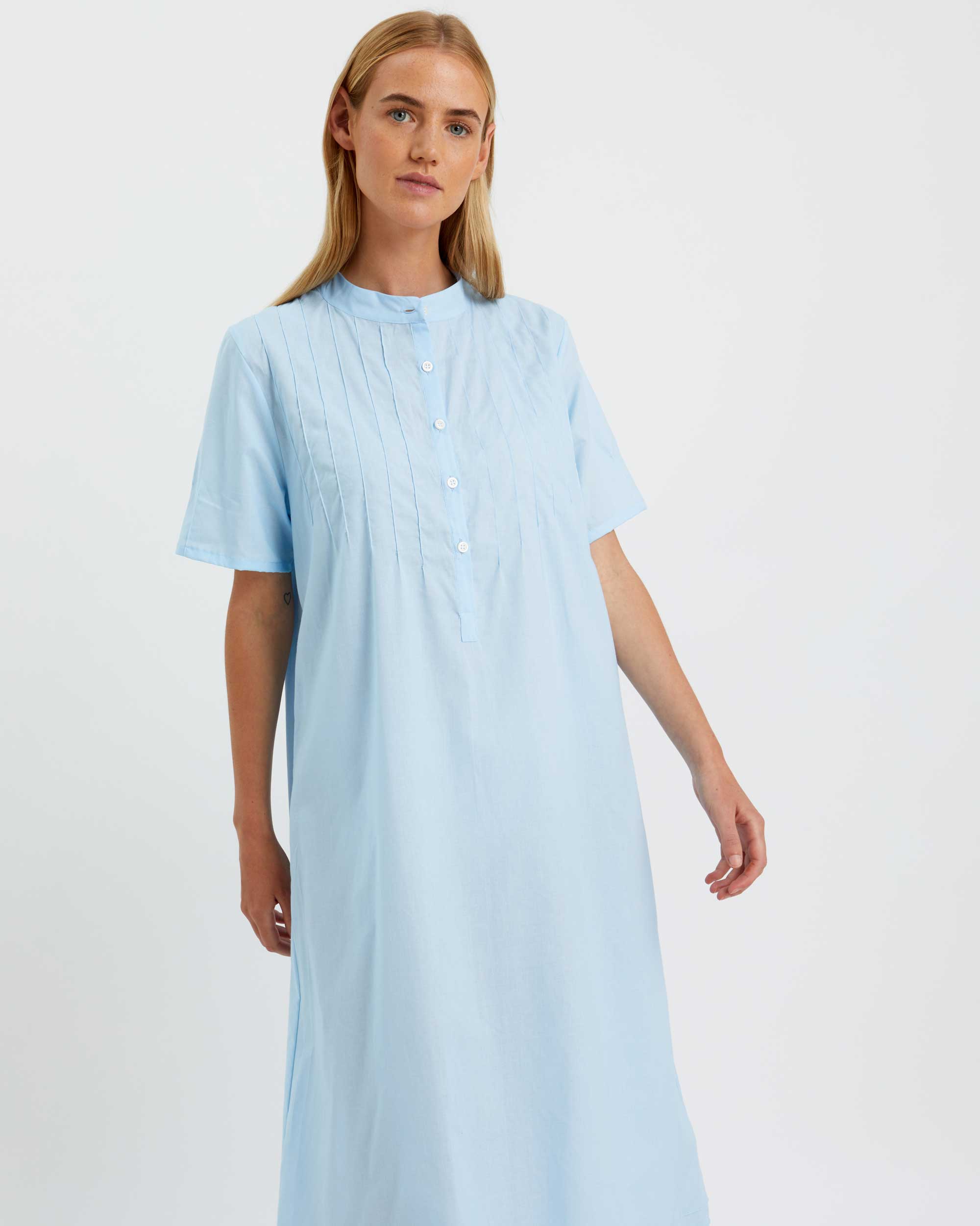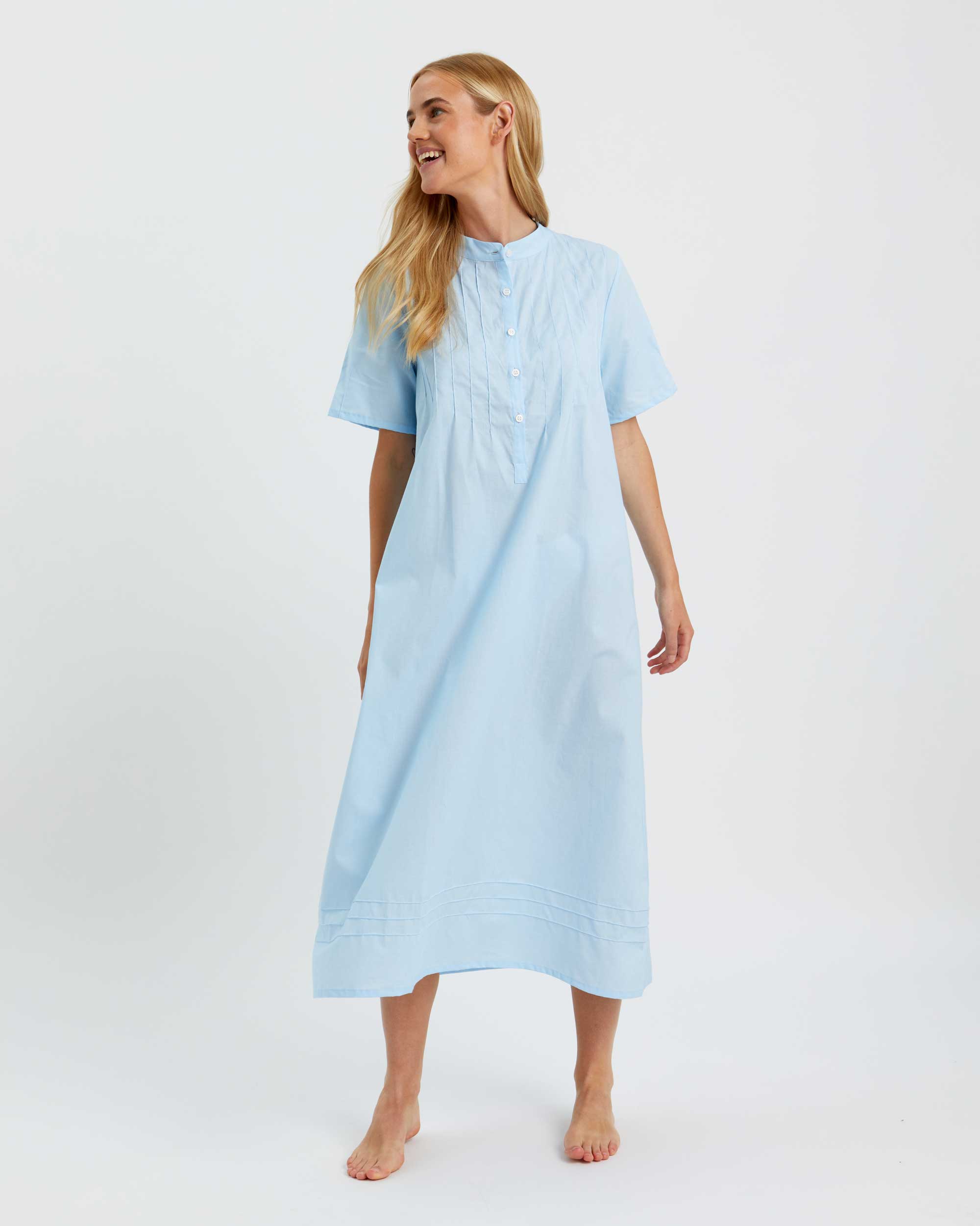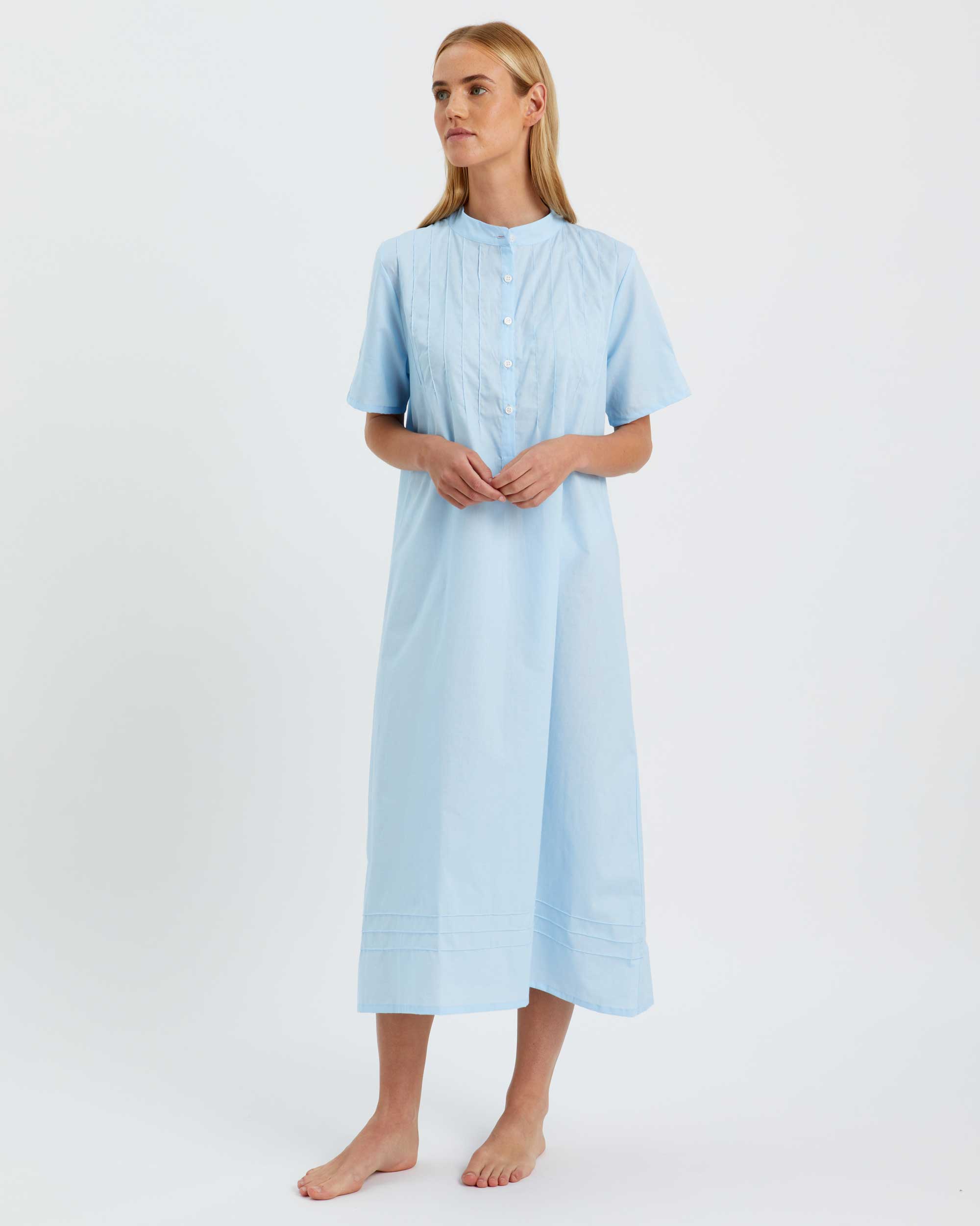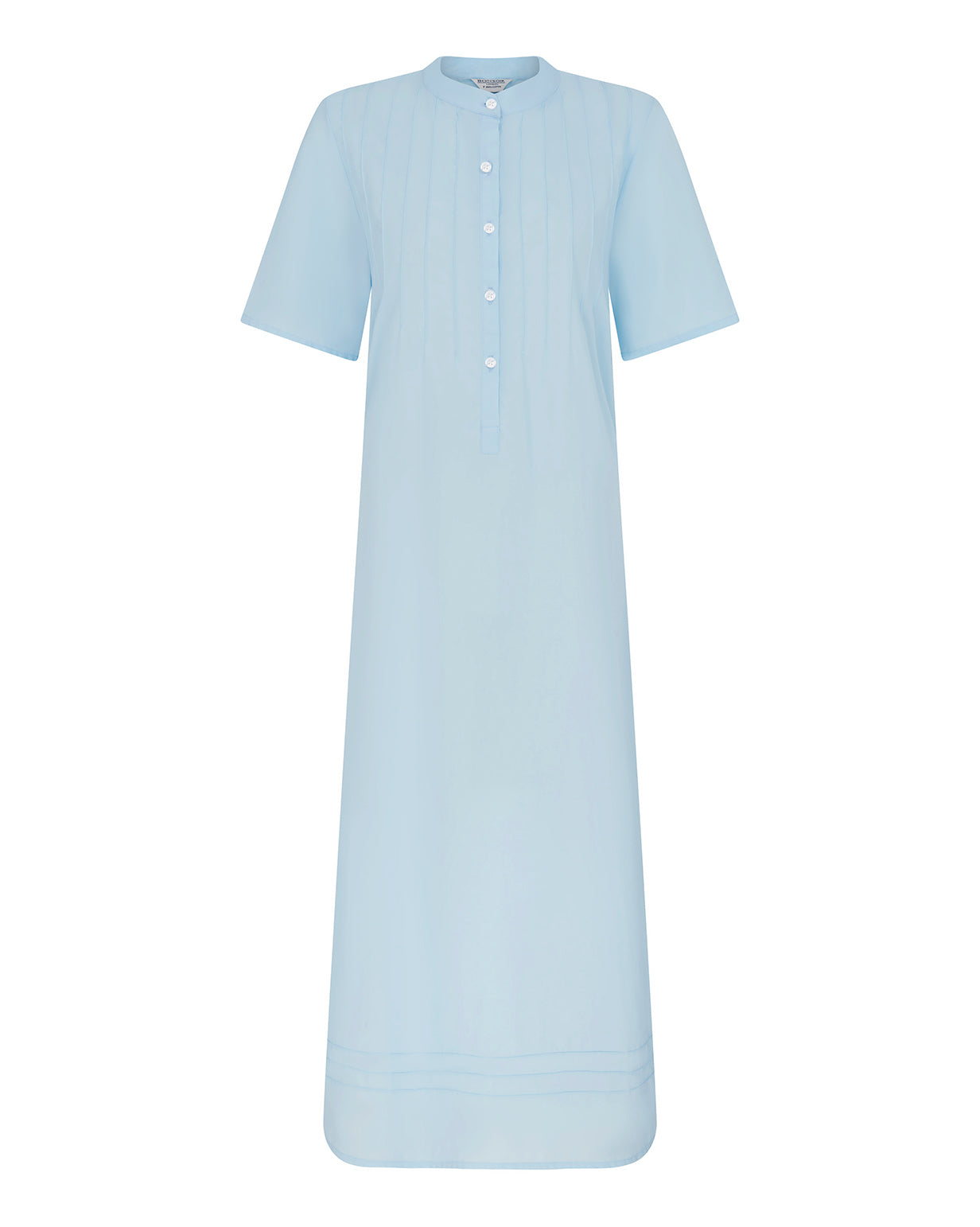 Our Victoria Short-Sleeved Cotton Nightdress in blue is elegance and comfort combined, the perfect pairing for luxury sleepwear.