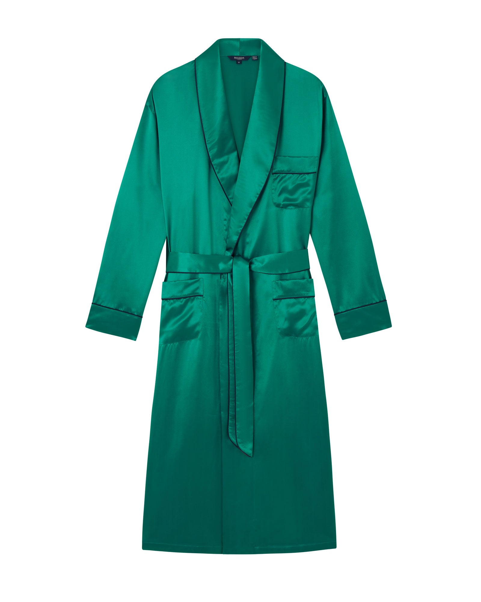 Made with a lustrous 19 momme Belgravia silk satin in green, our men's silk dressing gown is the perfect addition to his nightwear collection and makes for ultra-luxurious nights in.