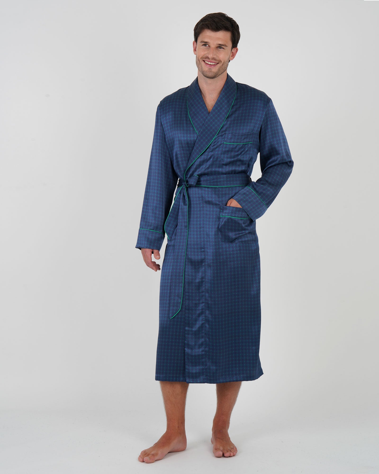 Our men’s silk dressing gown is the perfect addition to his nightwear collection and makes for ultra-luxurious nights in.