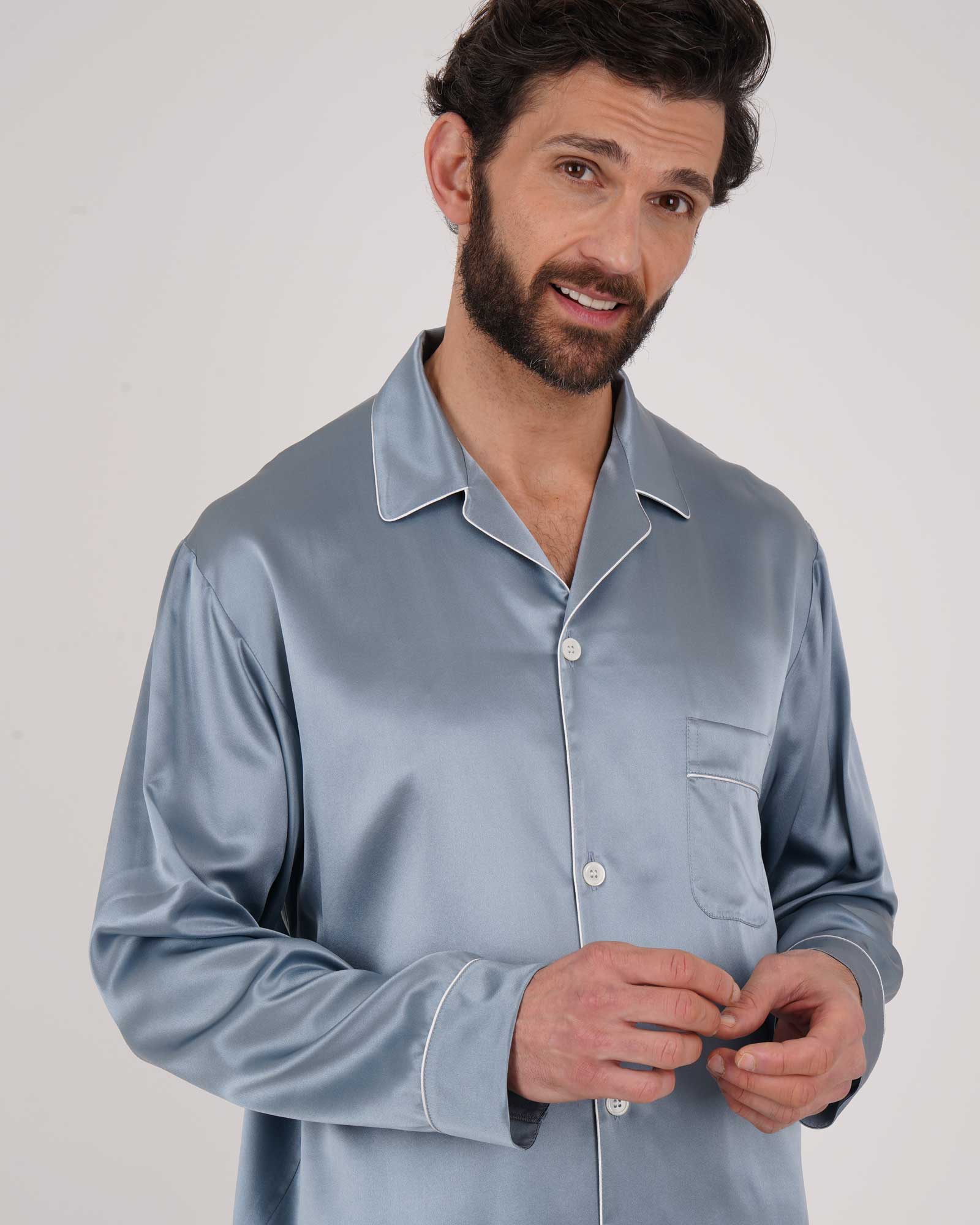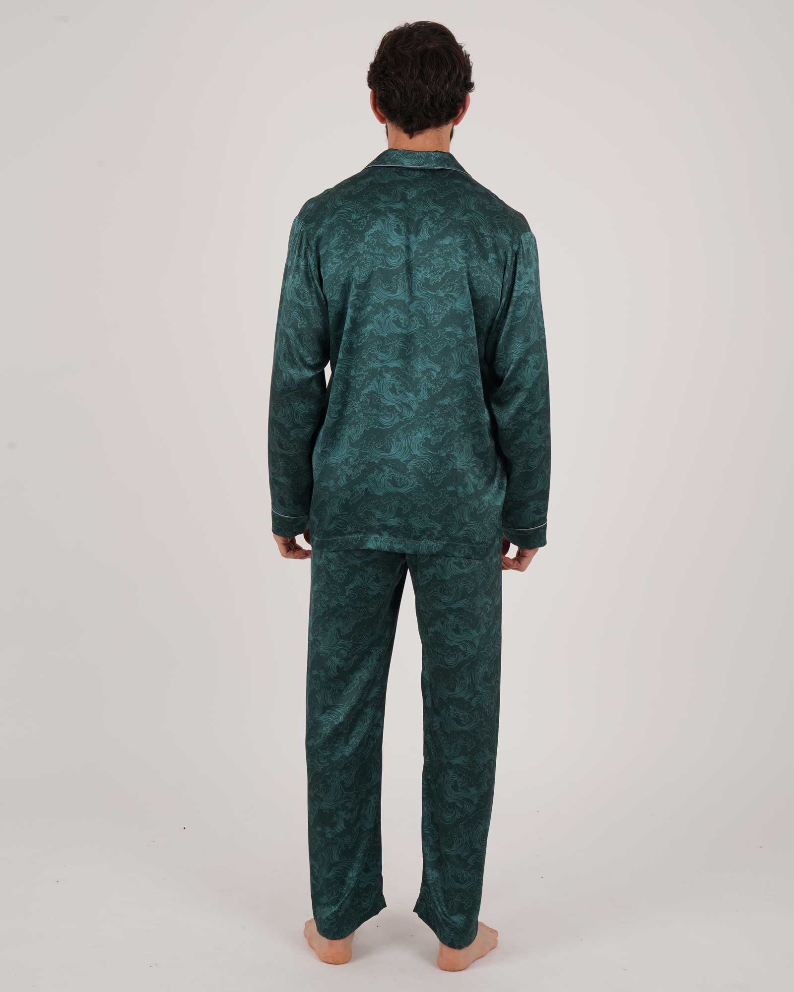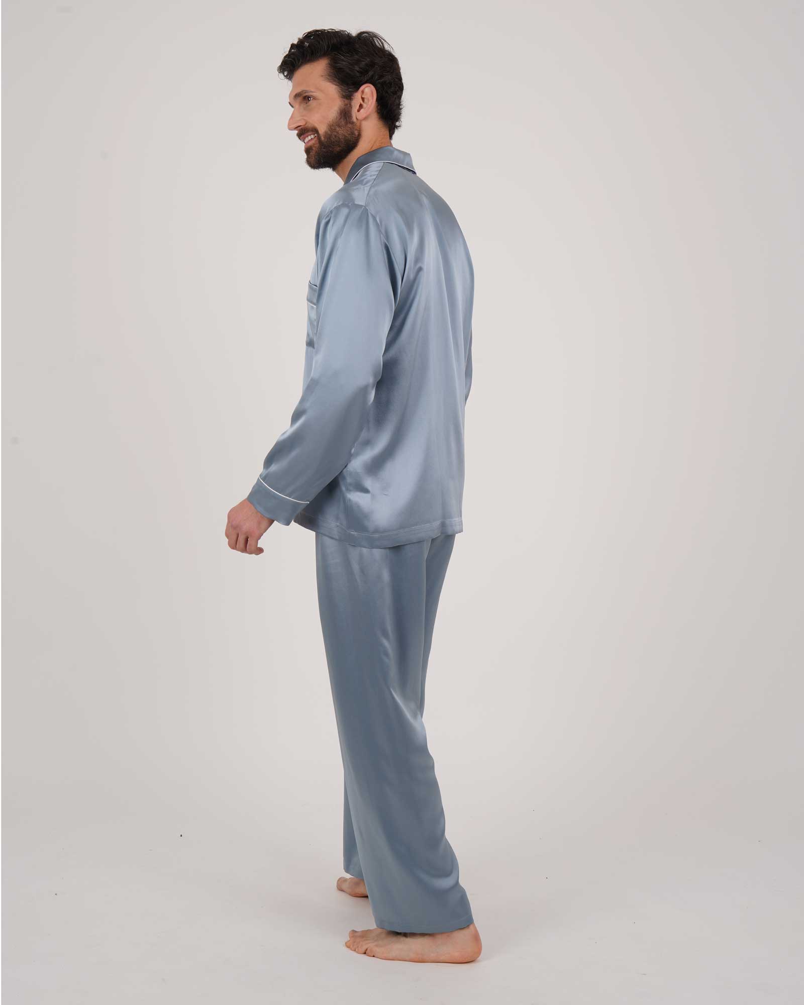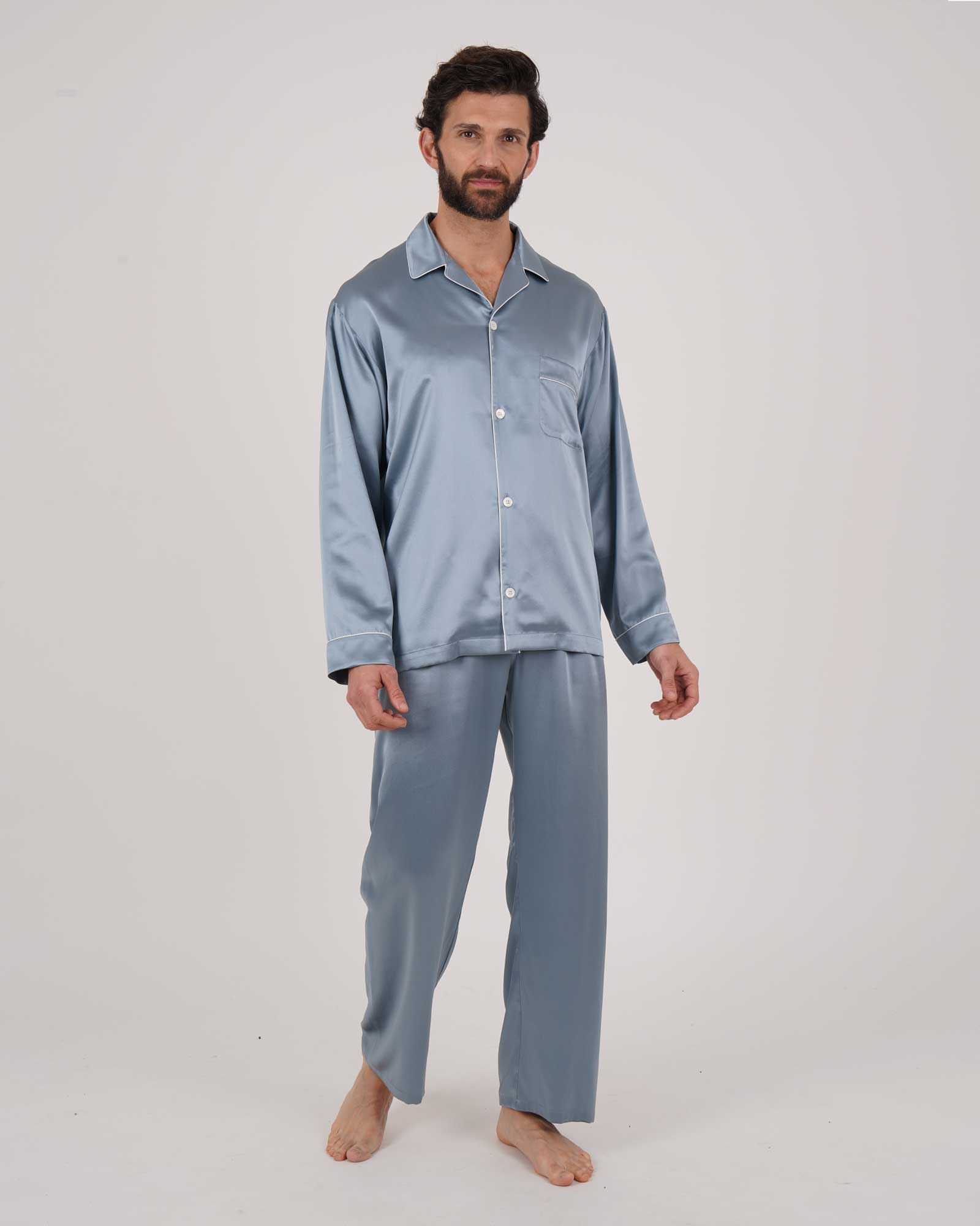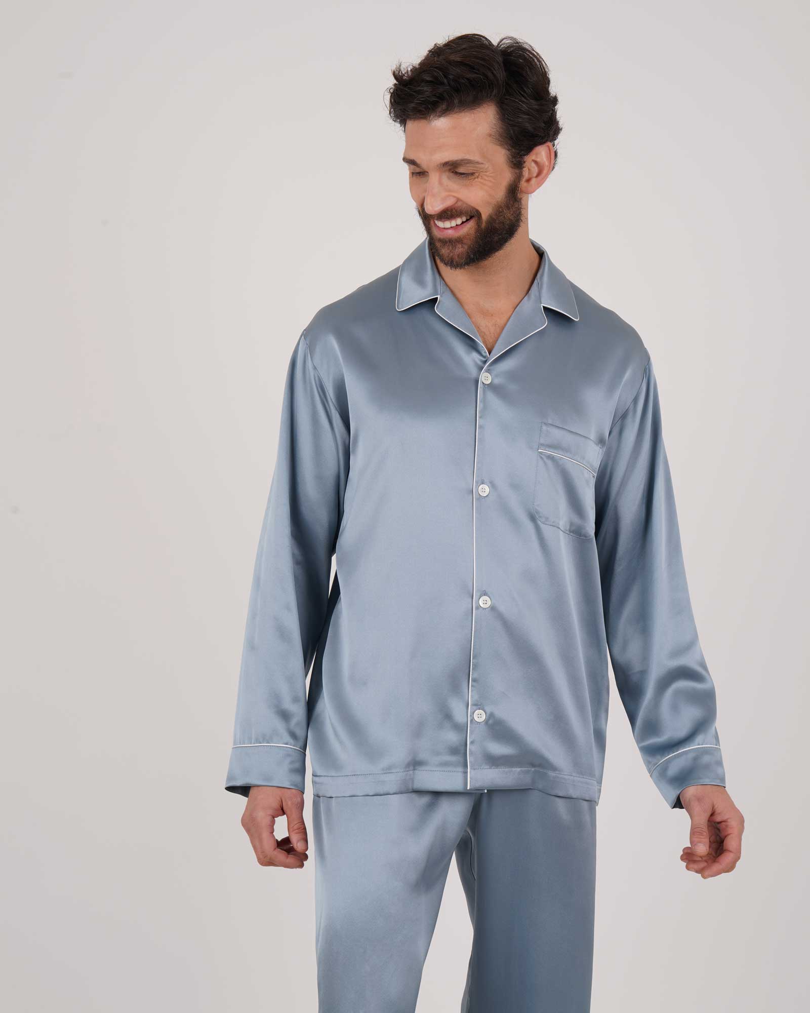 Our luxurious men's silk pyjamas are the perfect loungewear addition to your seasonal wardrobe. Cut from 19 momme silk satin fabric in our amazing teal hue, these pyjamas are tailored for a relaxed yet stylish fit which ensures they won't feel restrictive when sleeping. Each piece handmade in Somerset, England the classic shape has been refined since its debut in 1926 but stays true to its undeniably masculine cut and traditional styling.