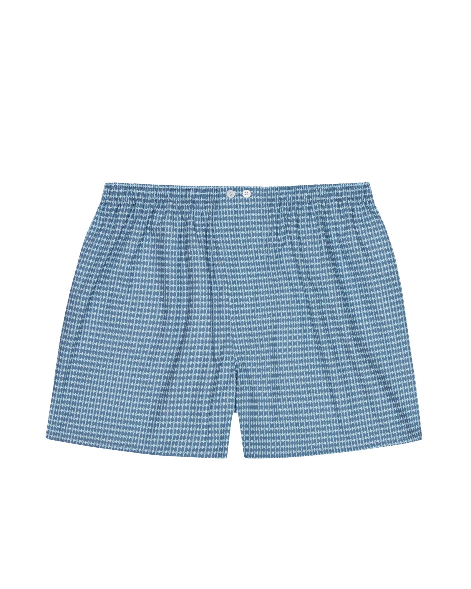 These boxer shorts in our brand new Padbury Geo Light Blue print is a take on the classic check, and made from luxurious two-fold cotton. This exceptionally smooth fabric is created by using extra fine yarns which are spun together, producing a super fine weave. Cool to wear, the boxer shorts are sewn with a three-panel seat and feature extra smooth seams for comfort.