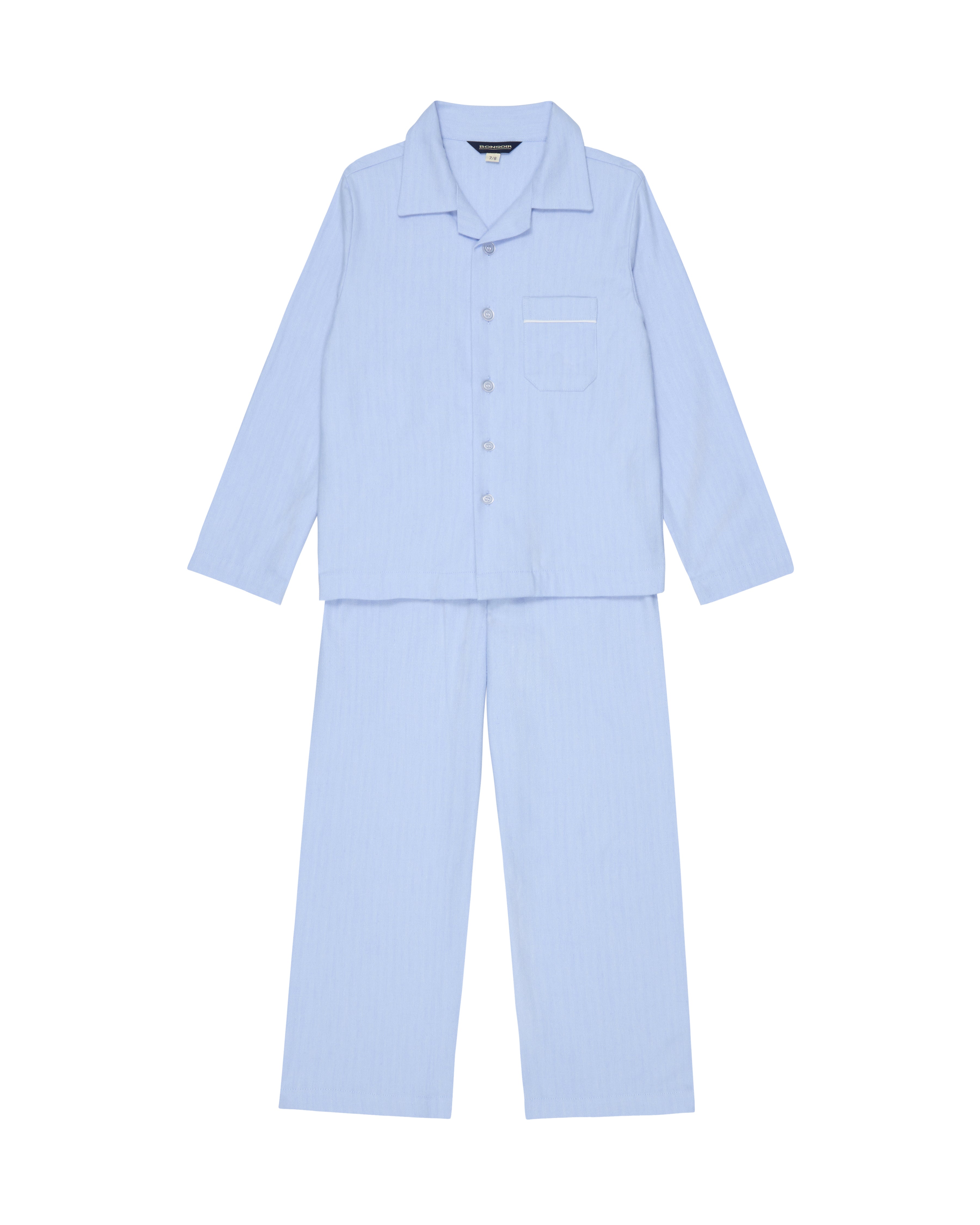 Made to exactly the same high standards as our men and women's pyjamas, and using the same quality fabrics, these beautiful blue stripe pyjamas are an adorable addition to any children's wardrobe. Whether for sleeping or lounging around the house, this super soft brushed cotton set are bound to look smart whilst keeping children comfortable and warm throughout the cooler months.