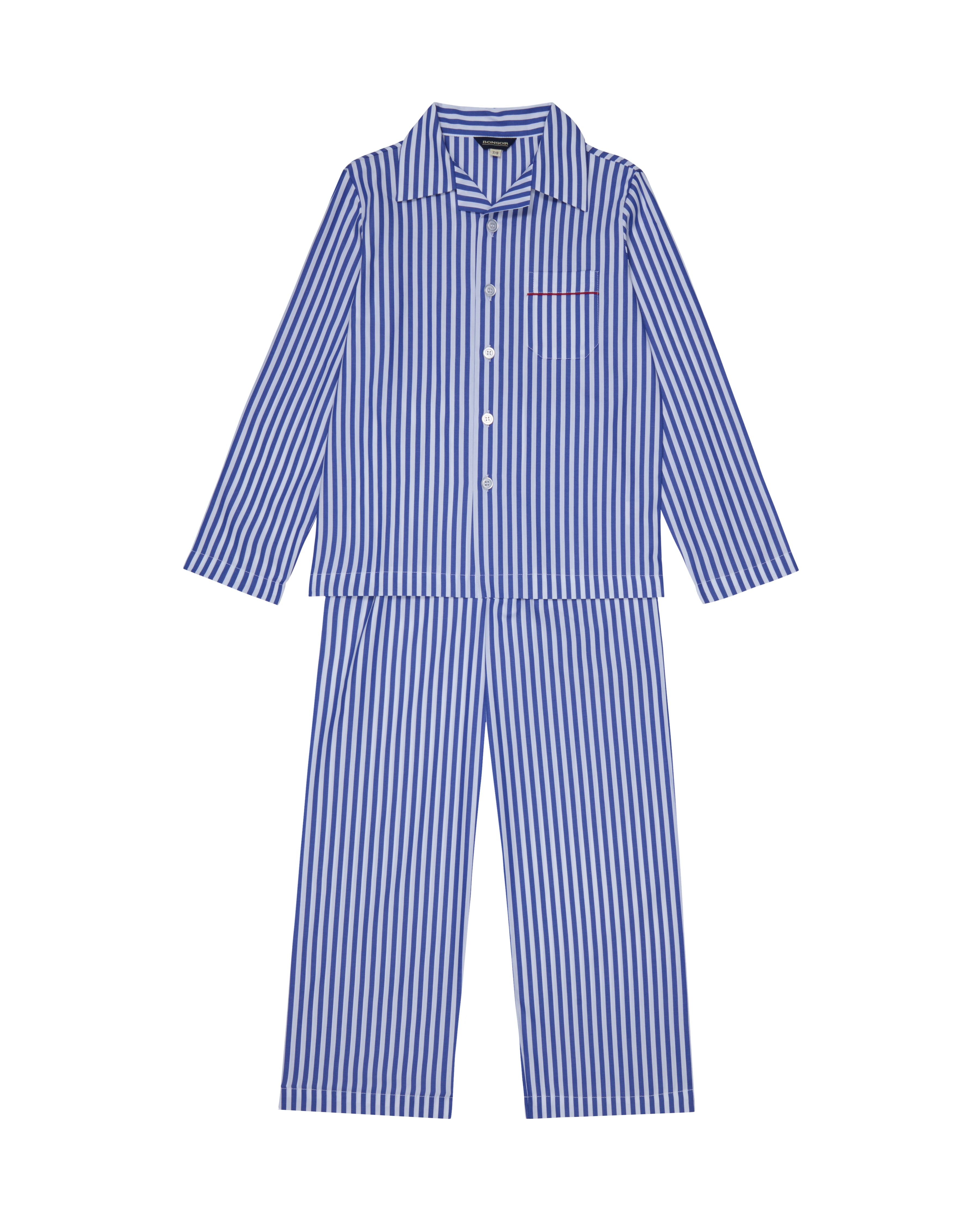 Made to exactly the same high standards as our men and women's pyjamas, and using the same quality fabrics, these beautiful St. Moritz stripe pyjamas are an adorable addition to any children's wardrobe. Whether for sleeping or lounging around the house, this high quality cotton set are bound to look smart whilst keeping children comfortable and warm throughout the cooler months.