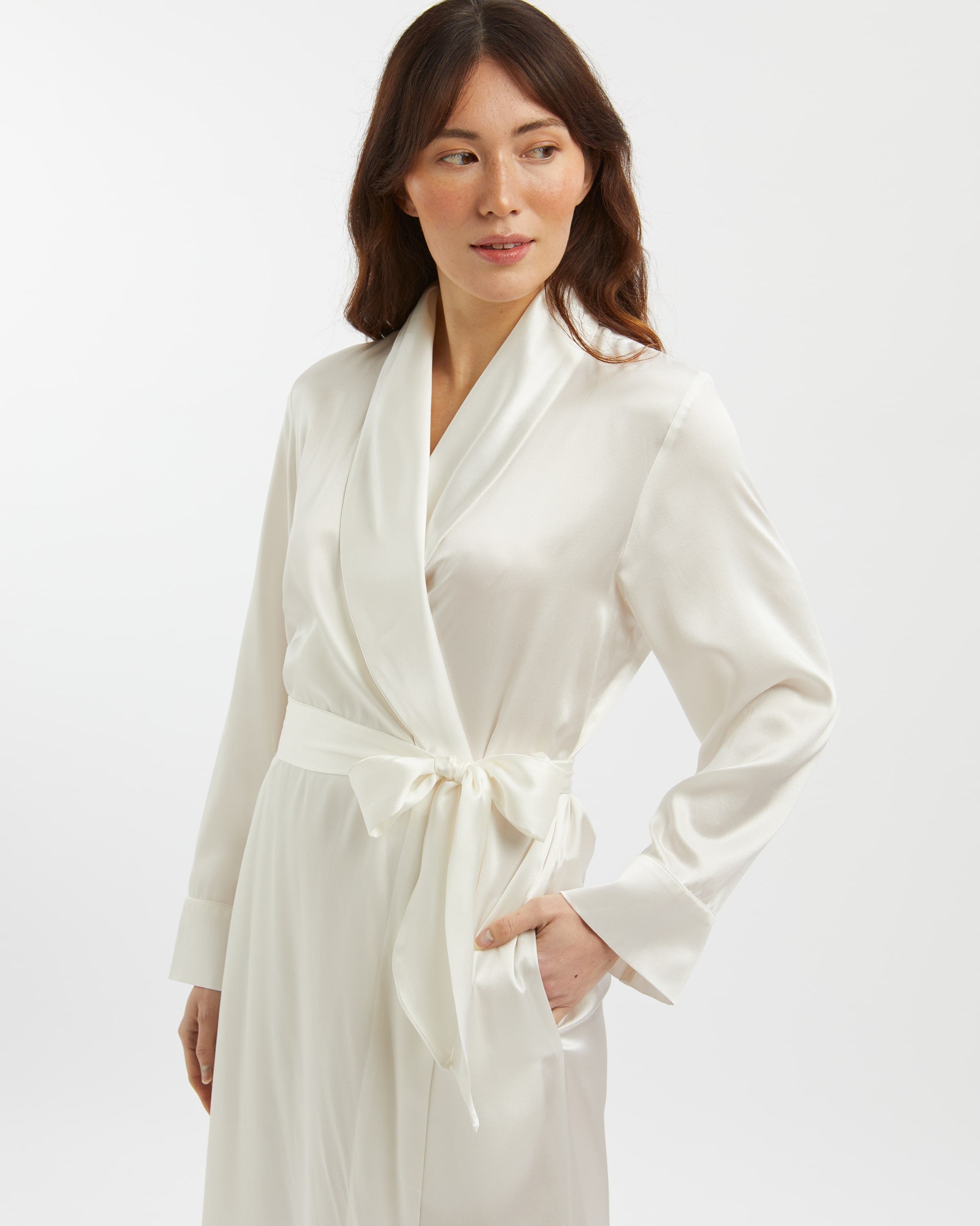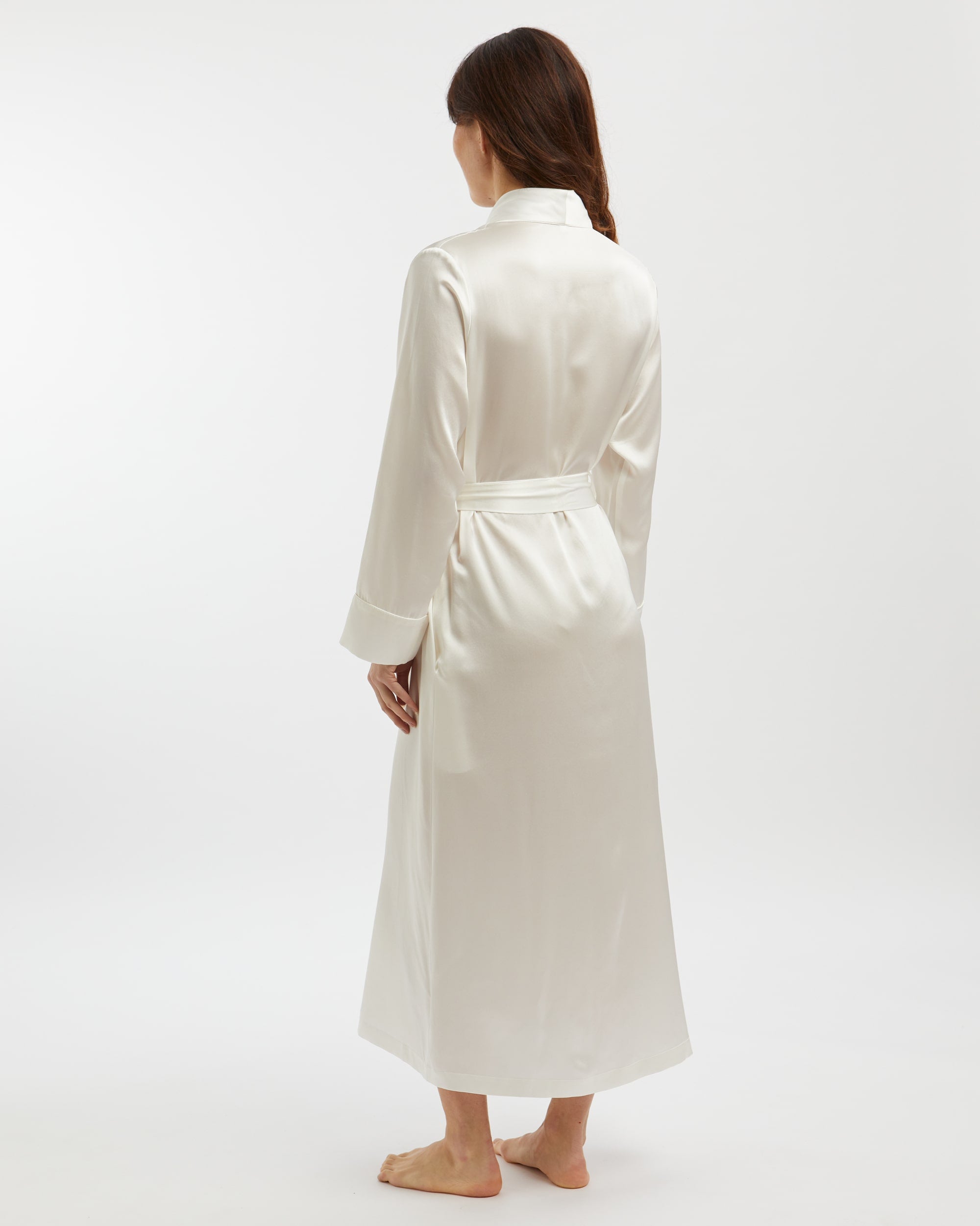 Our sumptuous women's silk gown in ivory, is as comfortable as it is feminine. Made from 100% pure silk satin in a luxurious 19 momme weight, this is luxury loungewear at its finest.