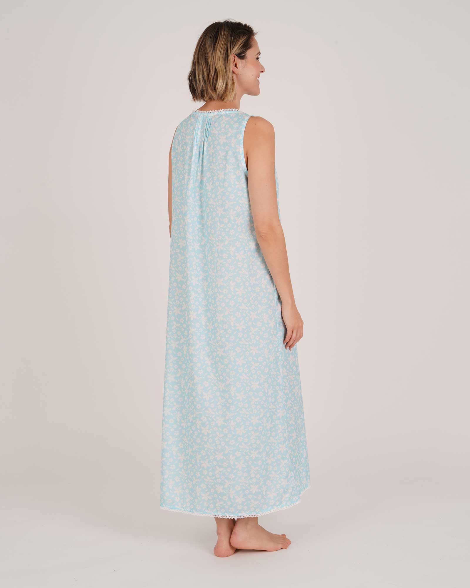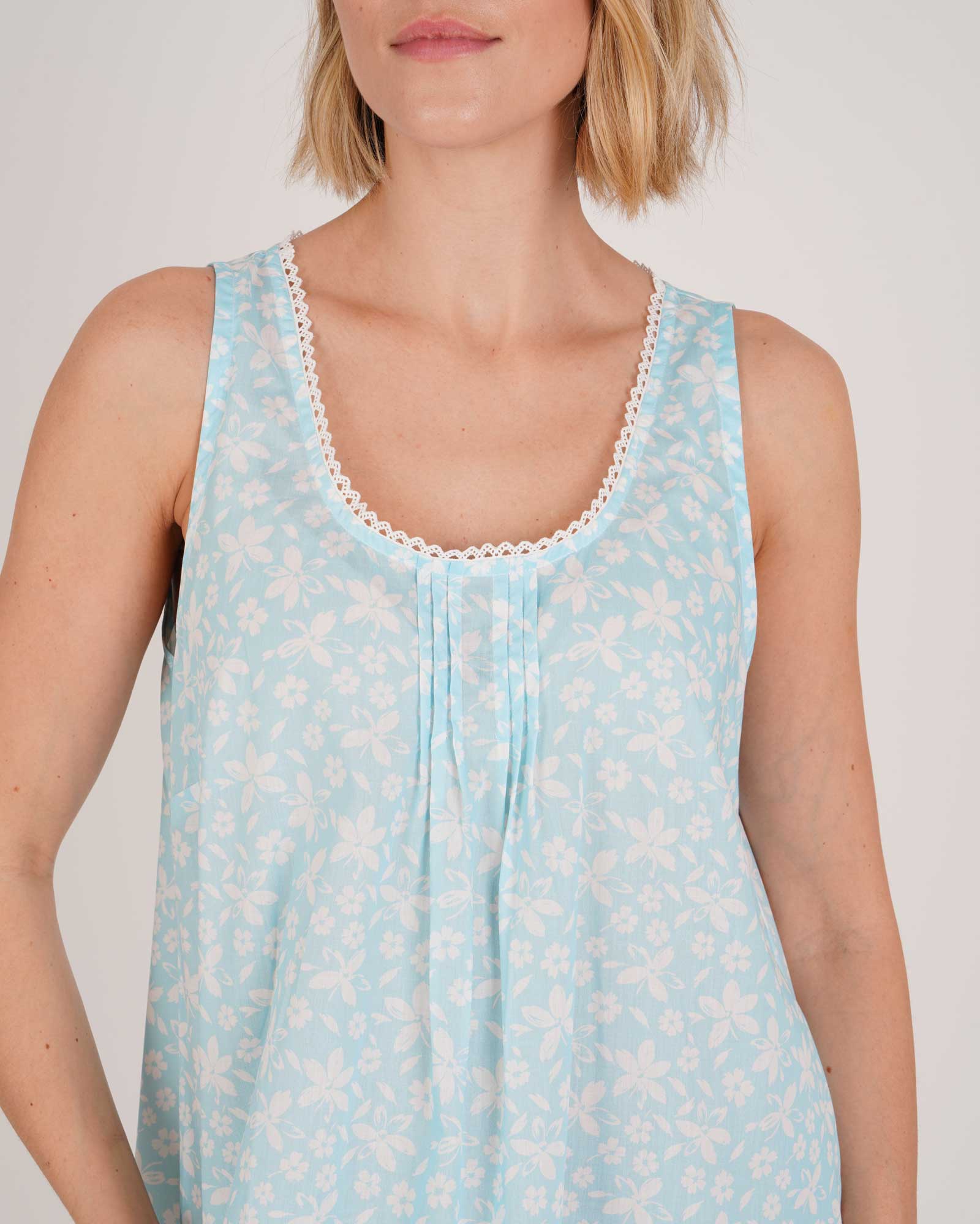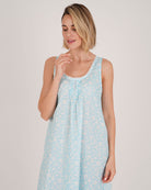 Women's Cora Long Cotton Nightdress with Lace Trim - Everley Floral Blue