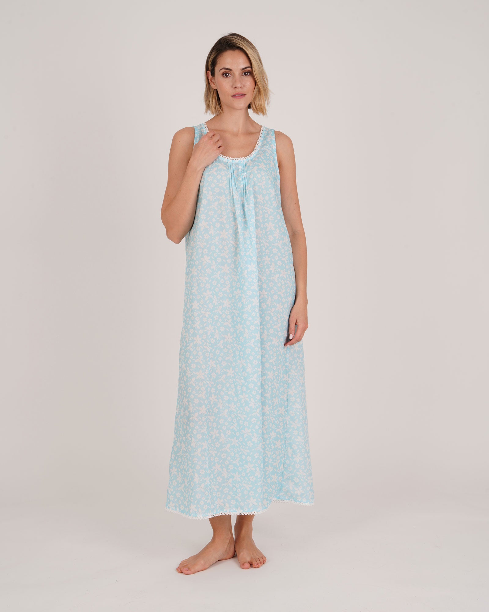 Indulge in luxurious summer evenings with our new Women's Cora Long Nightdress in our pretty Everley Floral Blue print - crafted from delicate cotton lawn and adorned with elegant Austrian lace trim on the hem. Stay cool and comfortable as you drift off into a dreamy slumber.