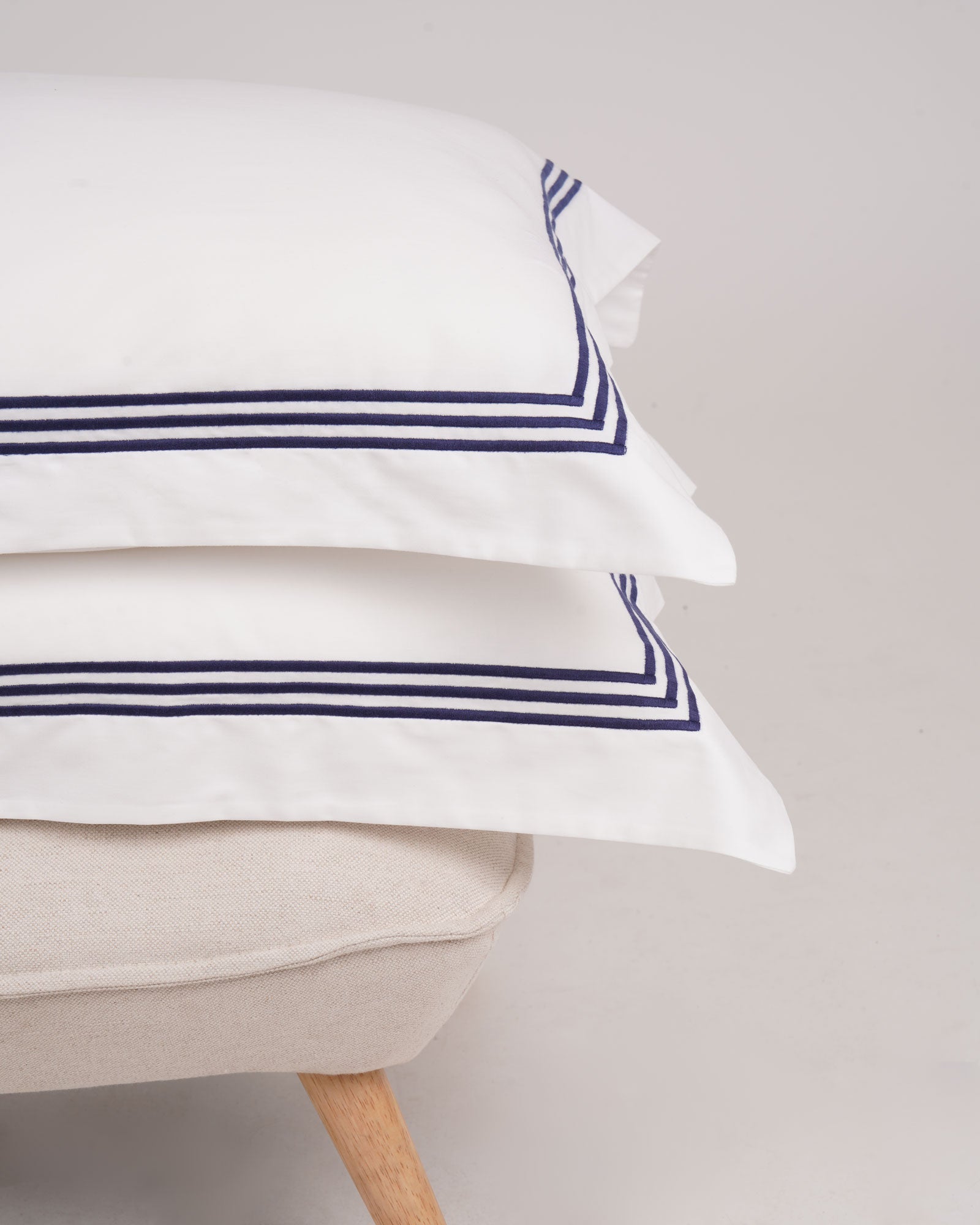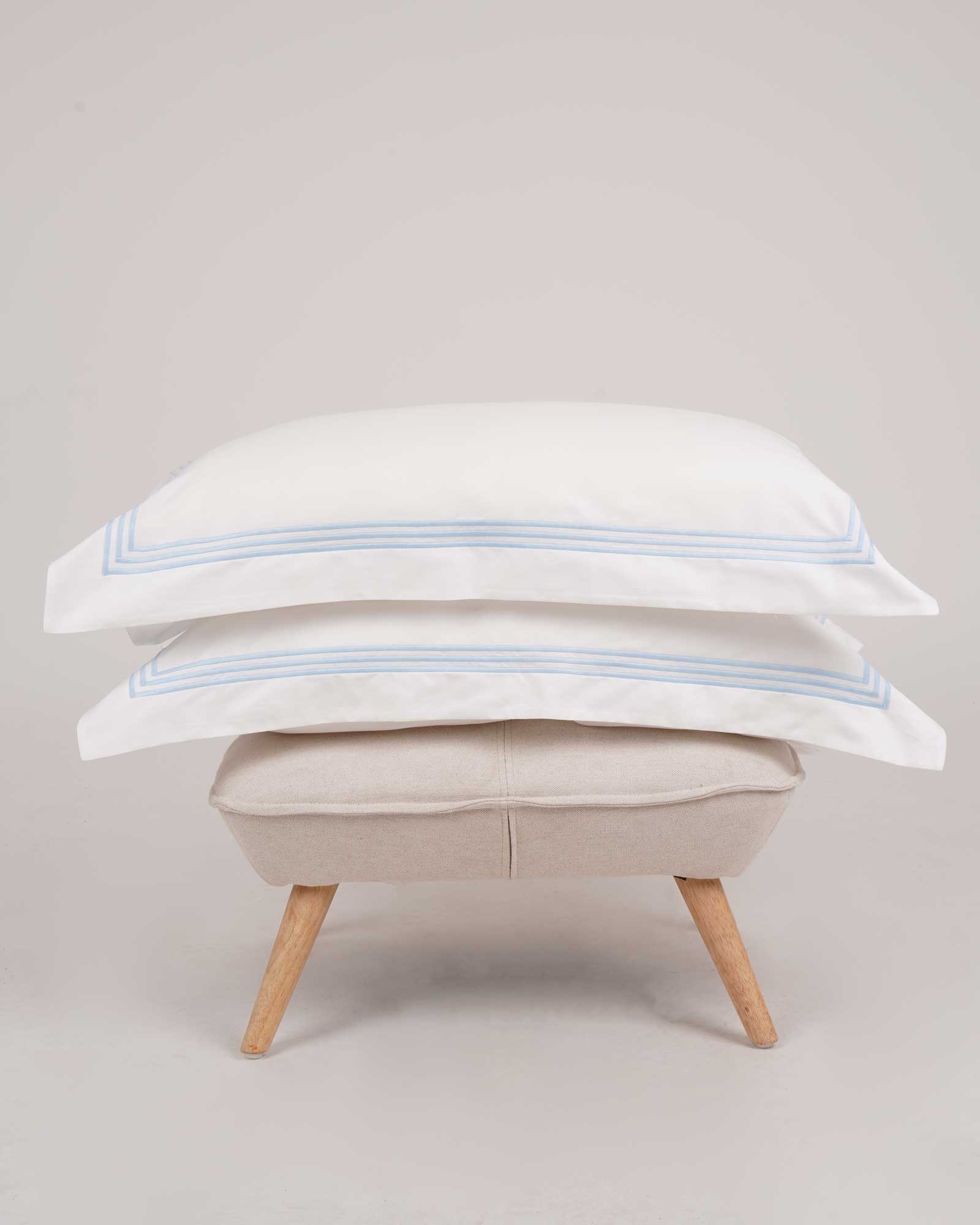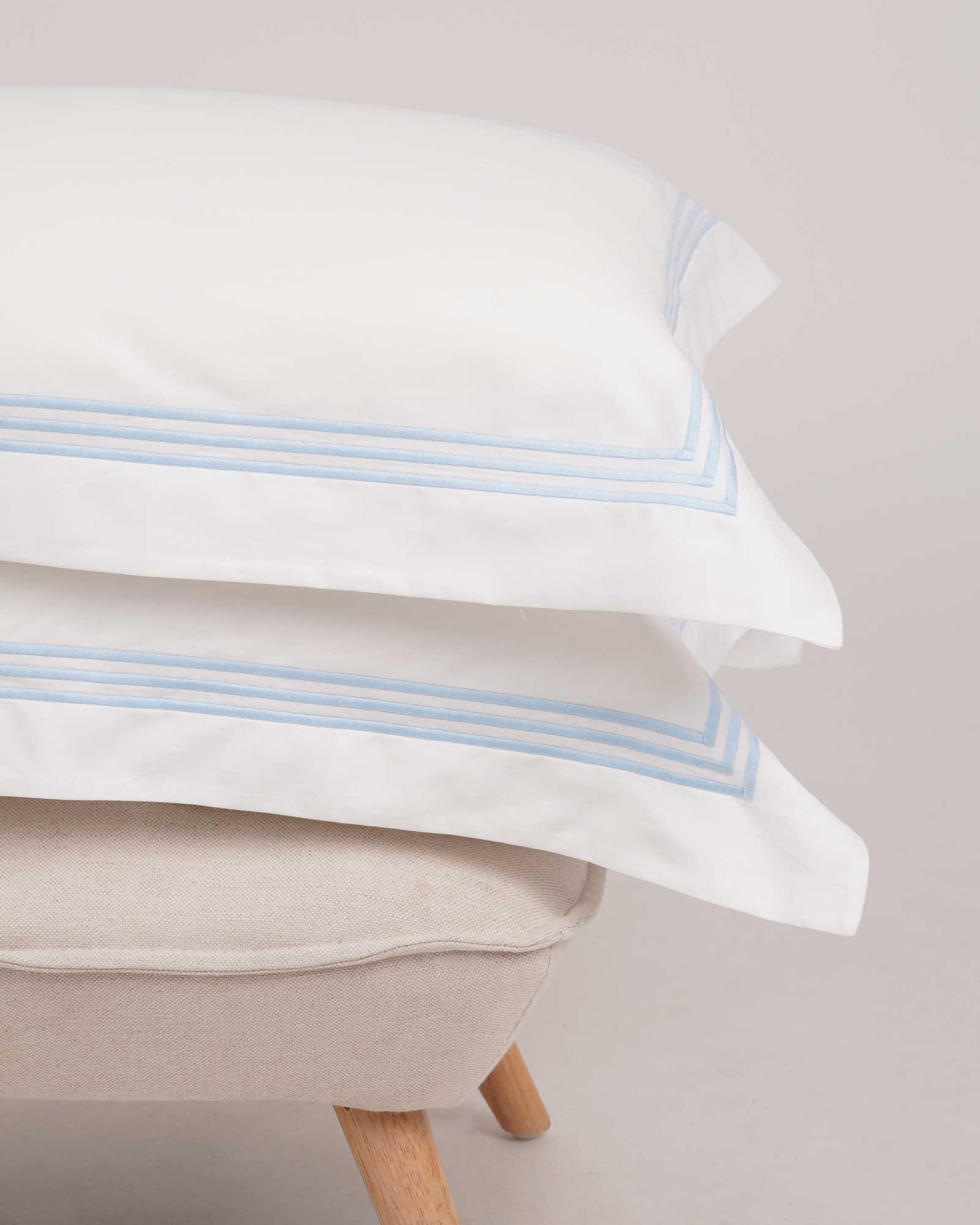 Mayfair Oxford Pillowcases - White with Light Blue Embroidery