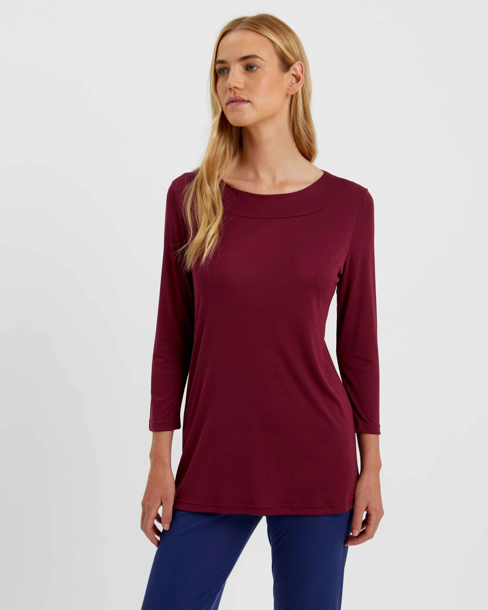Crafted from a breathable LYOCELL™ fabric, this jersey top is cut with a loose body-skimming fit. The softness of this beautiful fibre will have you relaxing in comfort throughout the seasons. Lyocell is a sustainable fabric sourced from eucalyptus trees.