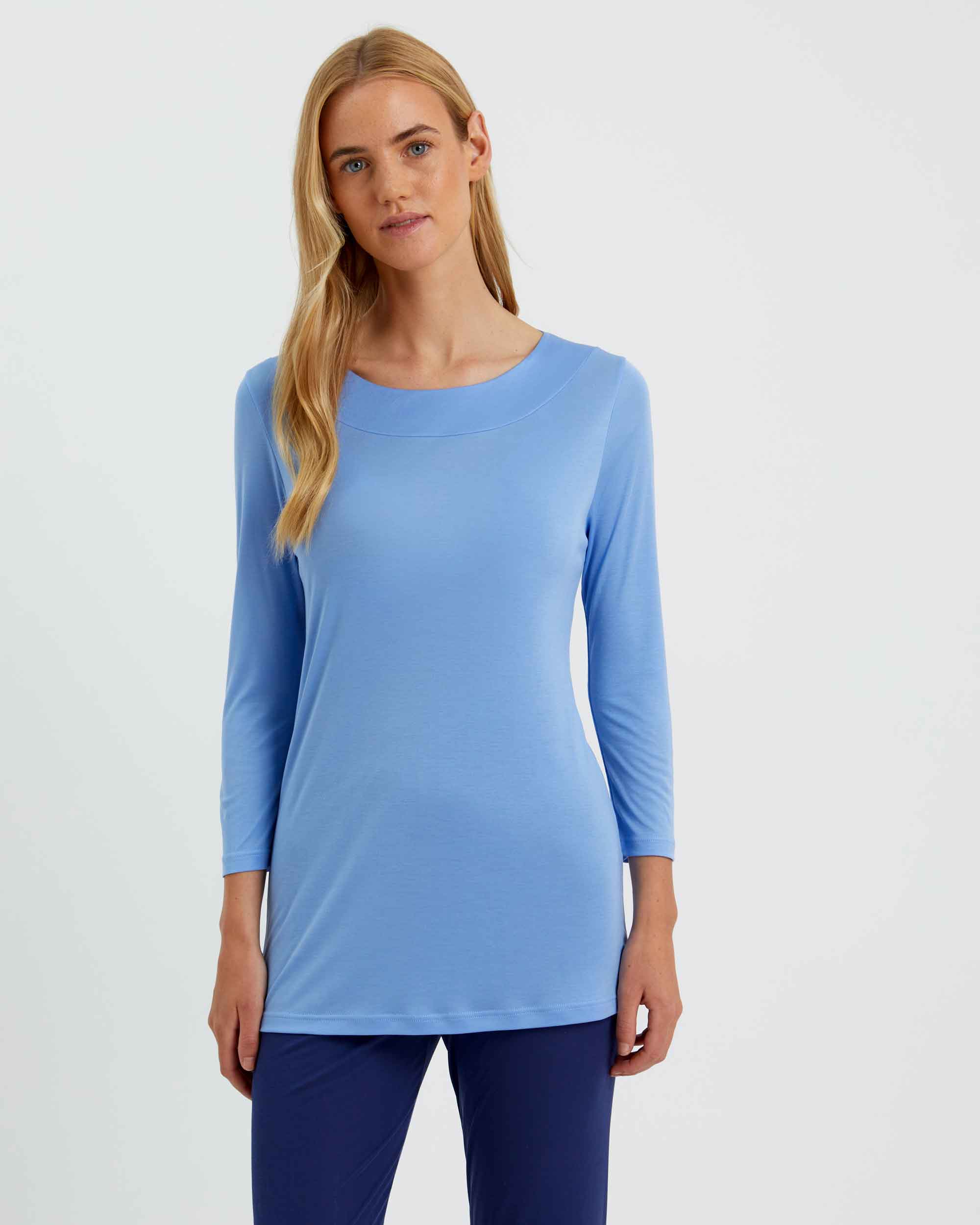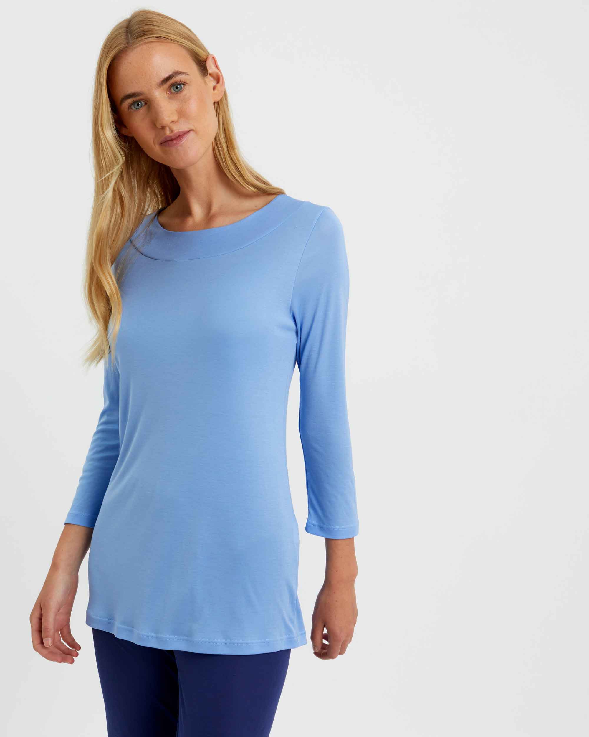 Women's Lyocell Scoop Neck Top - Sky