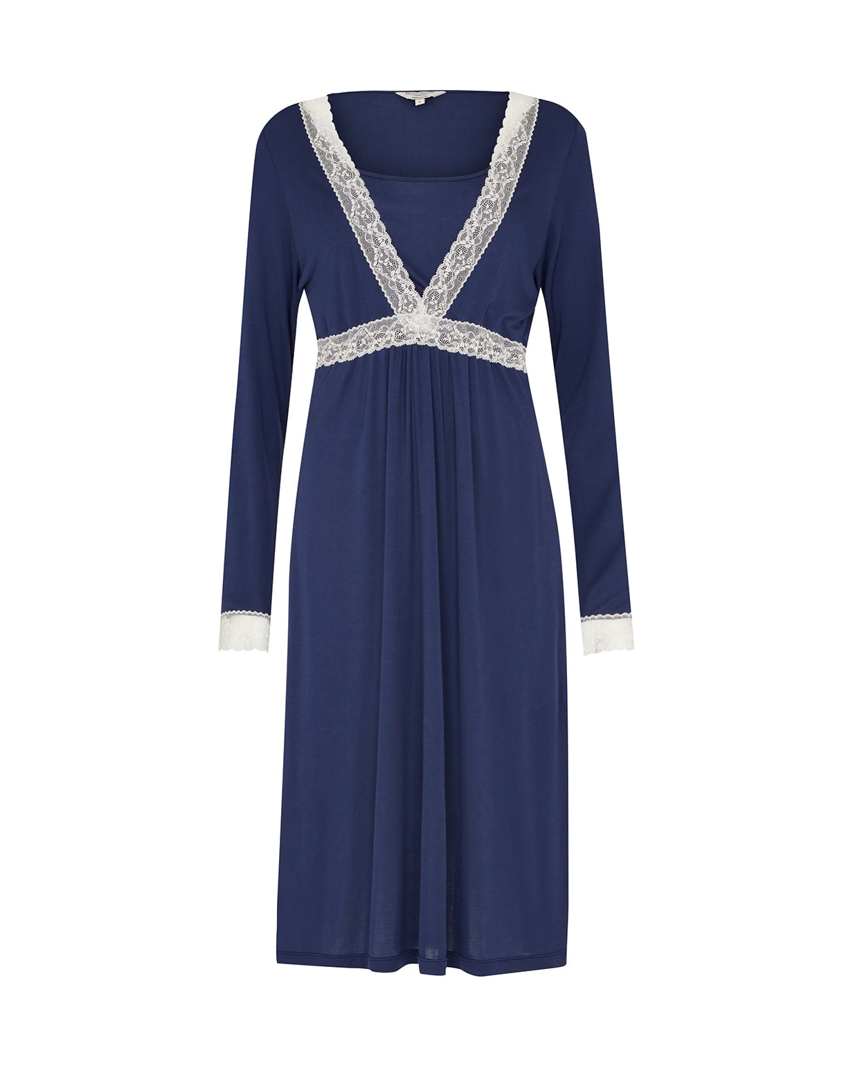 Maternity & Nursing Long Sleeve Lyocell Nightdress - Navy