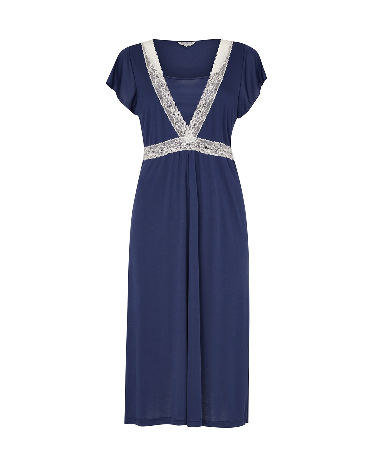 Maternity & Nursing Short Sleeve Lyocell Nightdress - Navy
