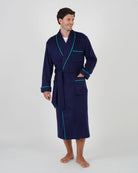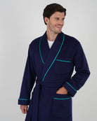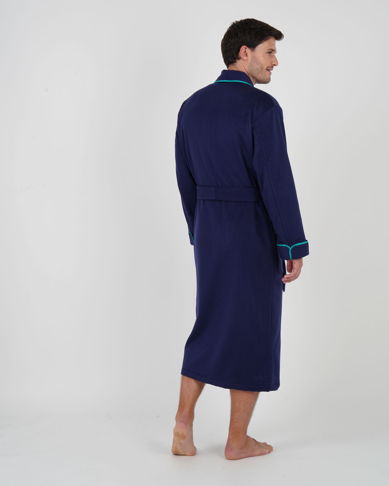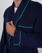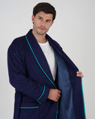 Men's Silk-Lined Cashmere Robe - Navy with Colmworth Geo Print Silk Lining