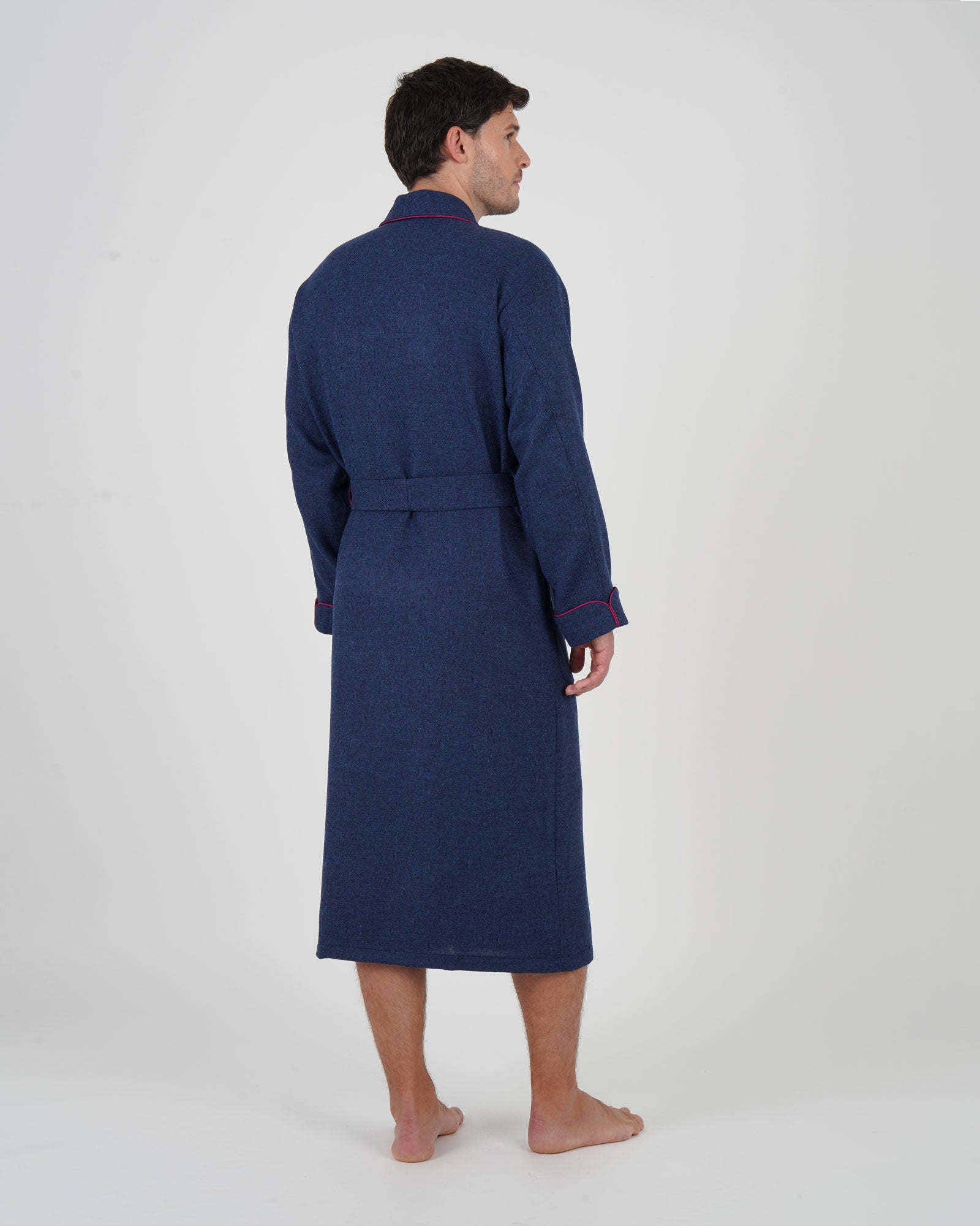 Men's Silk-Lined Wool Robe - Concorde Blue