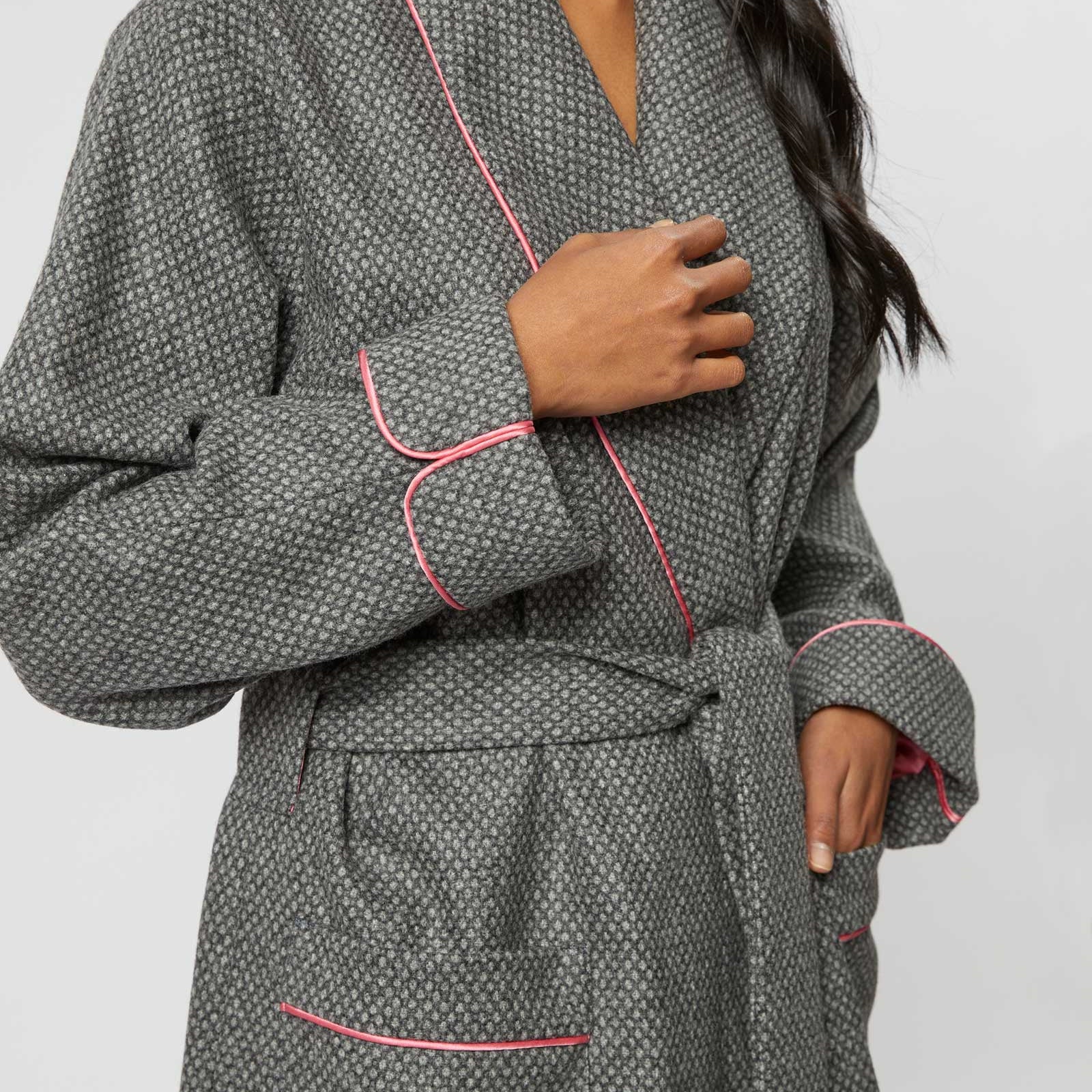 It's the little details that make our wool robes so special. The signature cuff is finished by hand and even the belt loops are lined in silk.