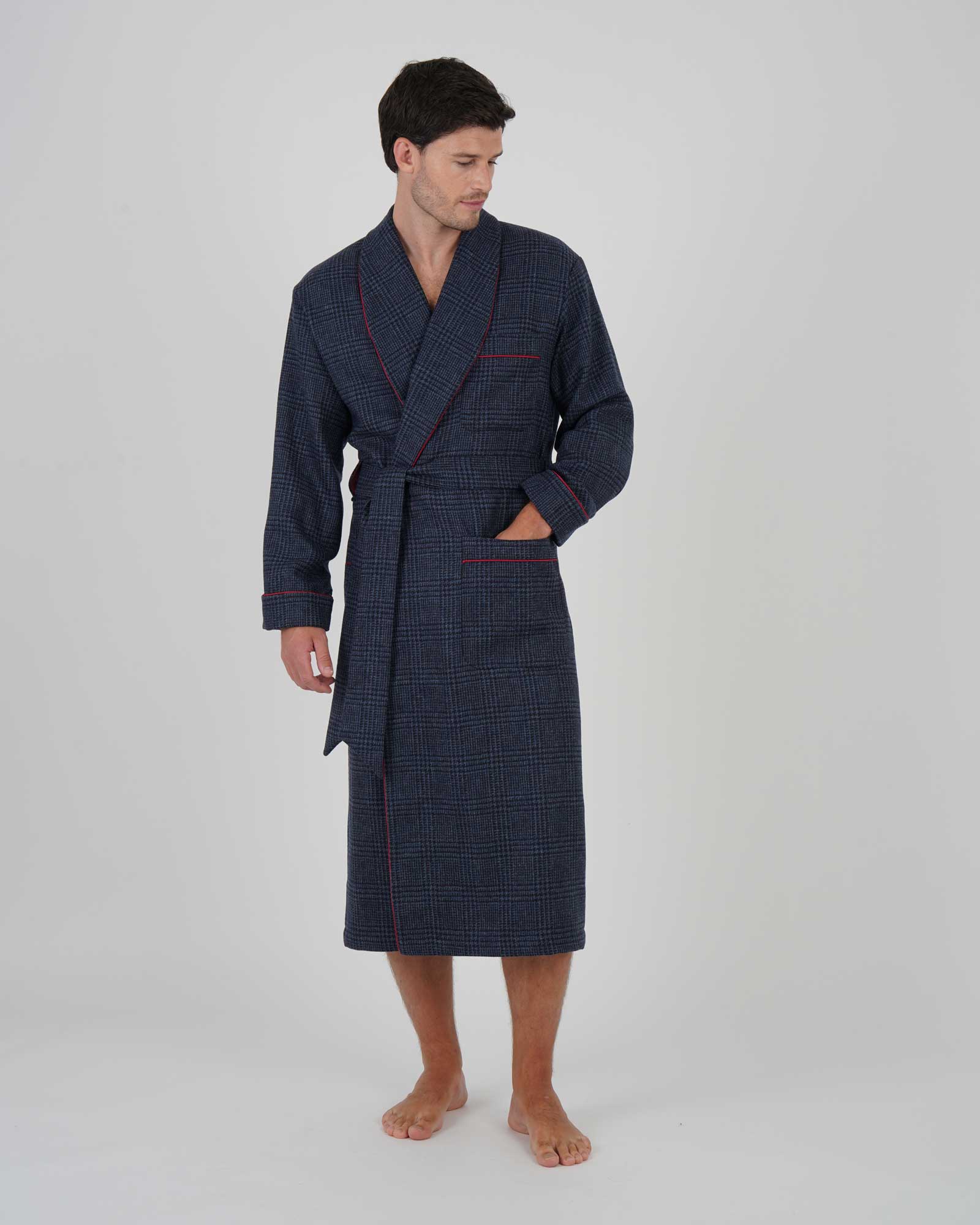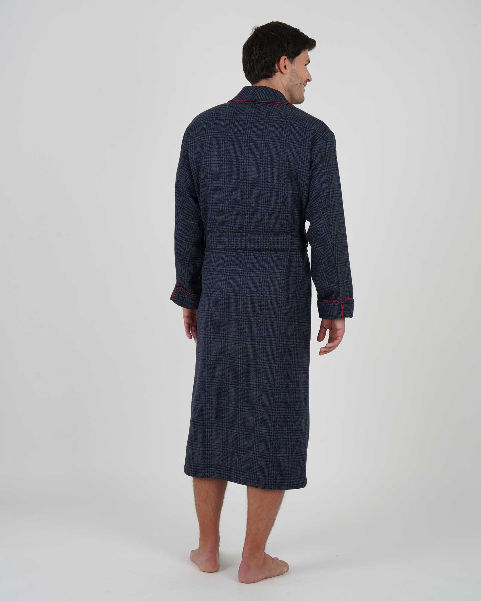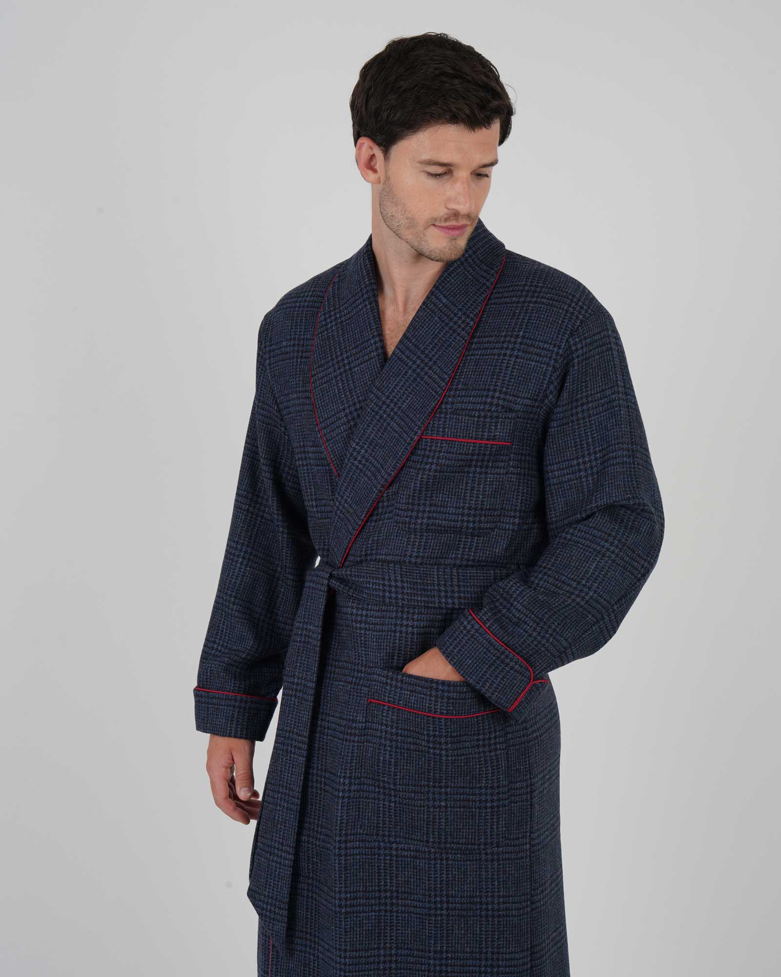 Men's Silk-Lined Wool Robe - Youlton Houndstooth