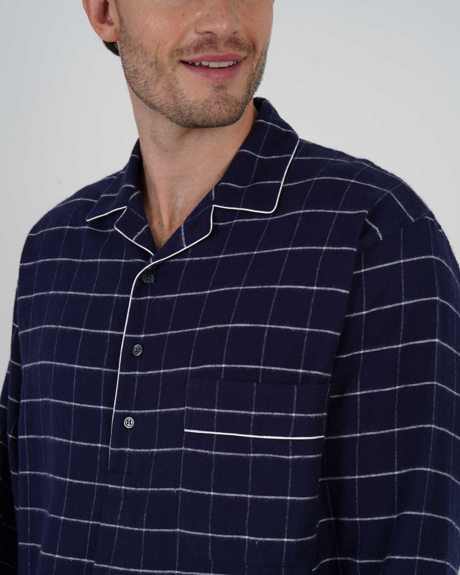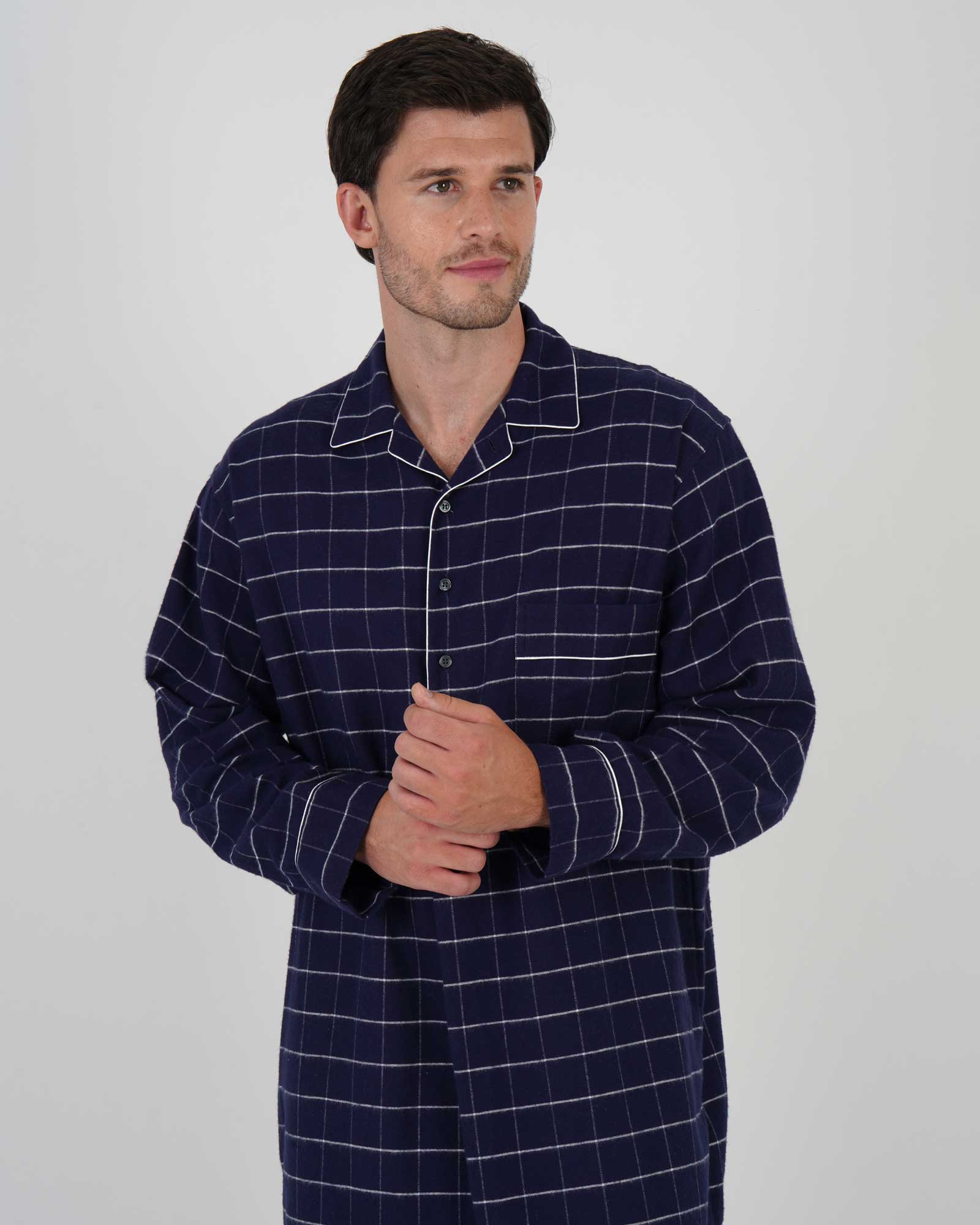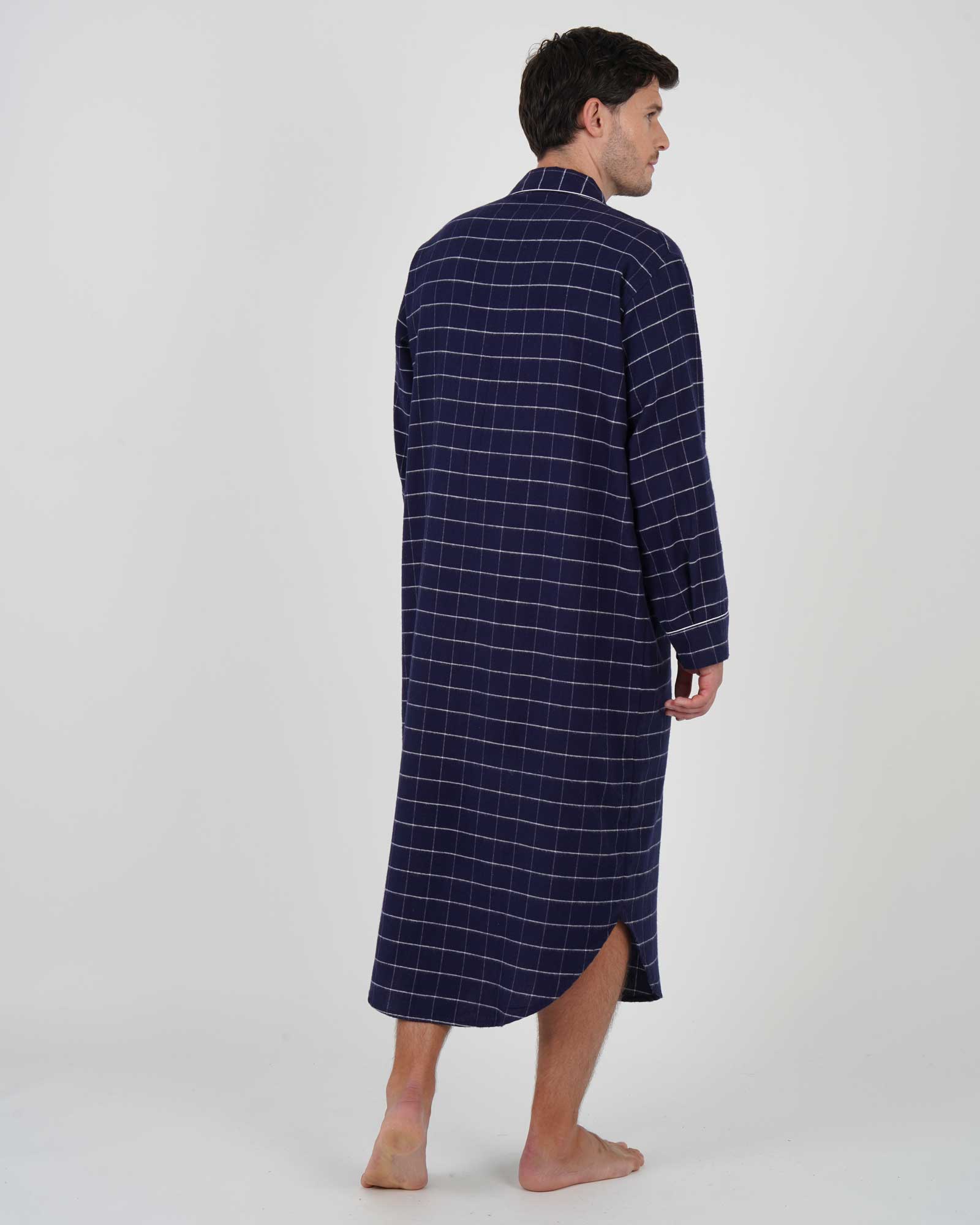 Crafted from a 100% brushed cotton, our classic men's nightshirt in Boxford Check is the perfect piece of loungewear for the colder winter months.