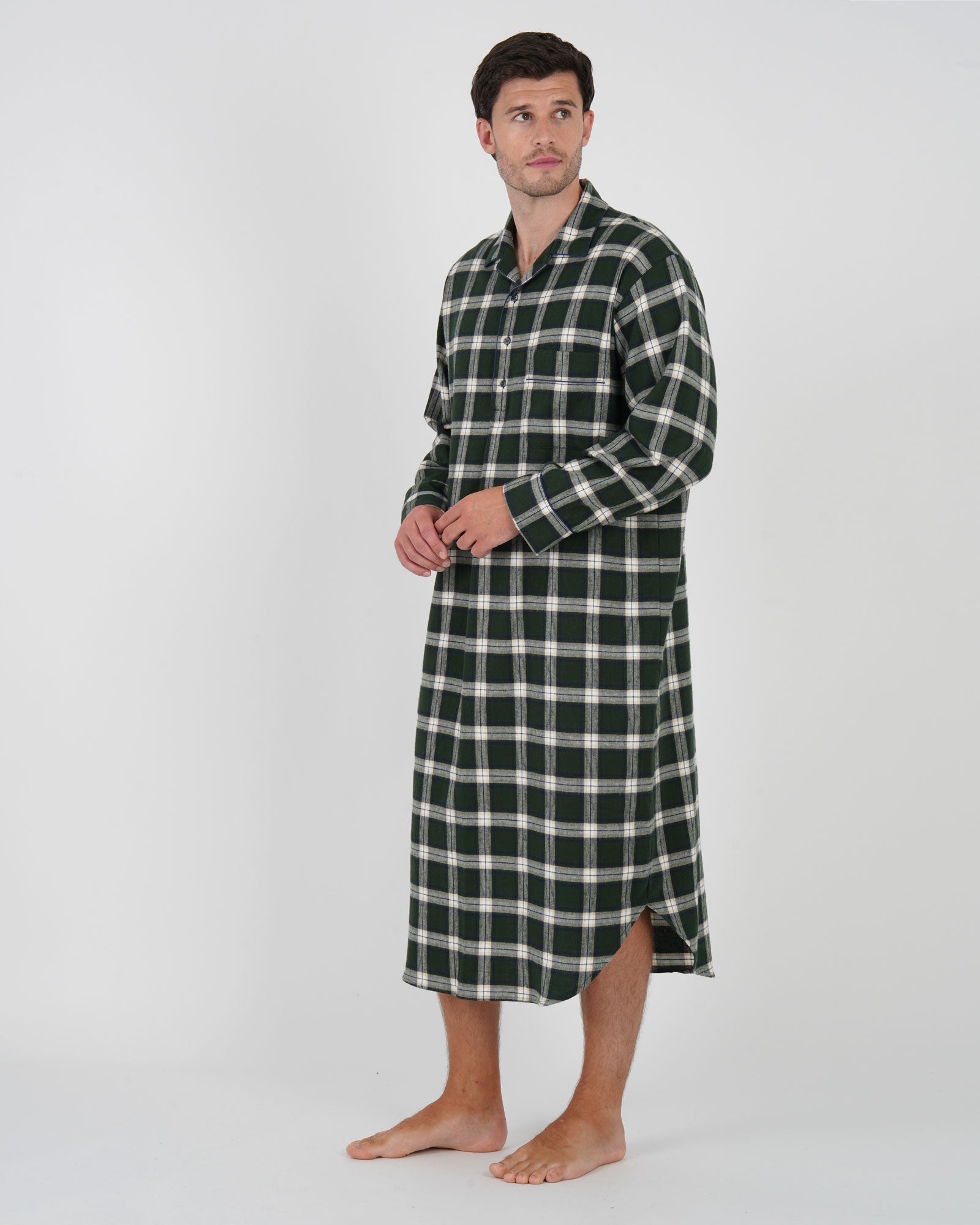 Crafted from a 100% brushed cotton, our classic men's nightshirt in Holtwood Check is the perfect piece of loungewear for the colder winter months.