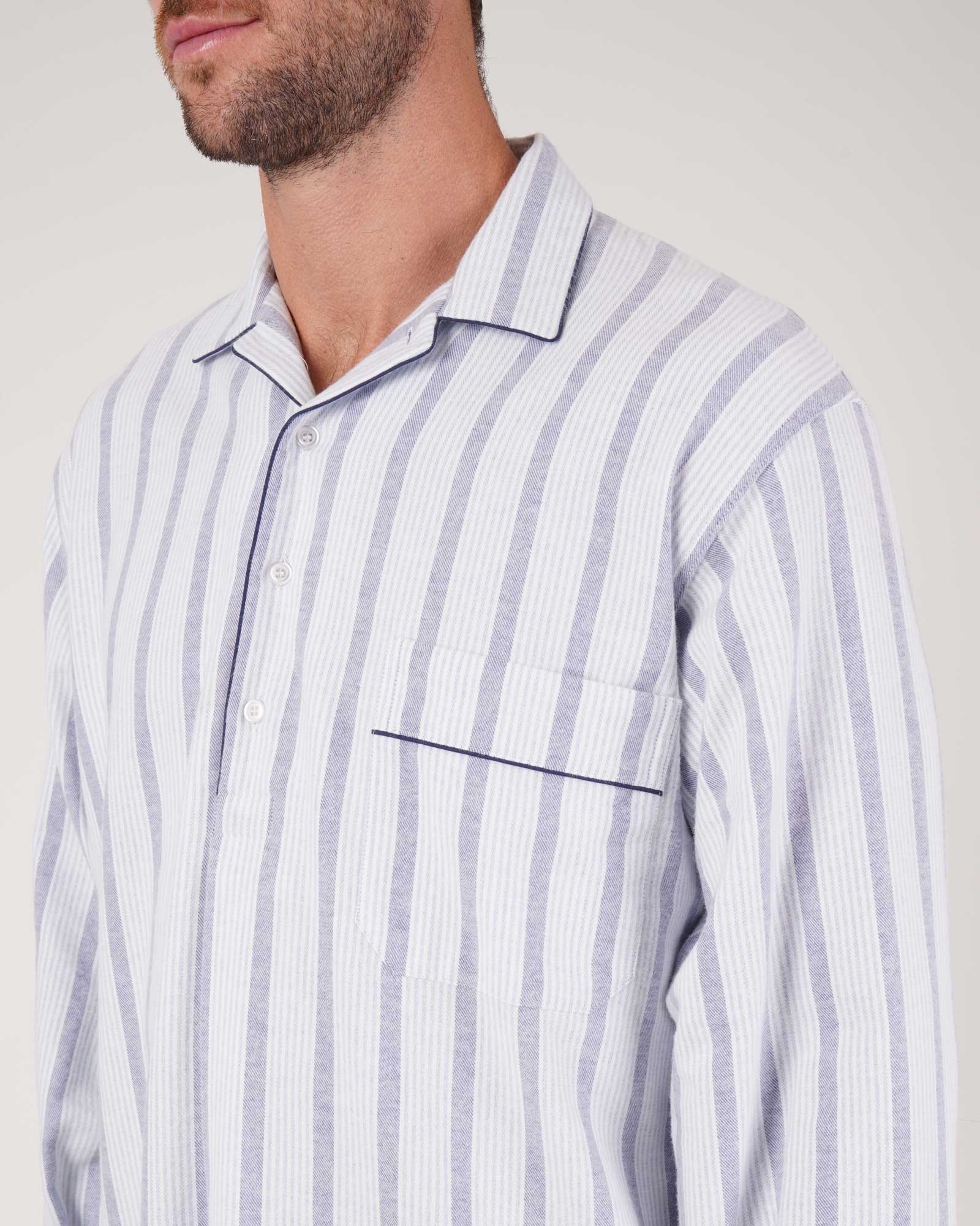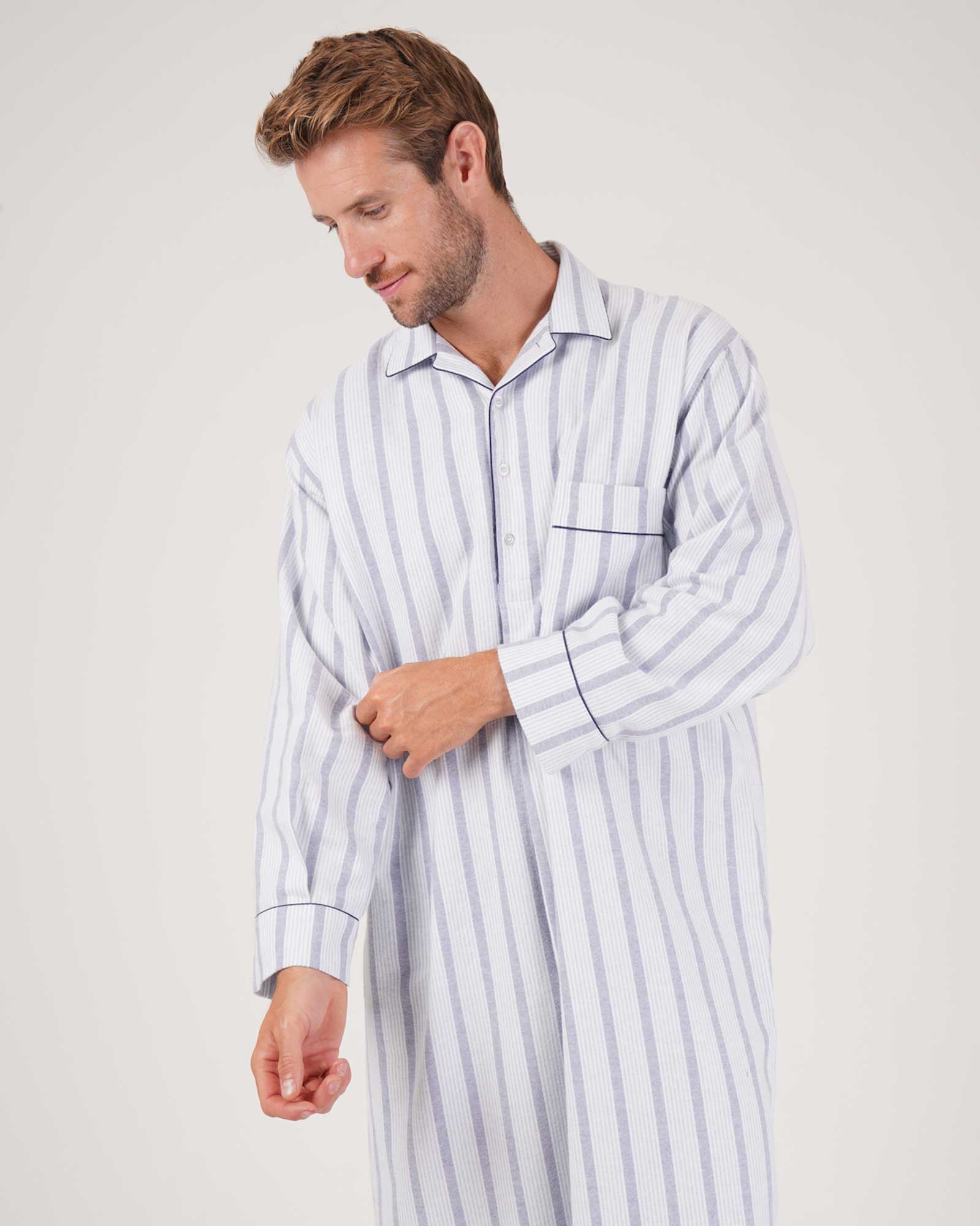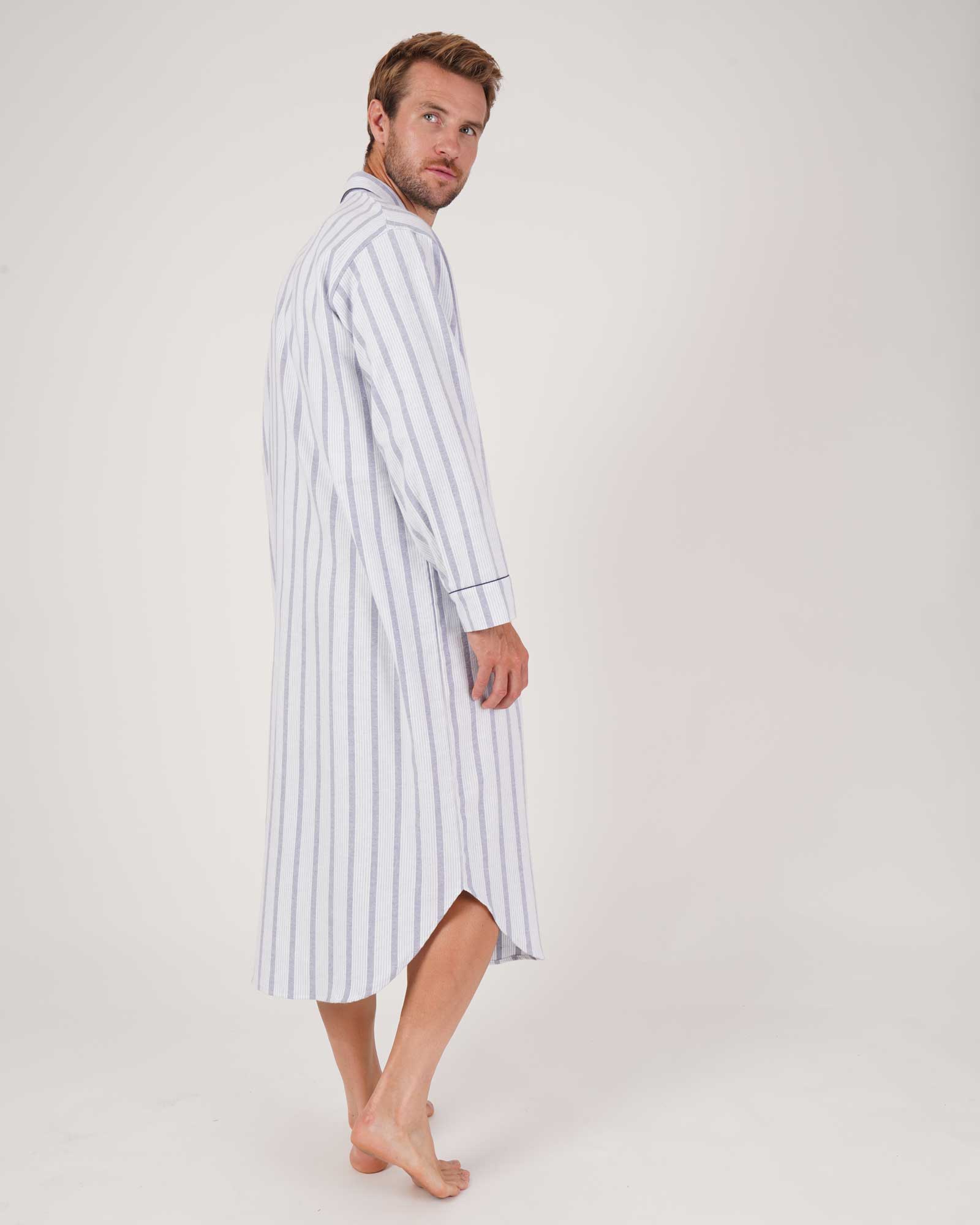 Crafted from a 100% brushed cotton, our classic men's nightshirt in Ripple Stripe is the perfect piece of loungewear for the colder winter months.