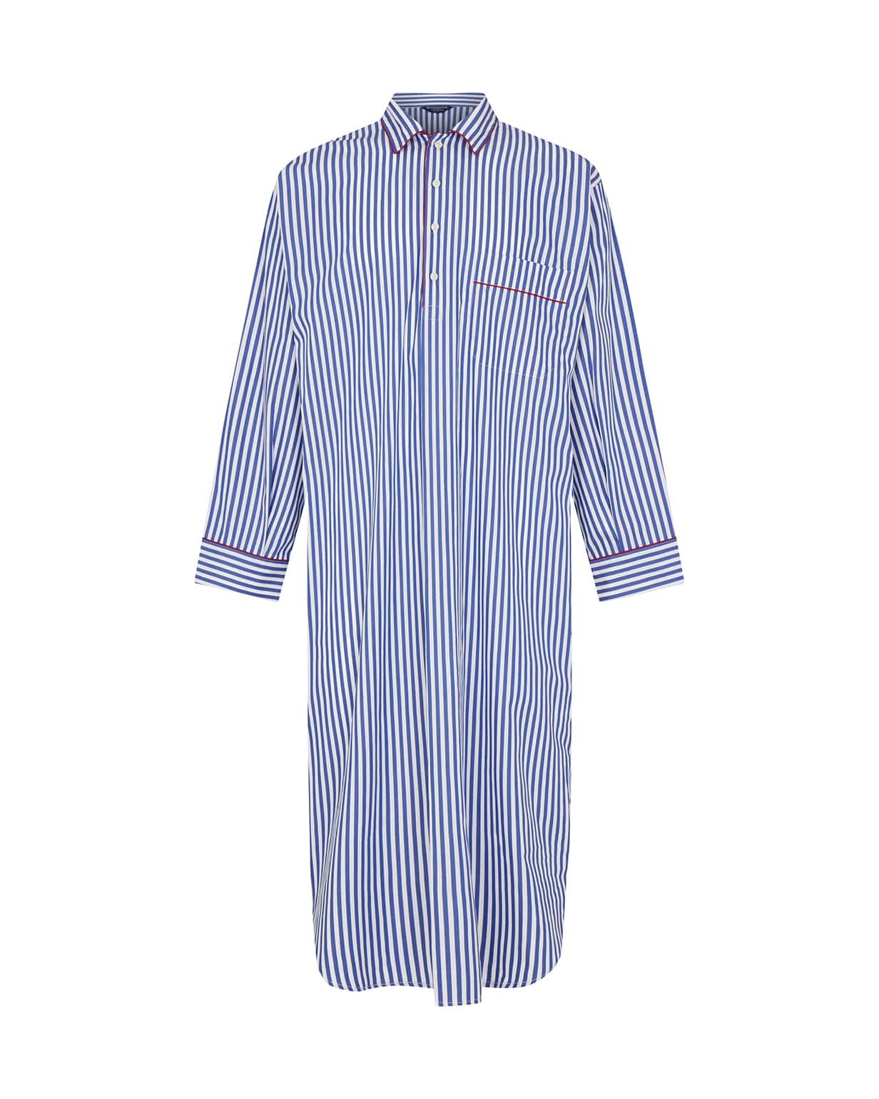 Cut for a relaxed fit, our signature nightshirts are crafted from 100% premium cotton for the ultimate in style and comfort. Featuring a classic blue check design, it is styled with a rounded shirt-tail hem, button placket, breast pocket and front pleat.