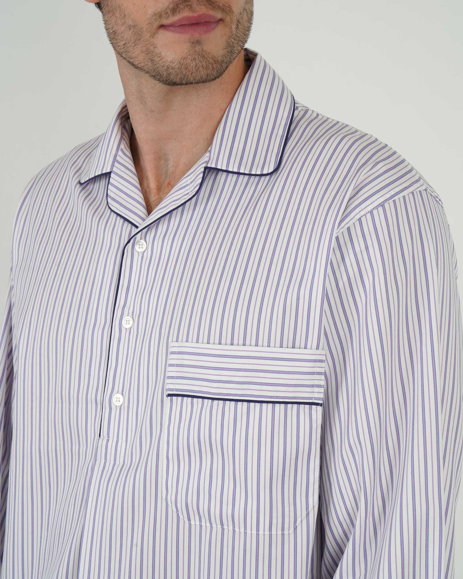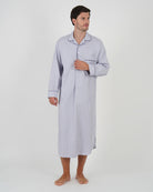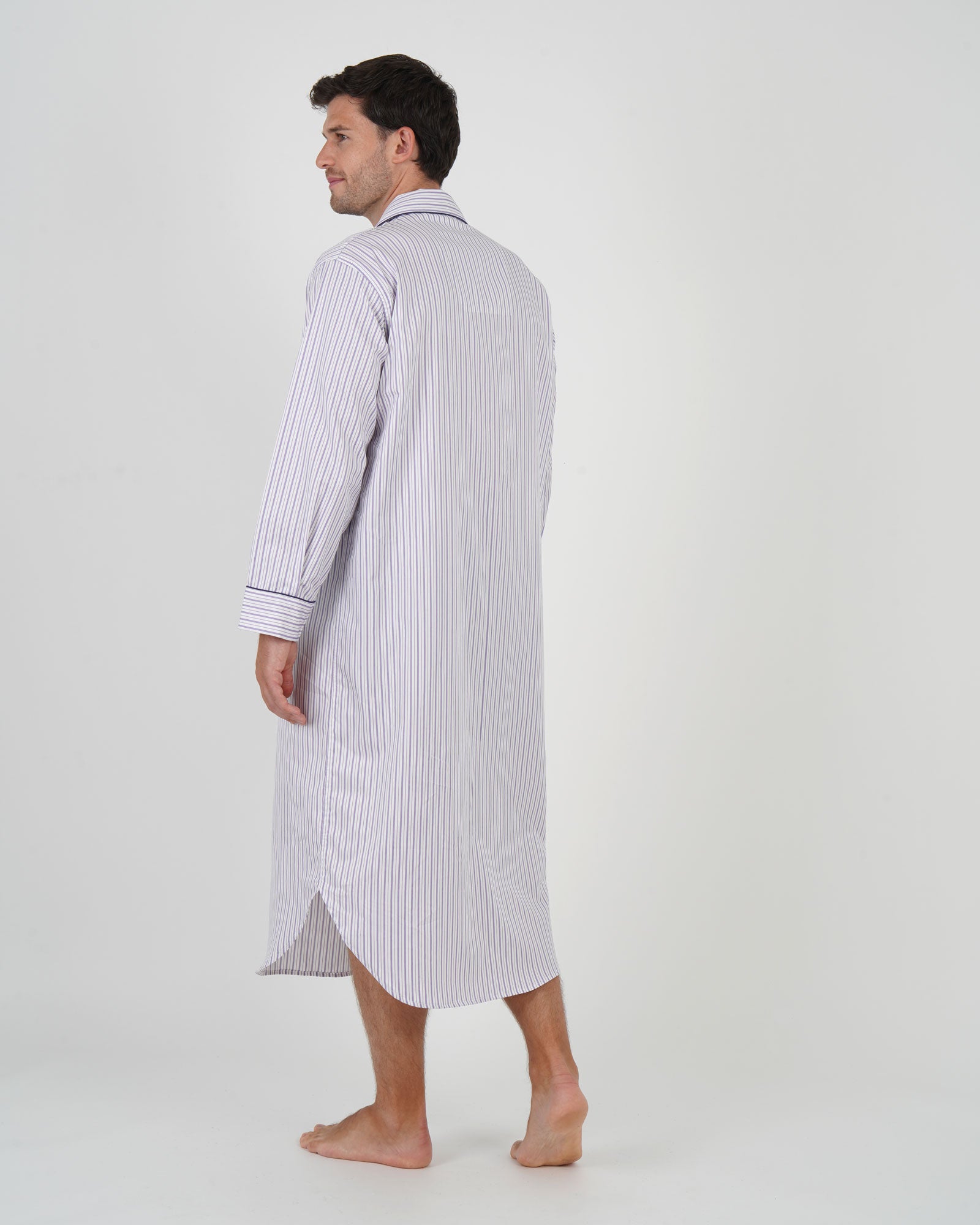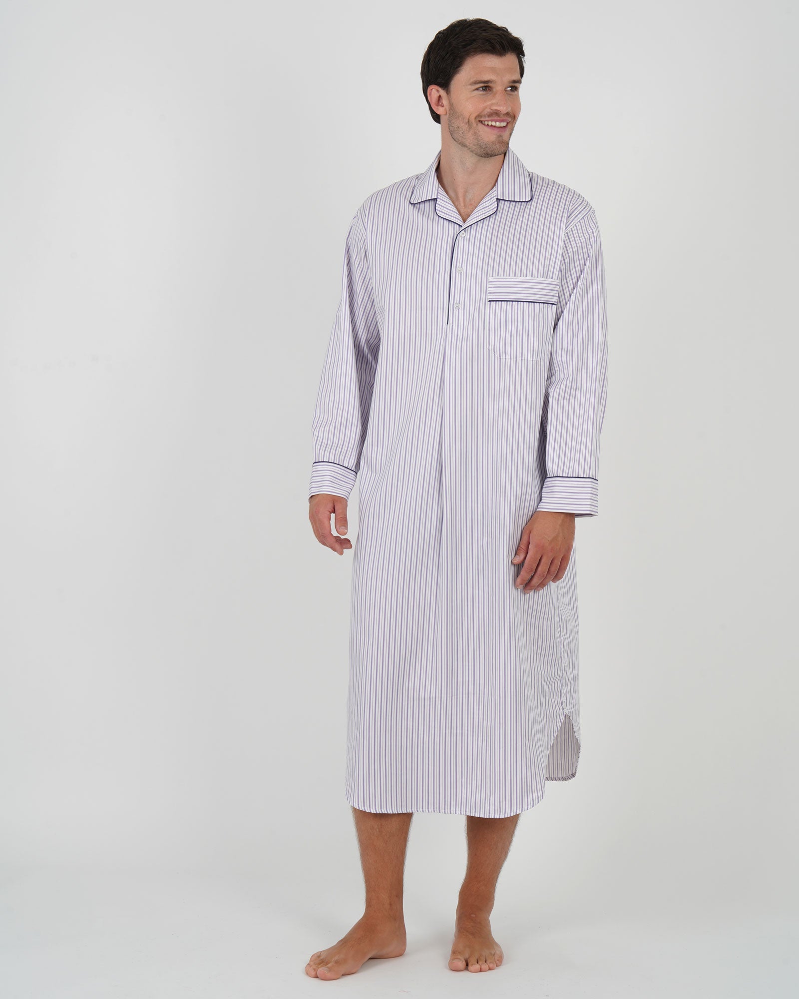 Our traditional men's cotton nightshirt is generously cut, with a shirt-tail hem and a four-button placket opening.