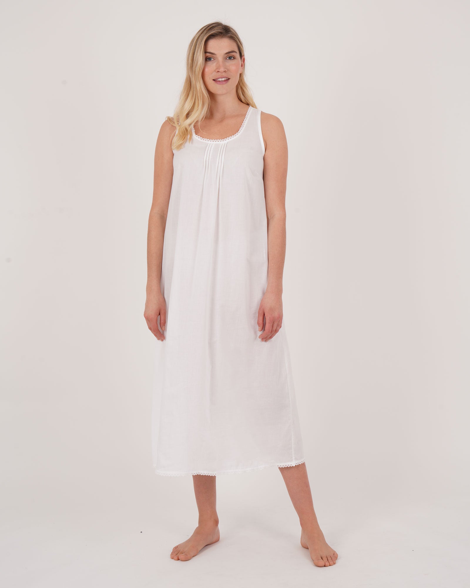 Indulge in luxurious summer evenings with our brand new Women's Cora Long Nightdress - crafted from delicate cotton lawn and adorned with elegant Austrian lace trim on the hem. Stay cool and comfortable as you drift off into a dreamy slumber.