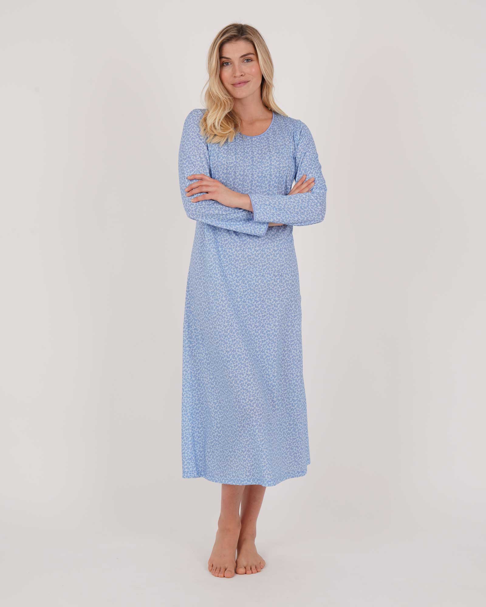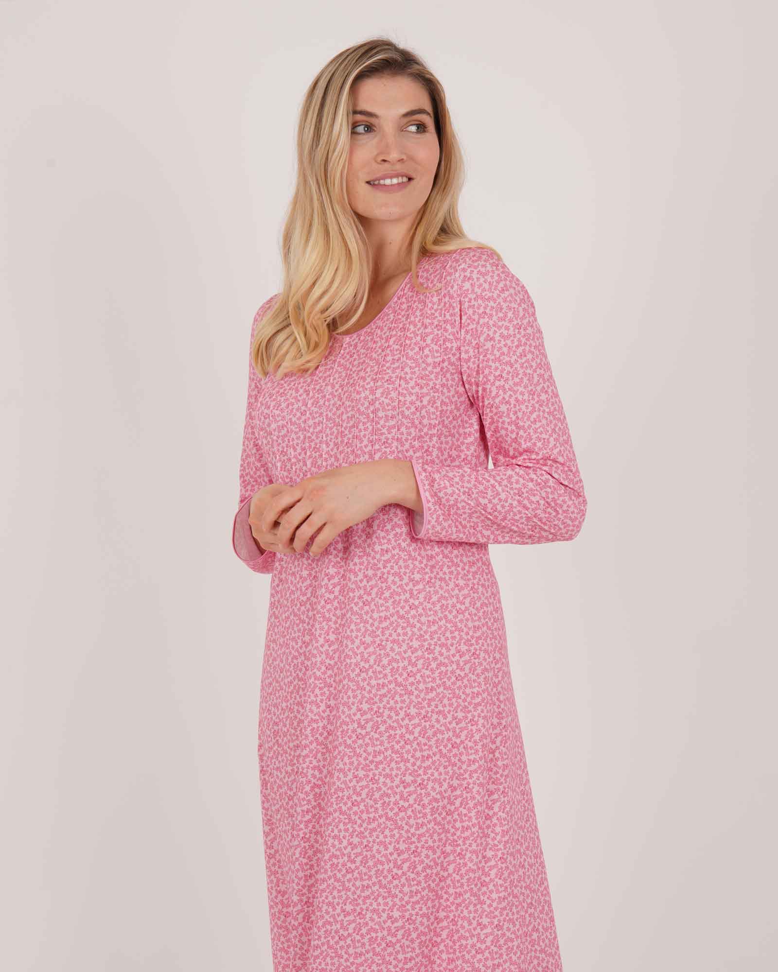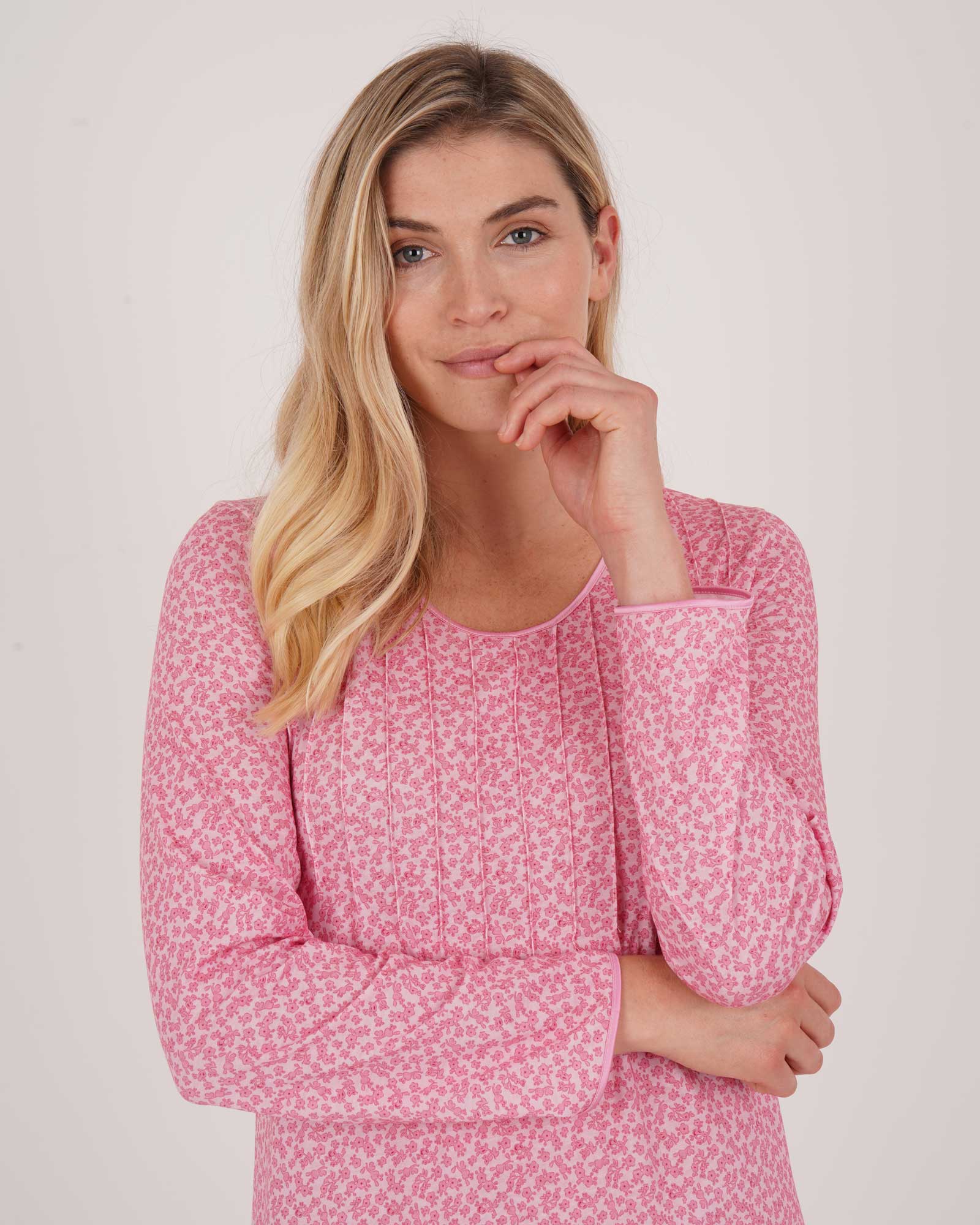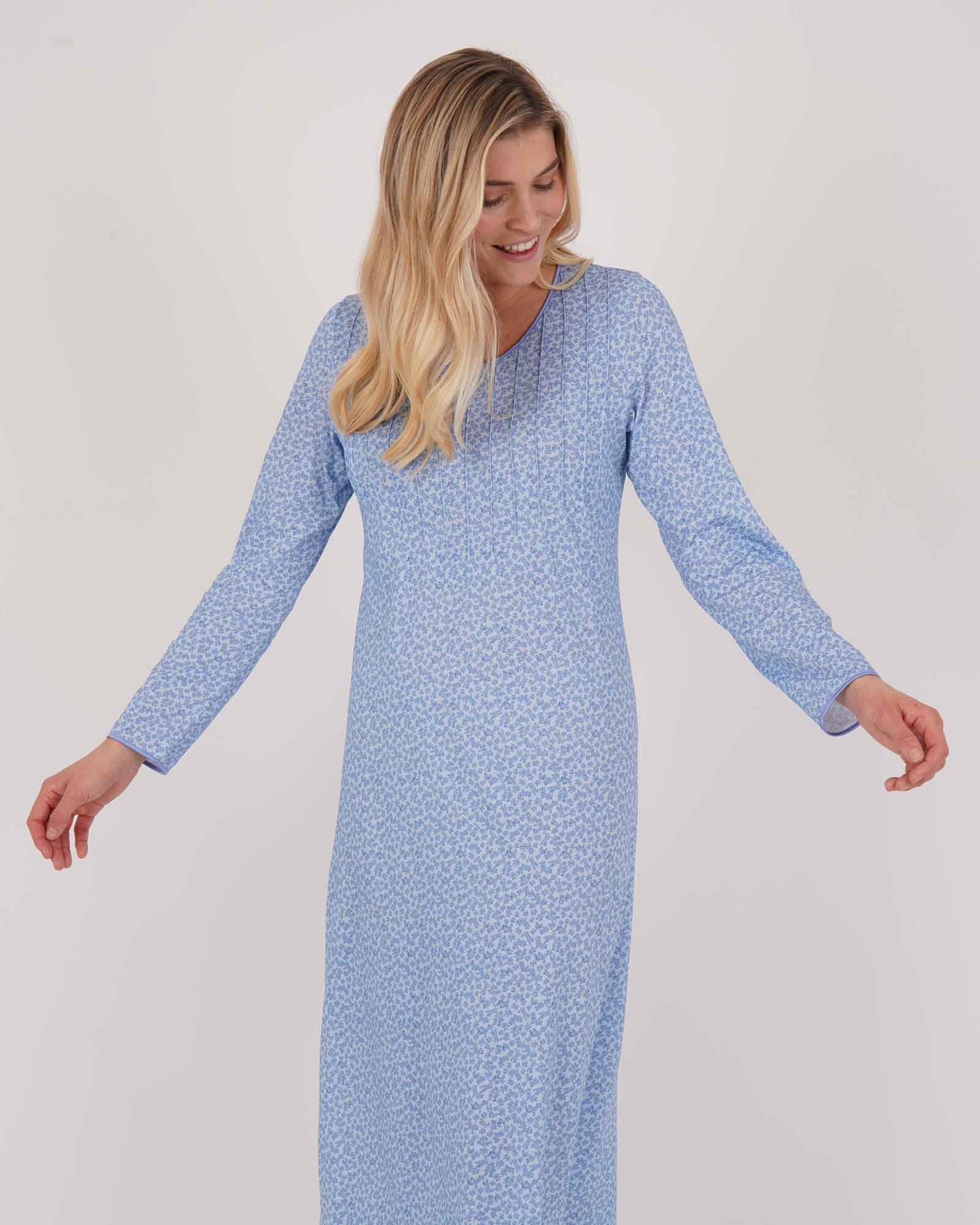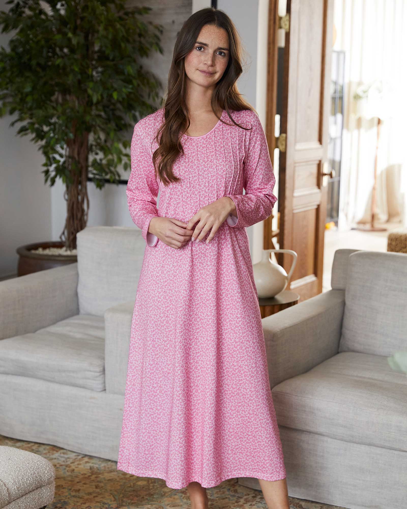 Women's French Pleat Long Sleeved Jersey Nightdress - Belby Floral