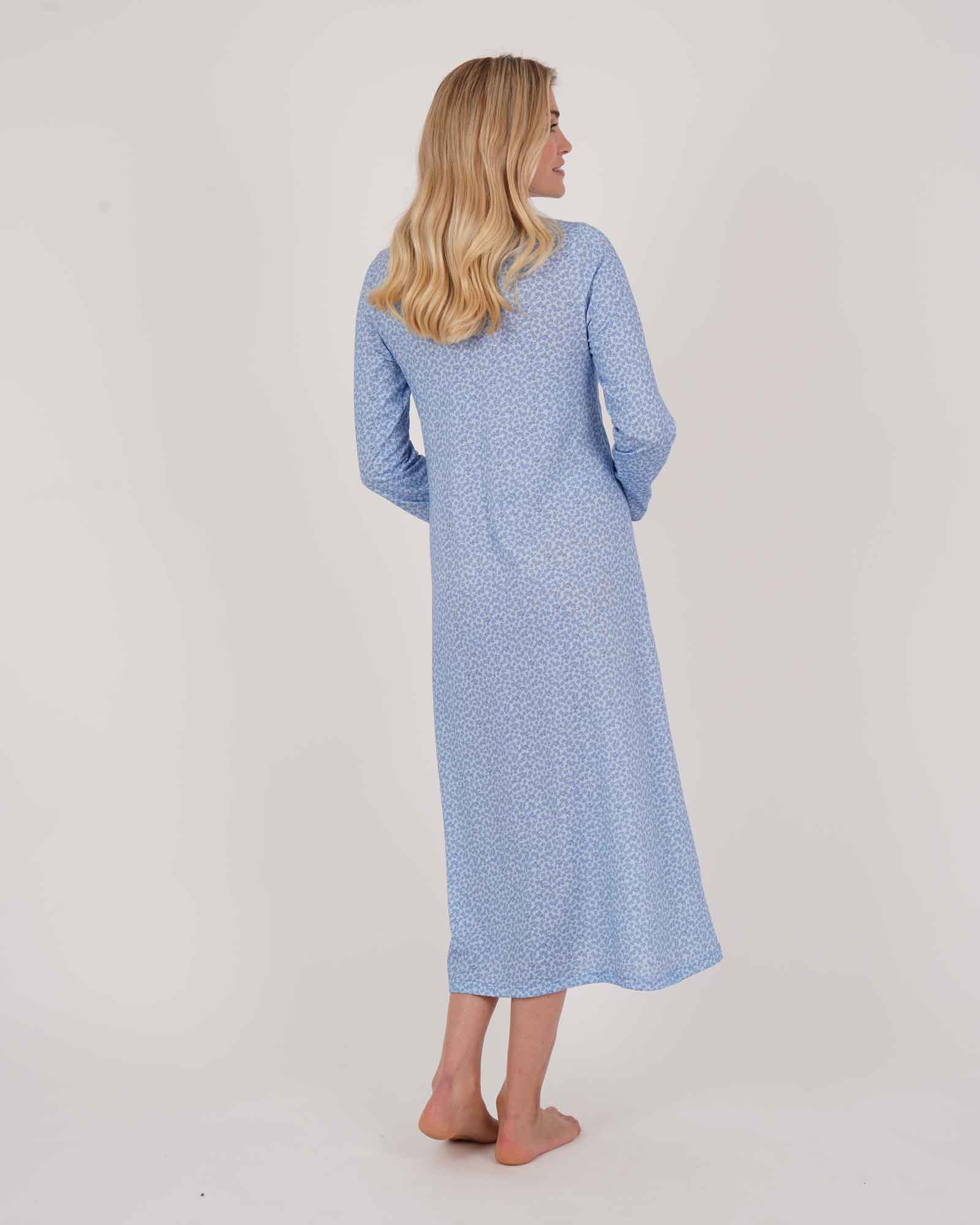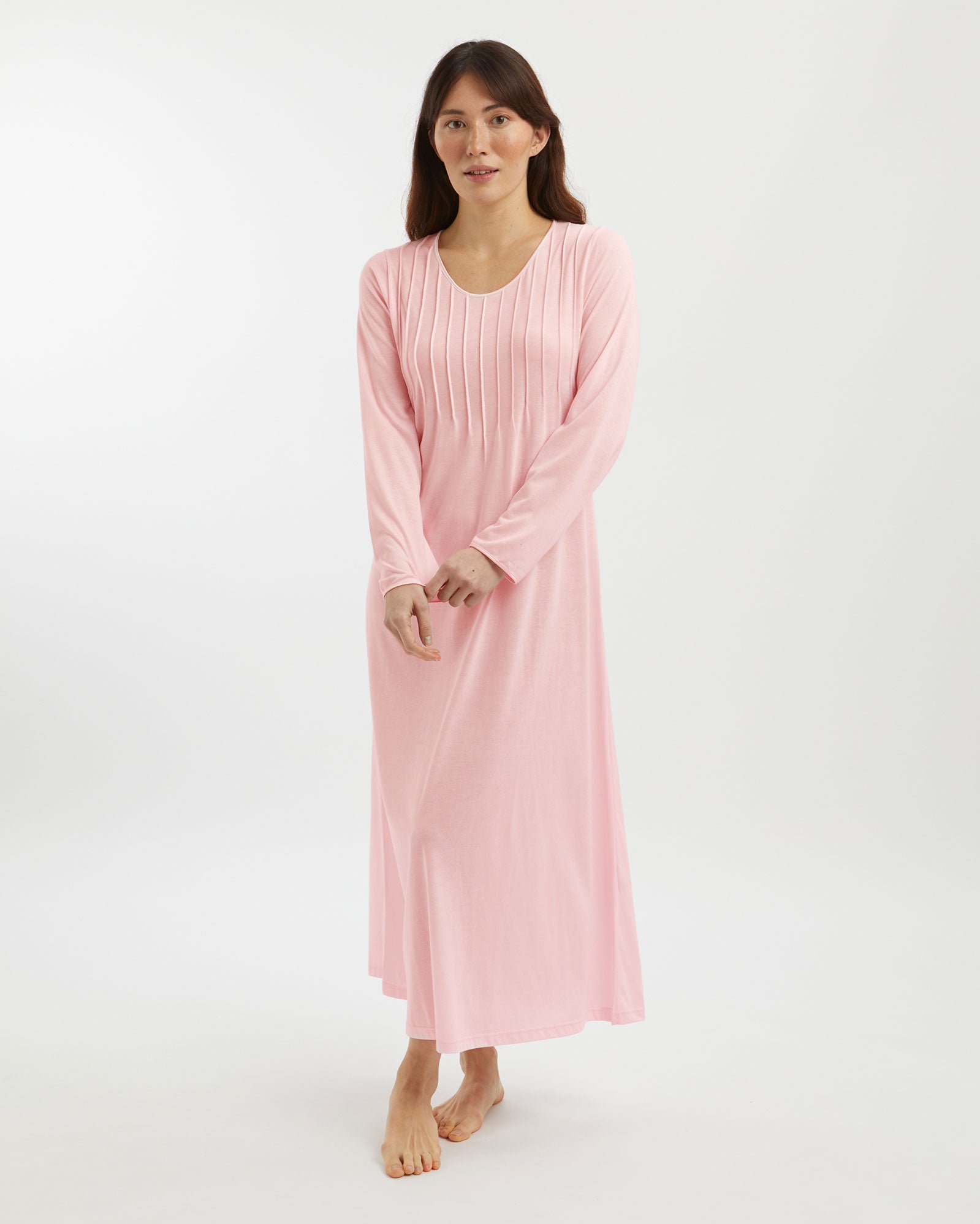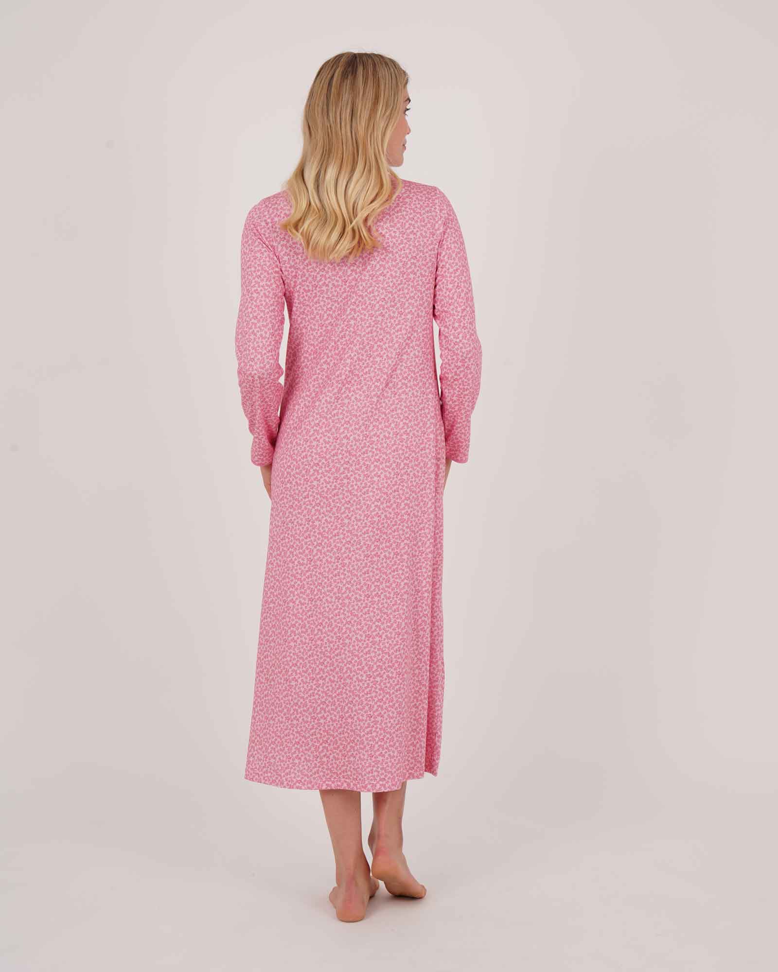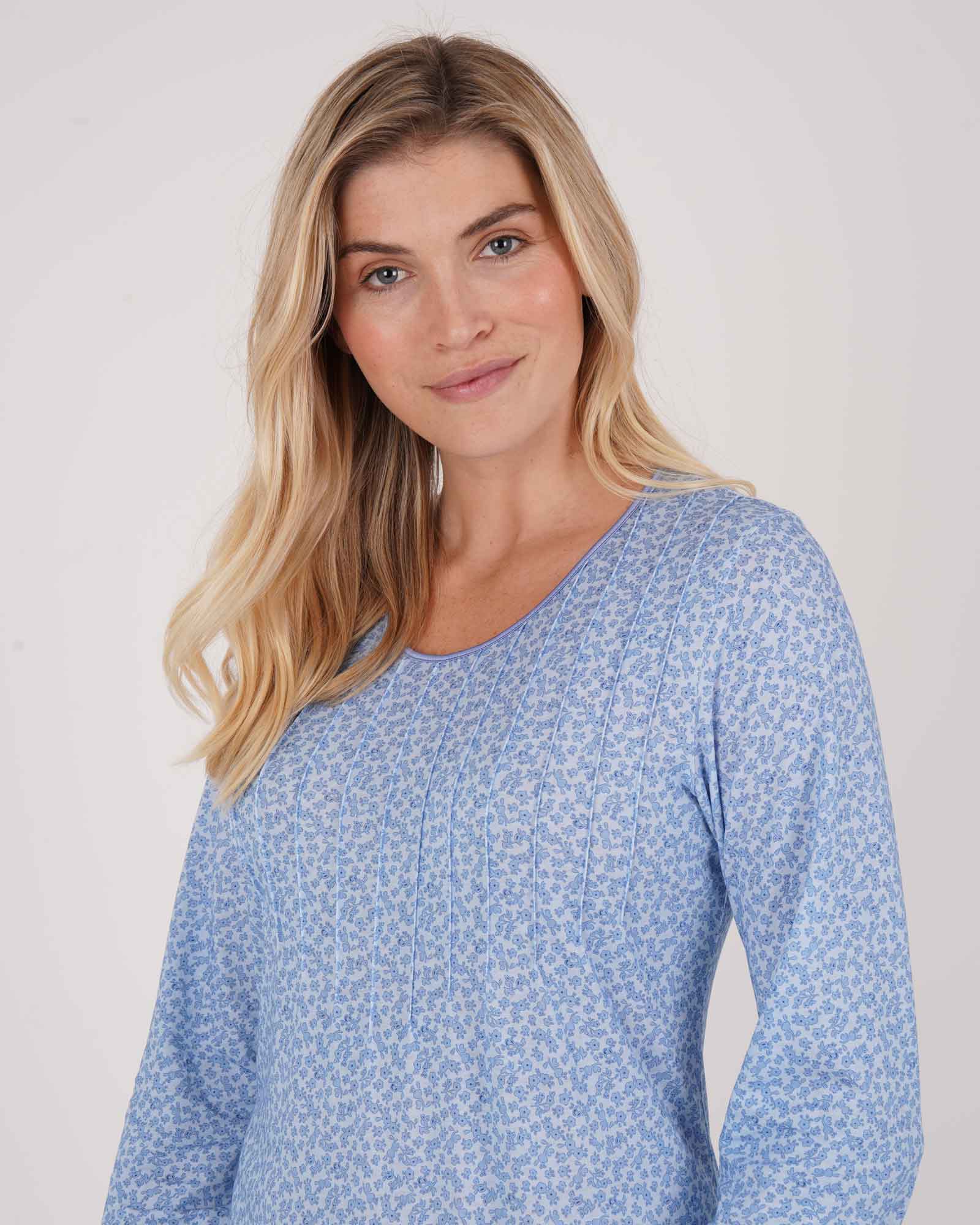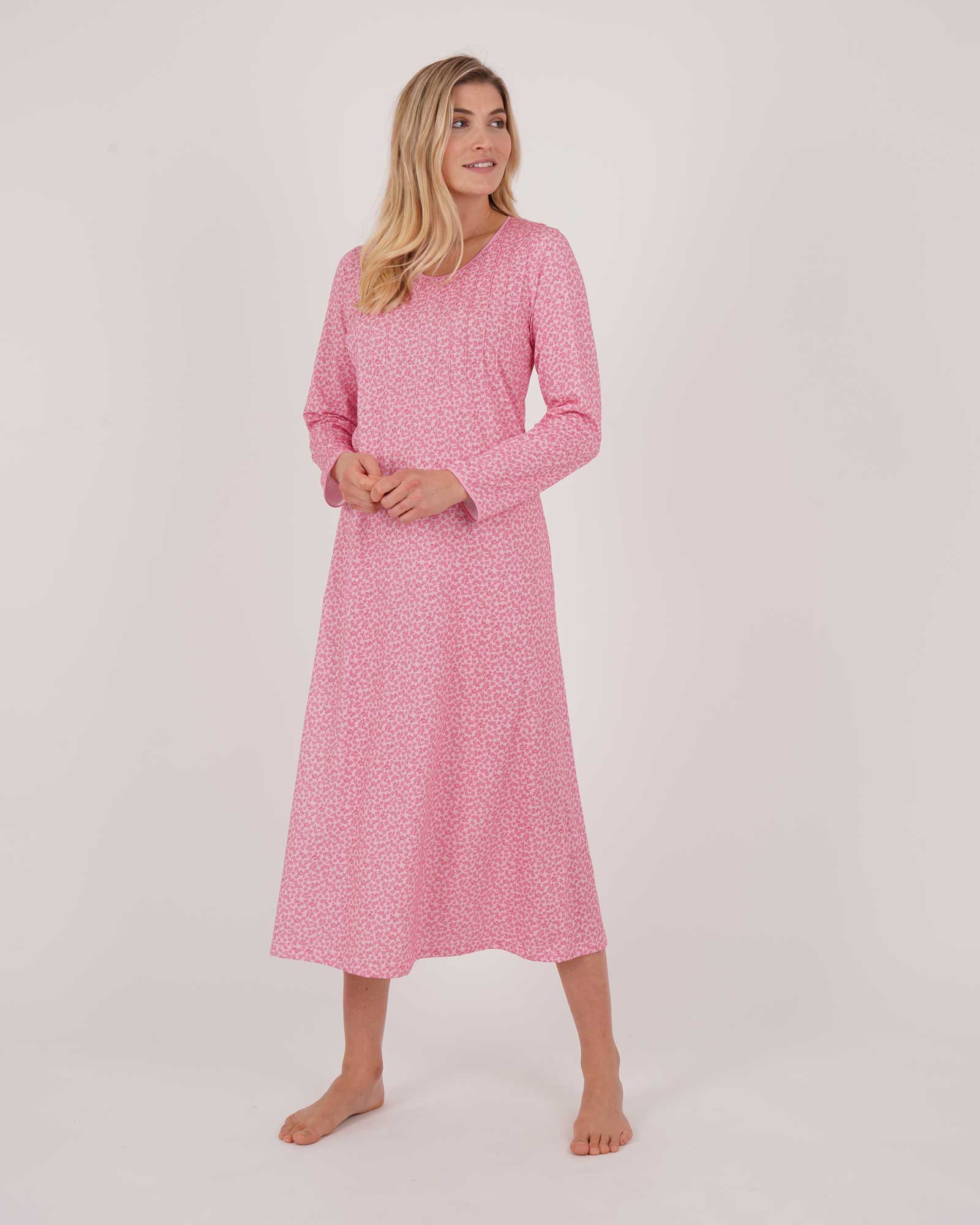 Women's French Pleat Long Sleeved Jersey Nightdress - Belby Floral