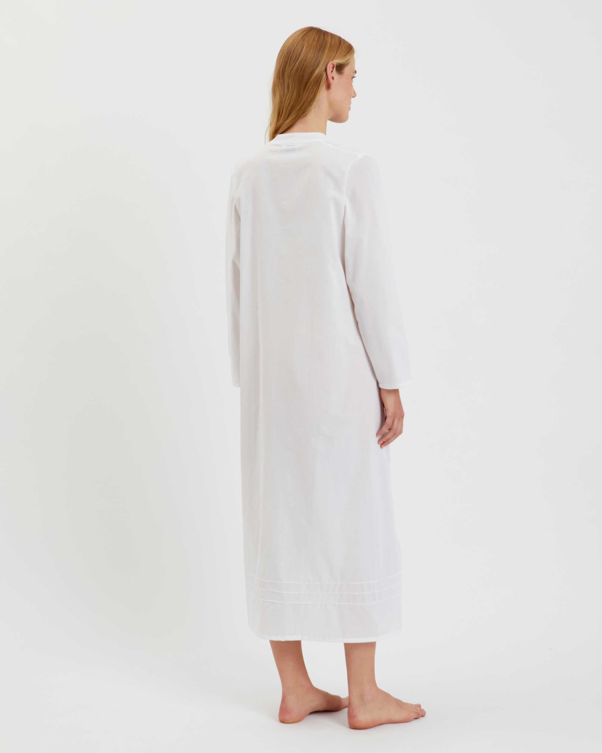Our Victoria Long-Sleeved Cotton Nightdress in white is elegance and comfort combined, the perfect pairing for luxury sleepwear.