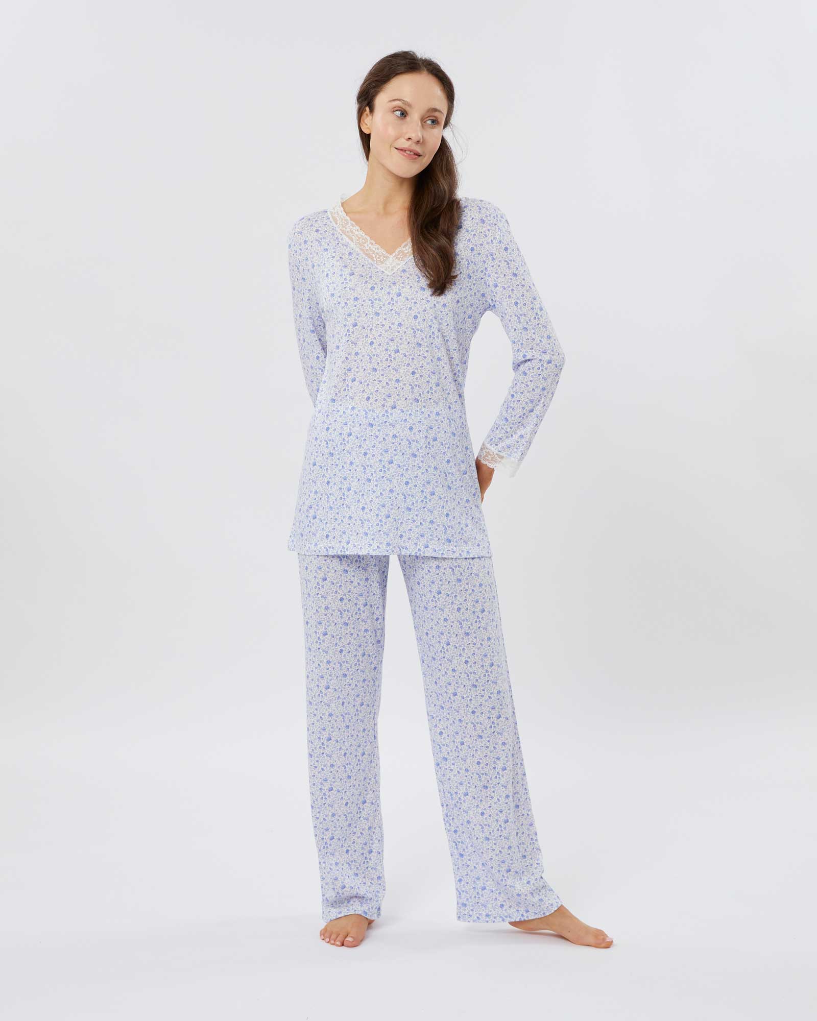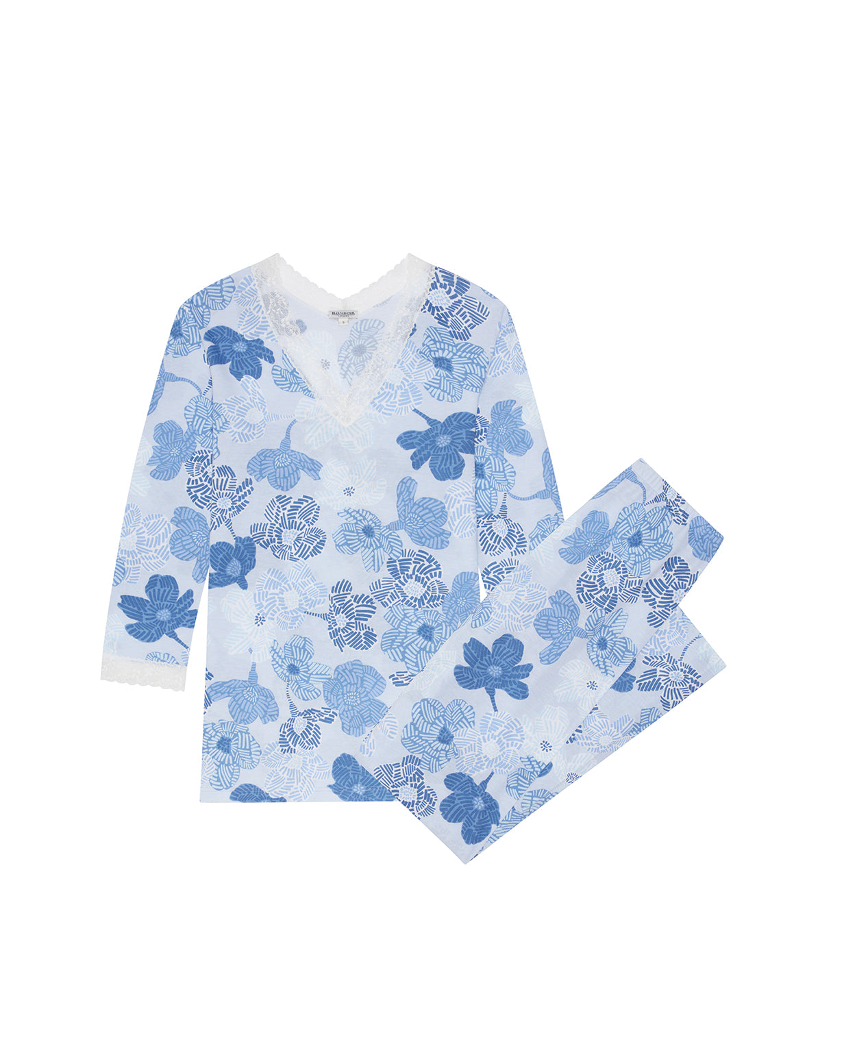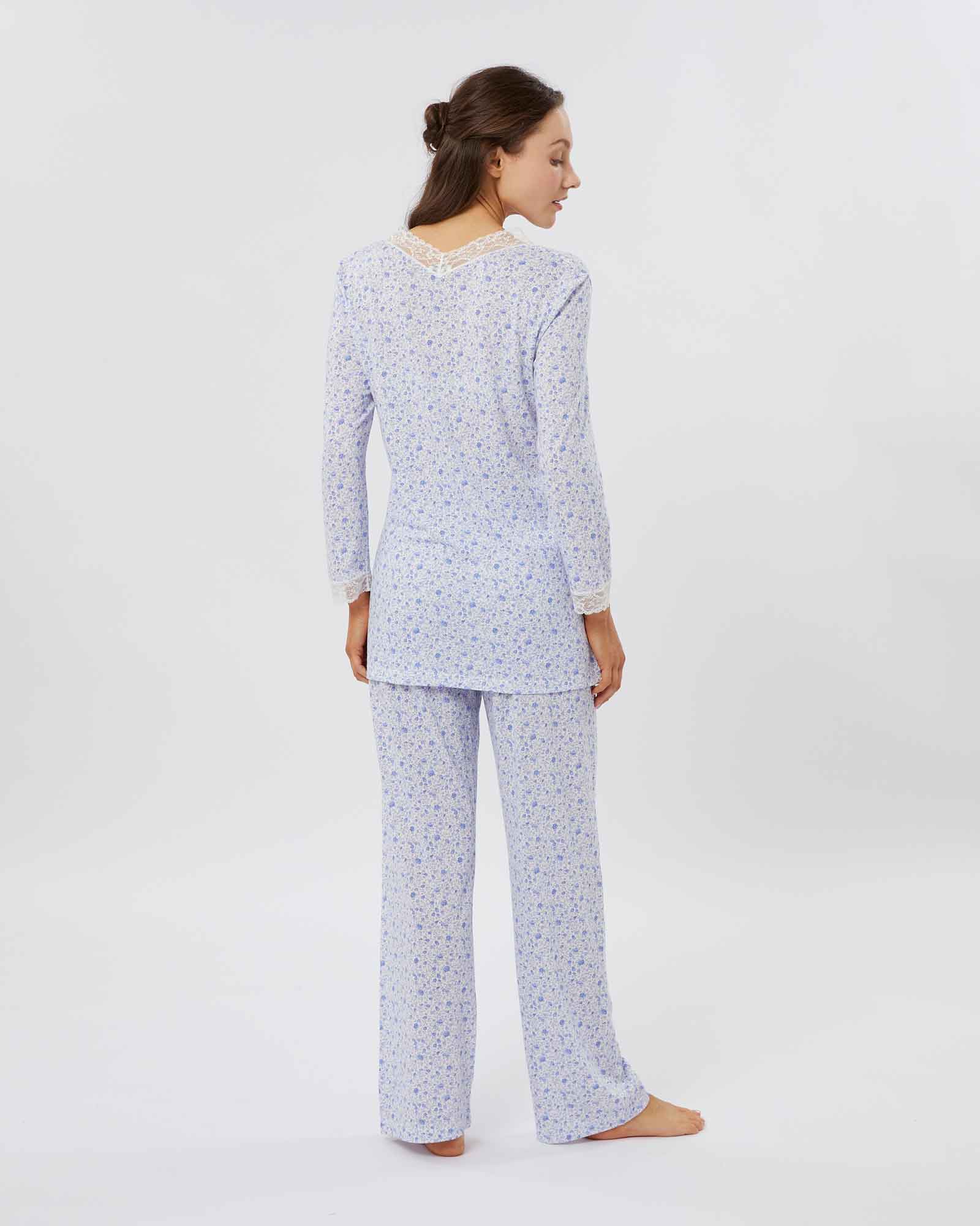 Crafted in Italy, the pyjamas are elegantly cut - featuring full length pyjama bottoms and ¾ length sleeves for a feminine yet comfortable fit.