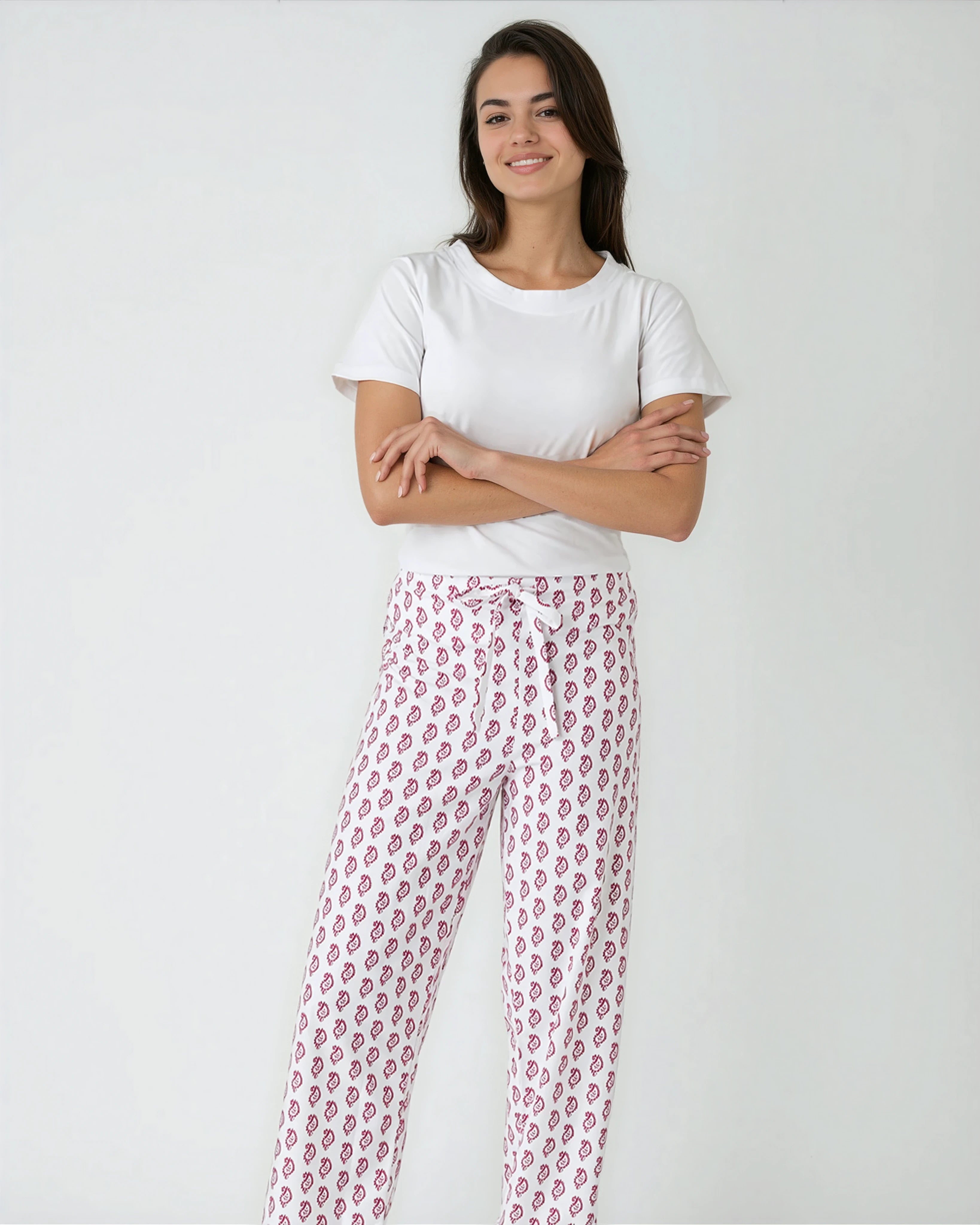 Crafted from 100% brushed cotton, our super-soft berry paisley pyjama trousers are the perfect loungewear addition for cosy evenings in. Cut for a comfortable and relaxed fit, they feature a half-elastic, half-drawstring waist.