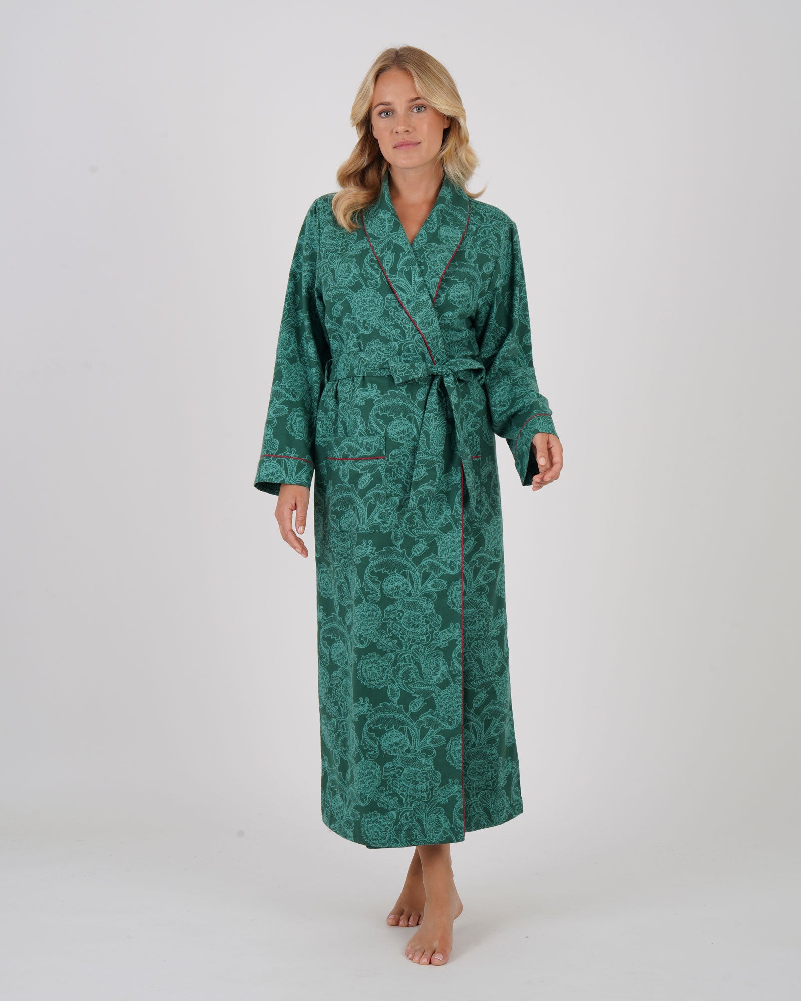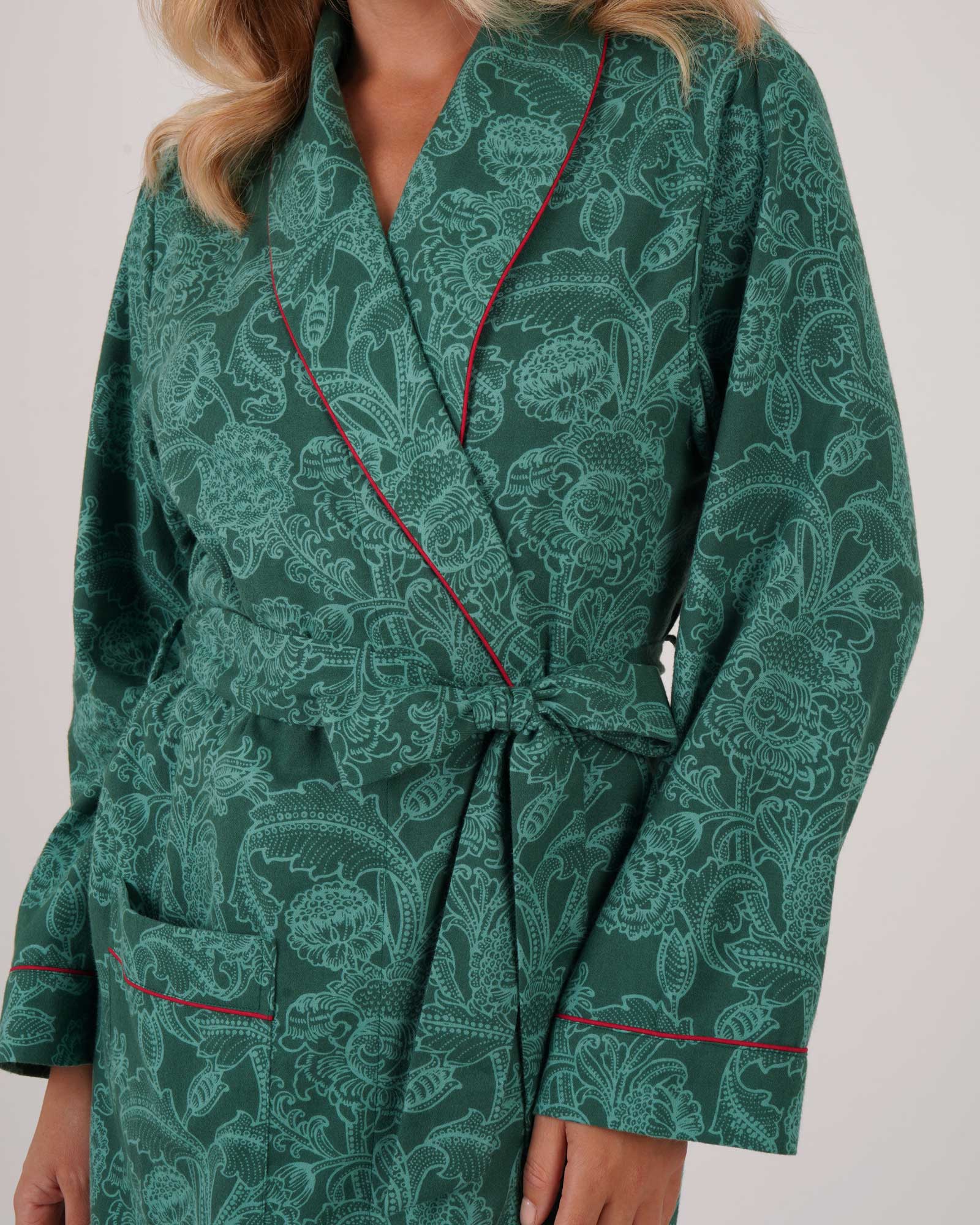 Women's Brushed Cotton Dressing Gown - Paisley Flower Green