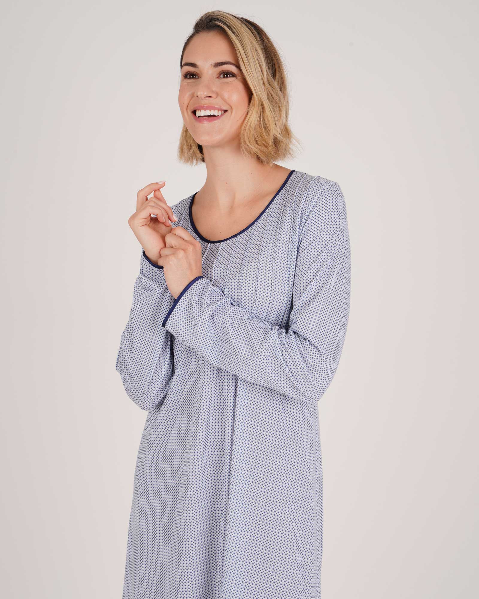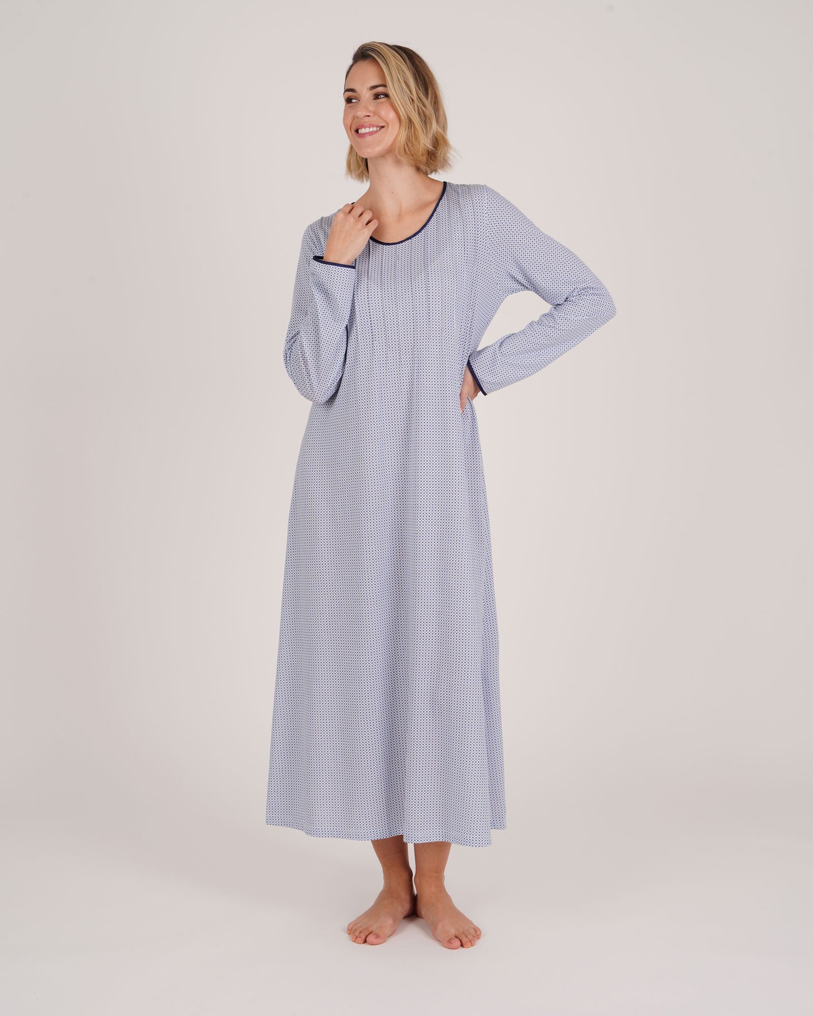 Women's French Pleat Long Sleeved Jersey Nightdress - Selby Dot
