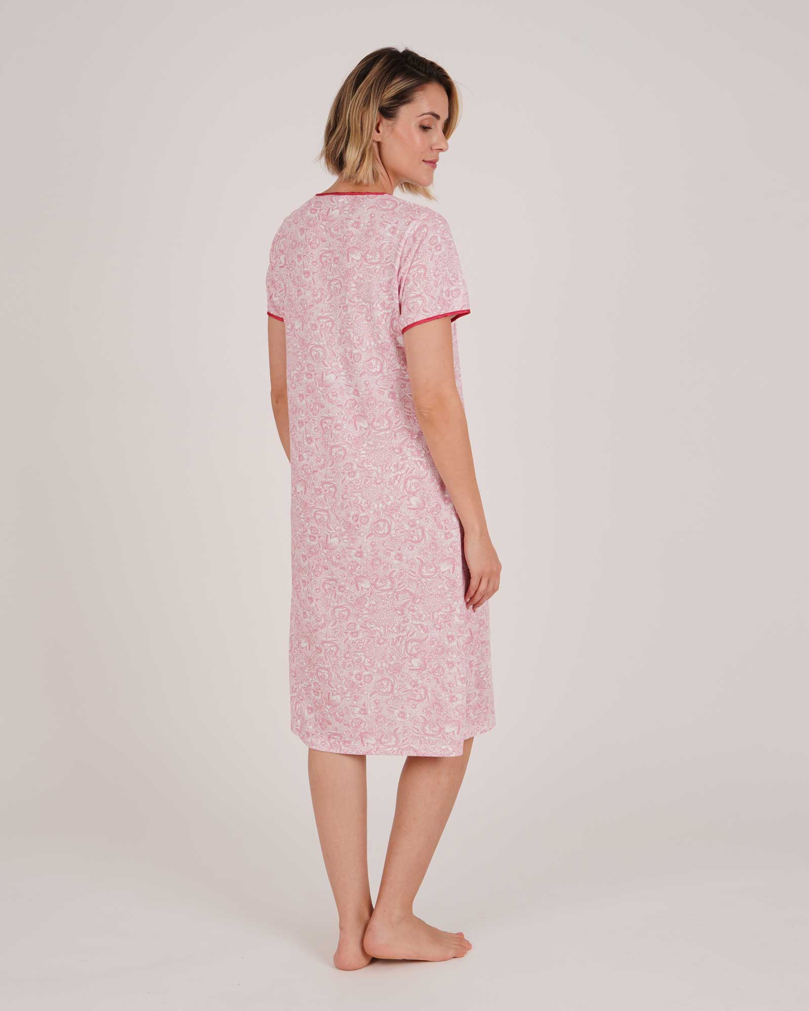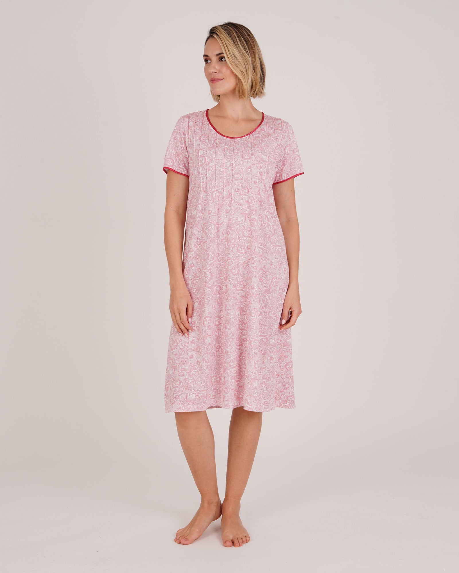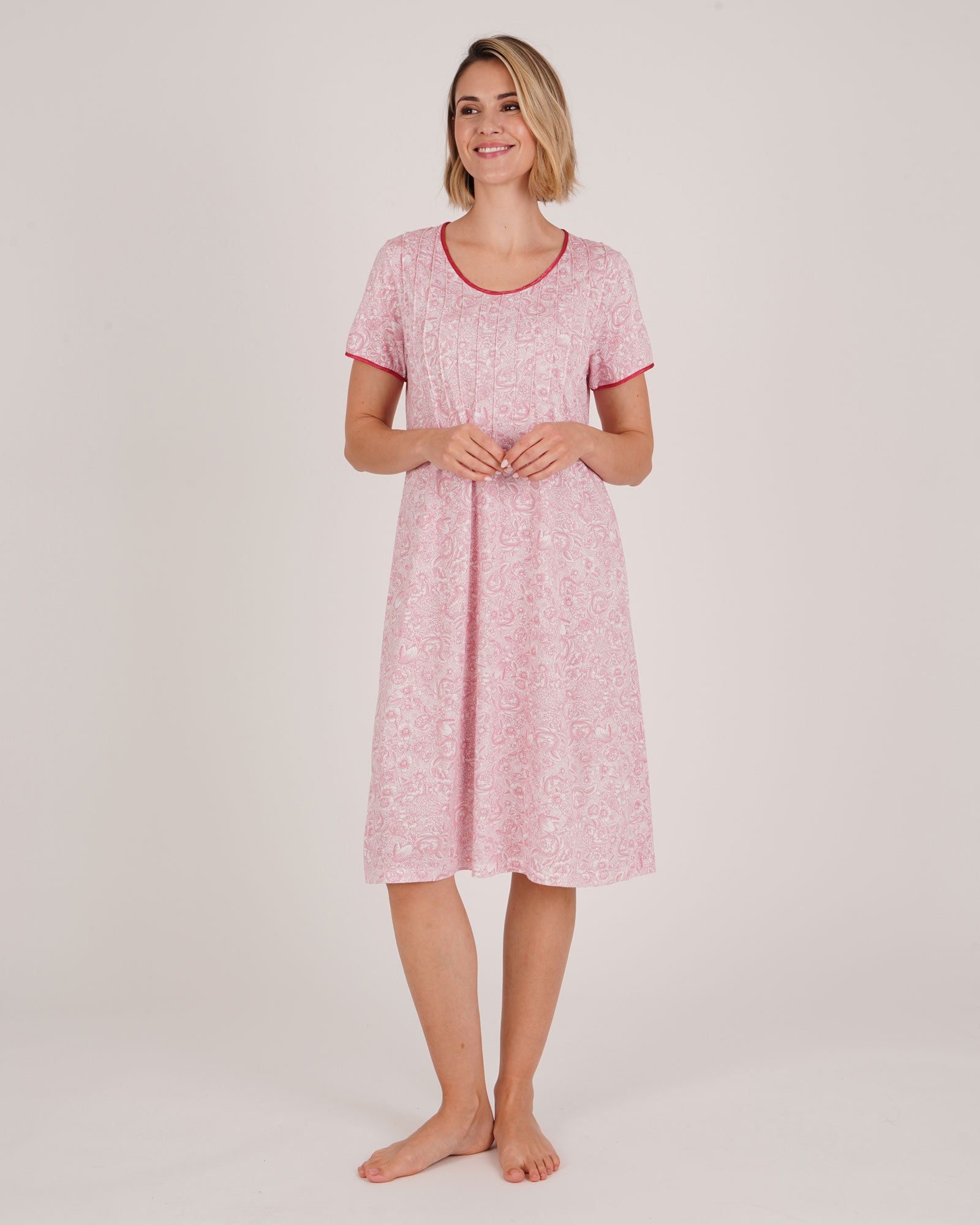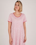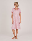 Women's French Pleat Midi Short Sleeve Jersey Nightdress - Belby Floral Red