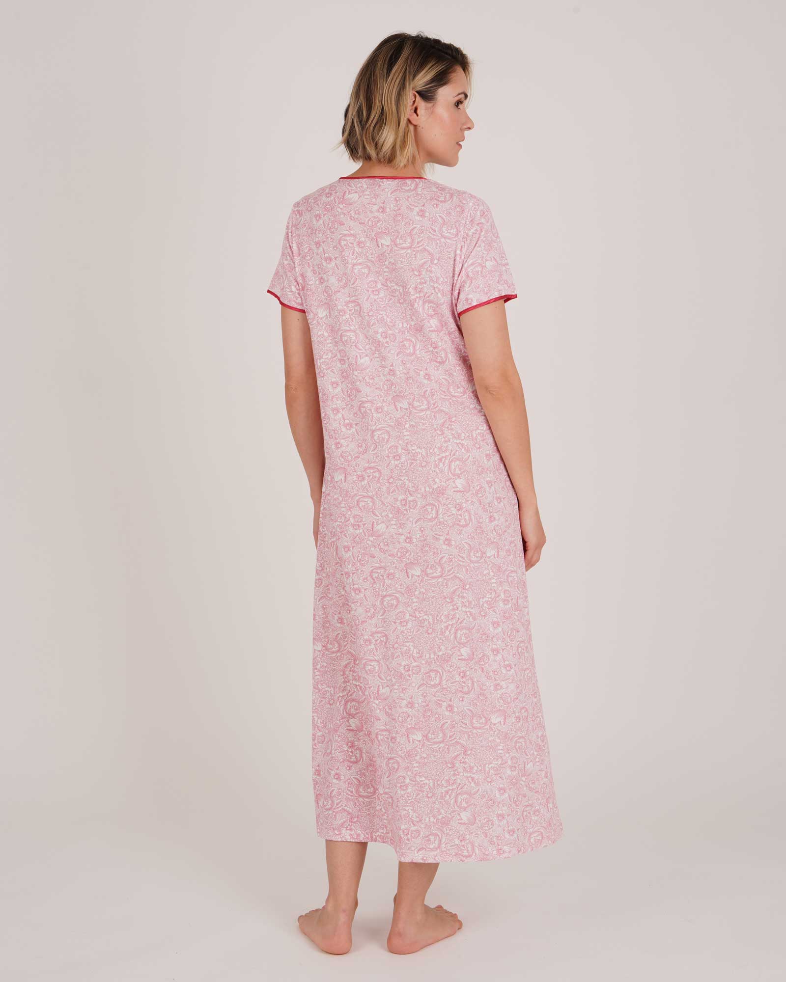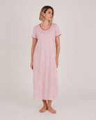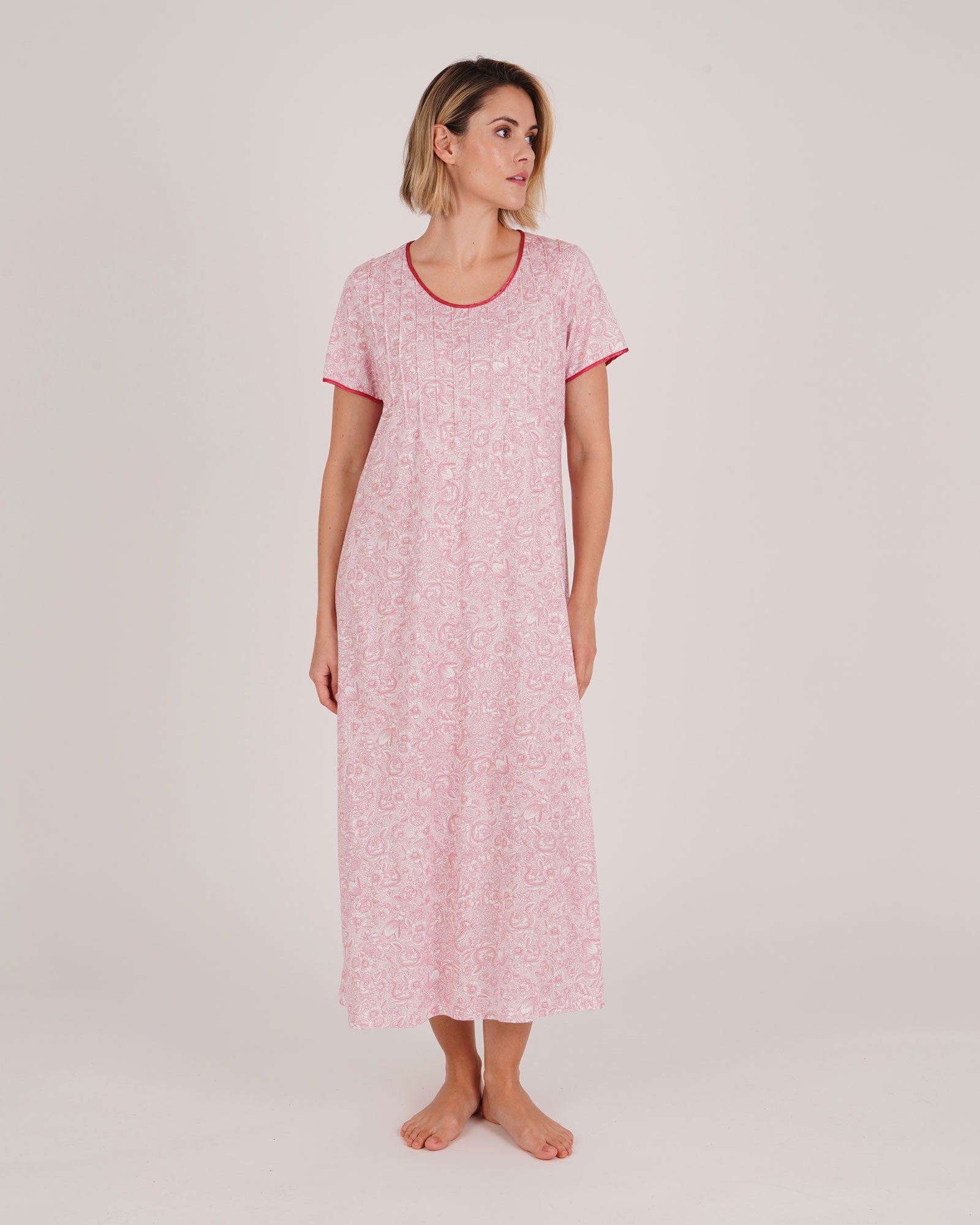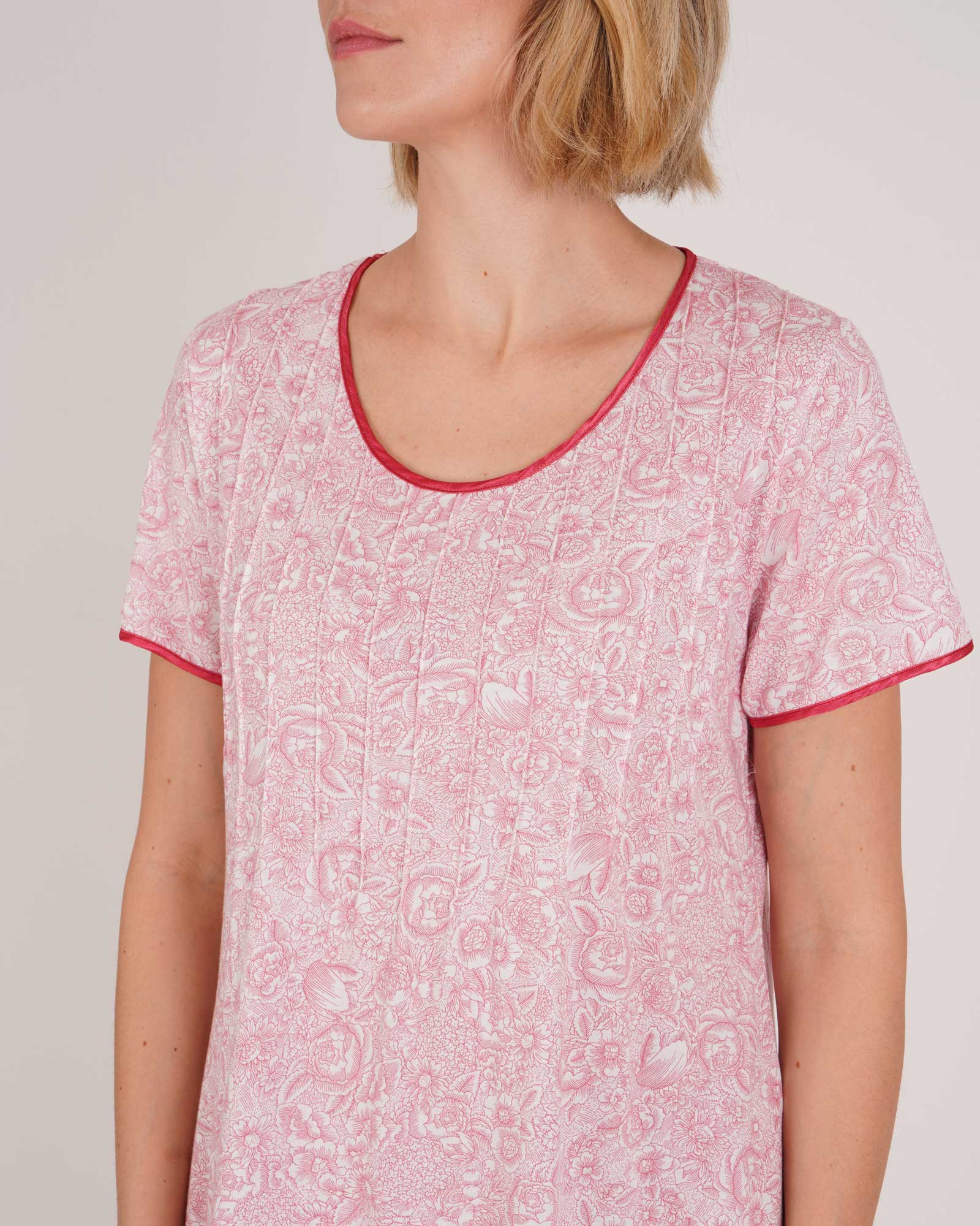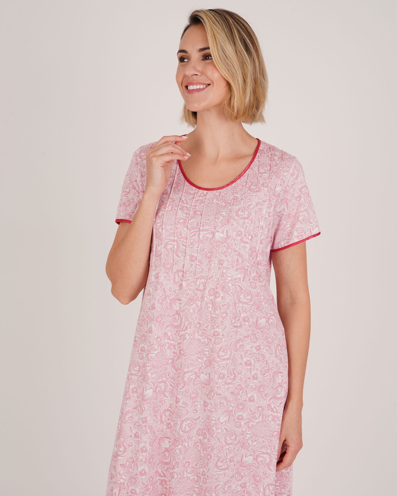 Women's French Pleat Short Sleeved Jersey Nightdress - Belby Floral Red