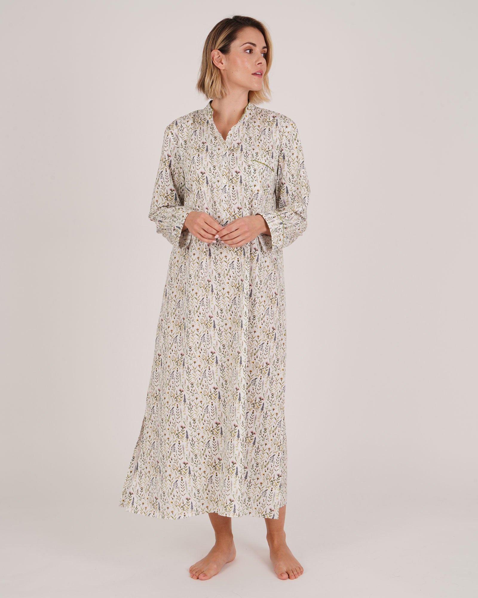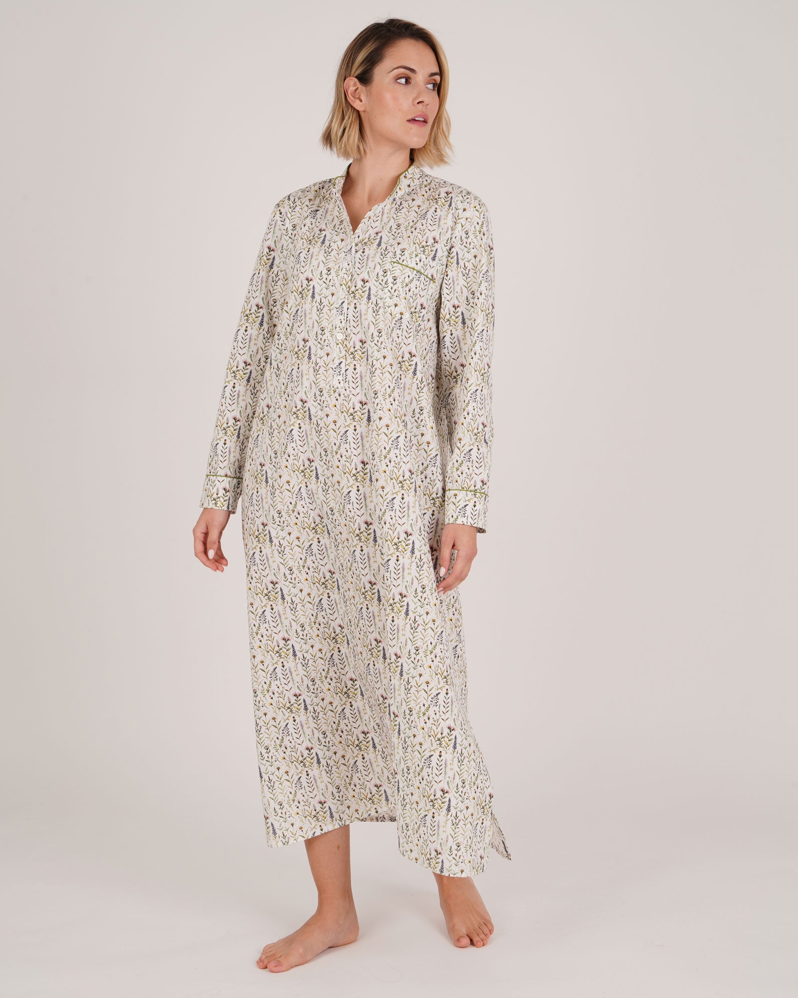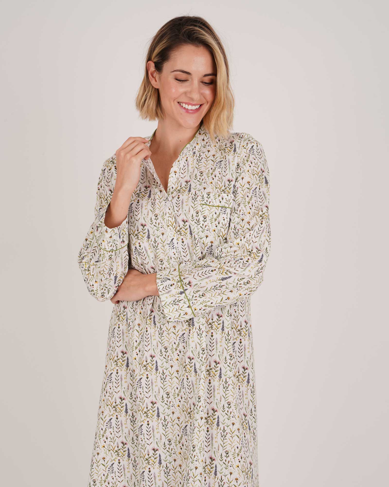 Our Women’s Estelle Grandad Collar Nightshirt is crafted from a beautiful smooth 100% cotton with our new season Banwell Floral print, this is the perfect addition to your nightwear collection.
