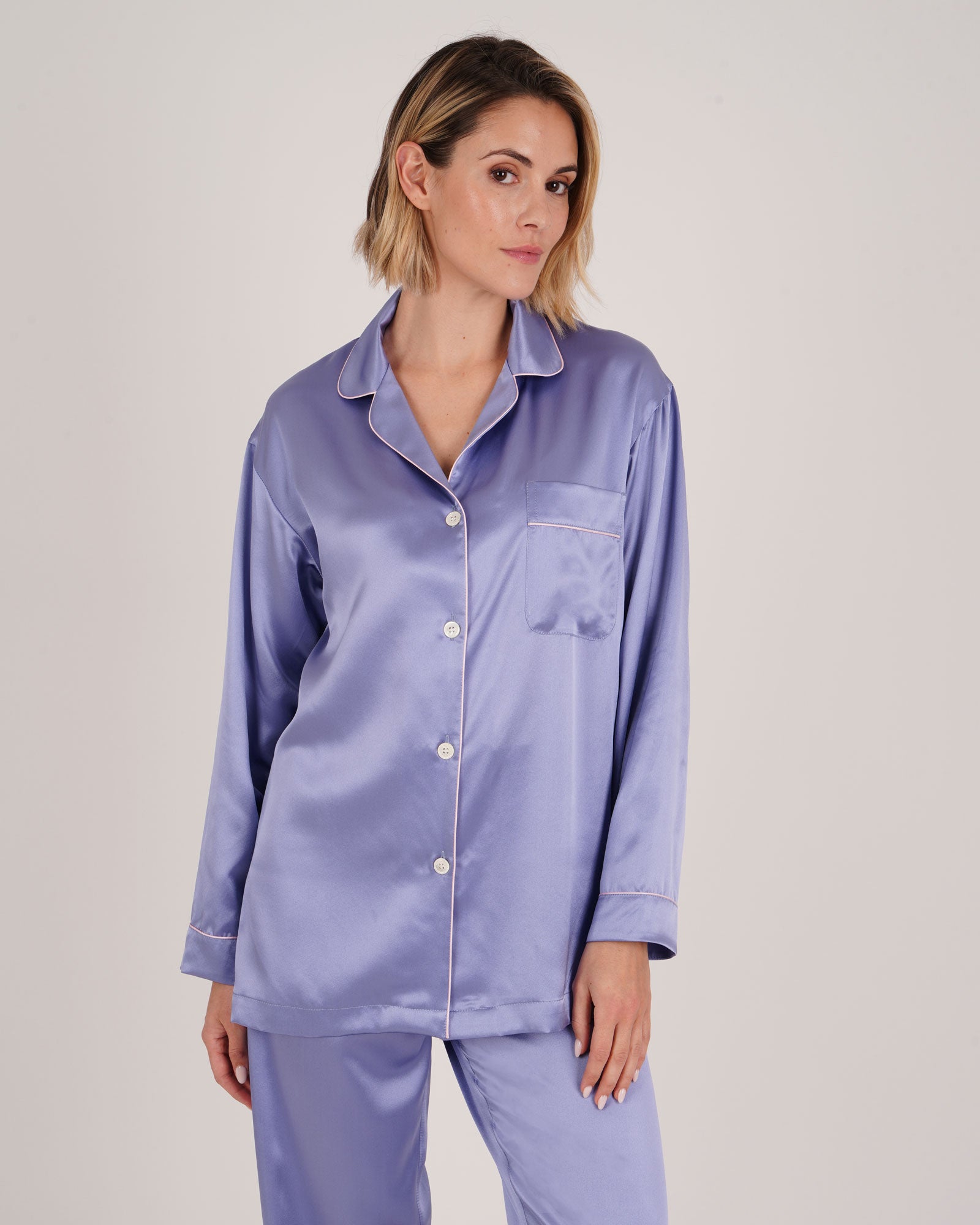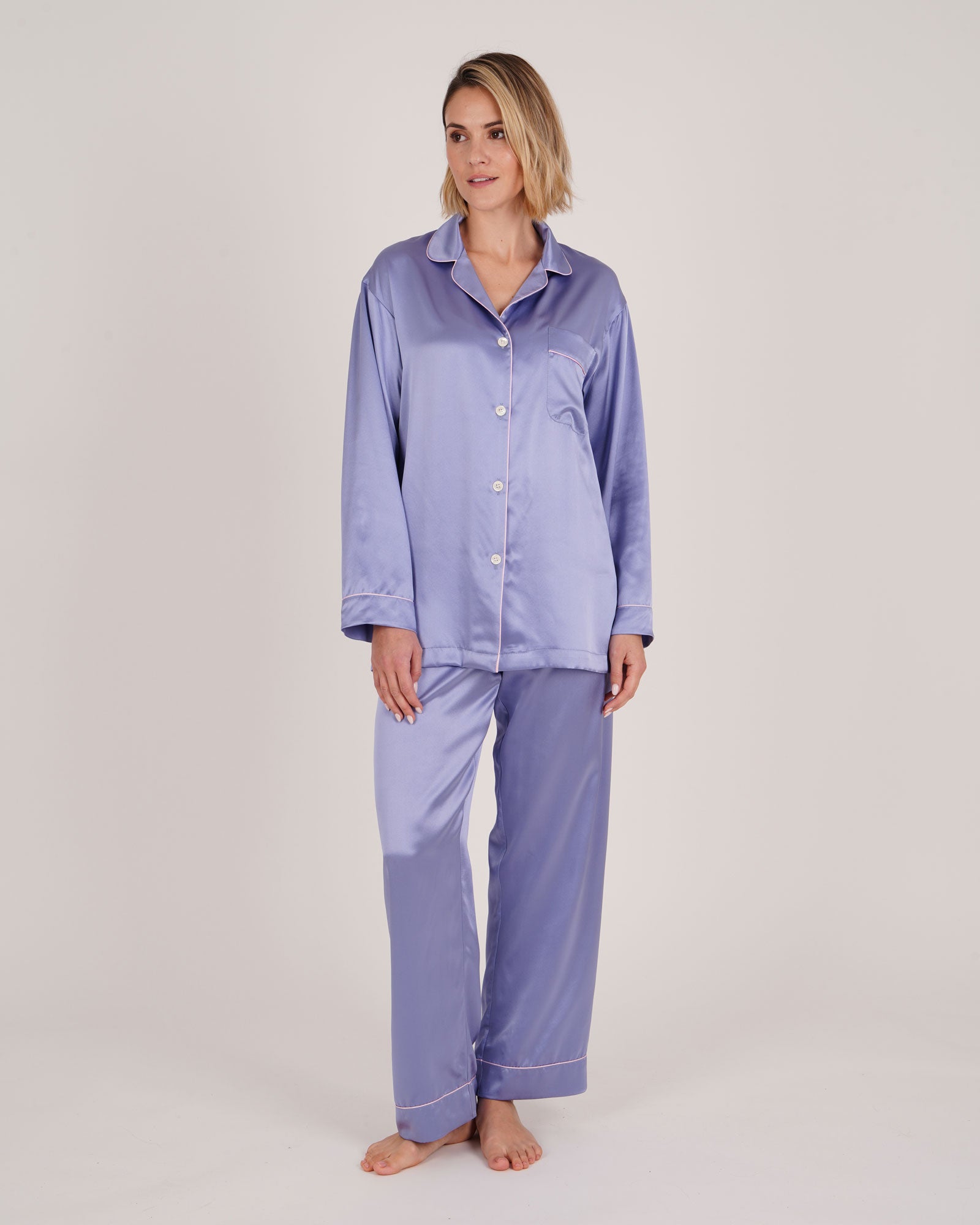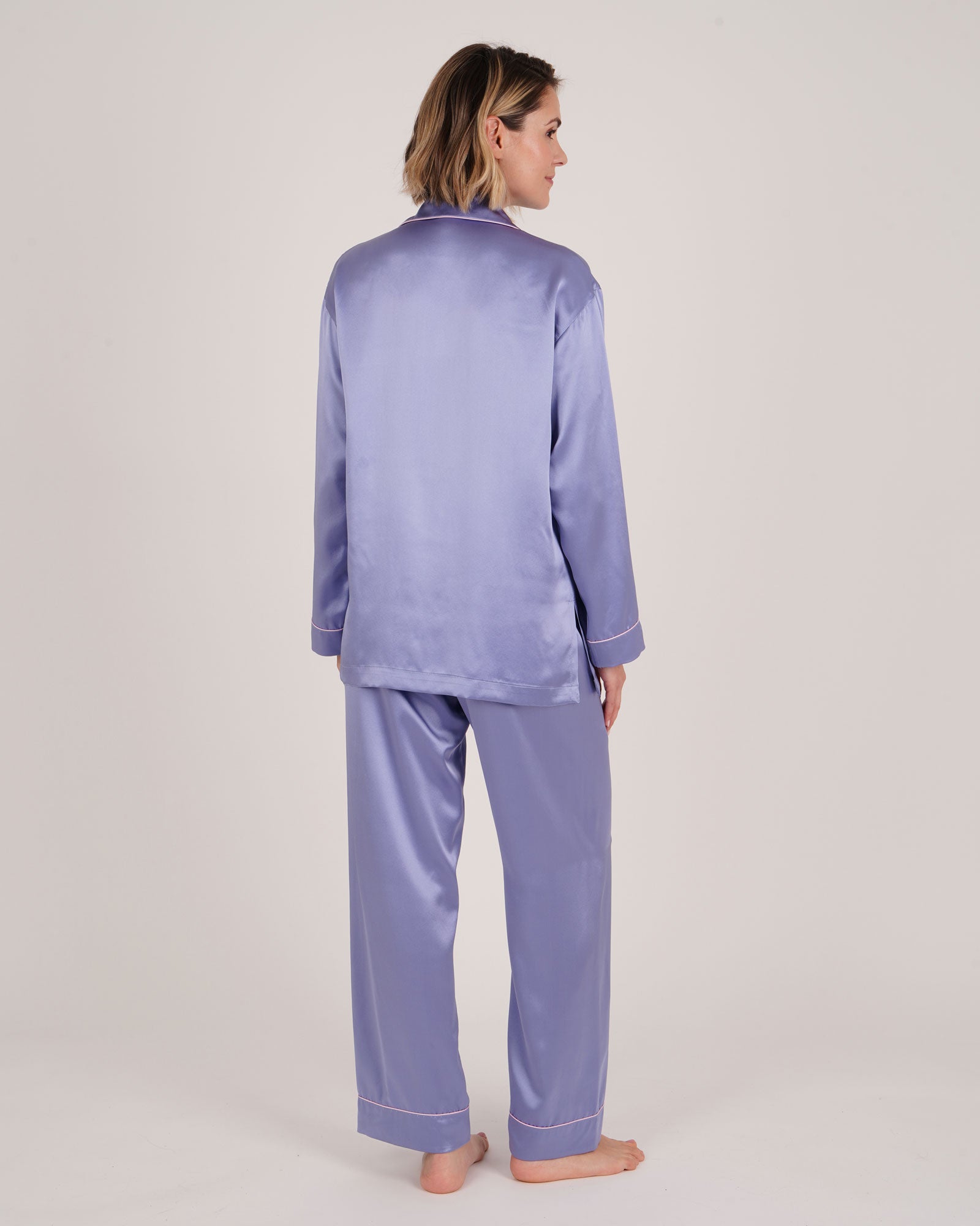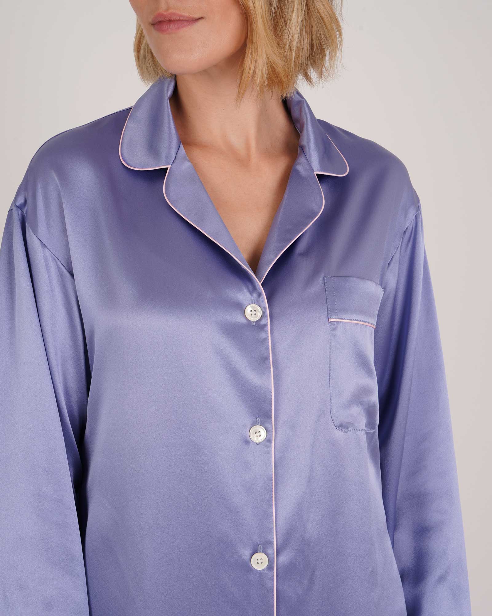 Add a touch of luxury to your sleepwear with our women's silk pyjamas. Tailored from a lustrous 19 momme silk satin in new season Thistle, their relaxed fit is elegant and stylish whilst also ensuring they won't feel restrictive when sleeping.