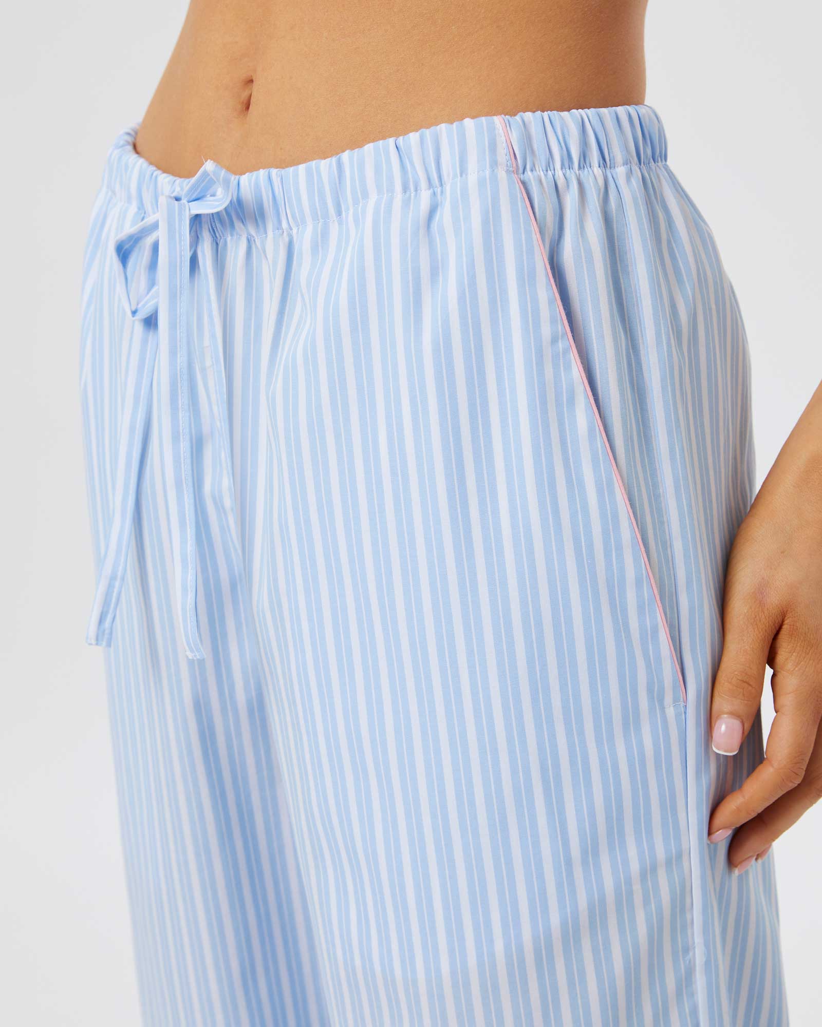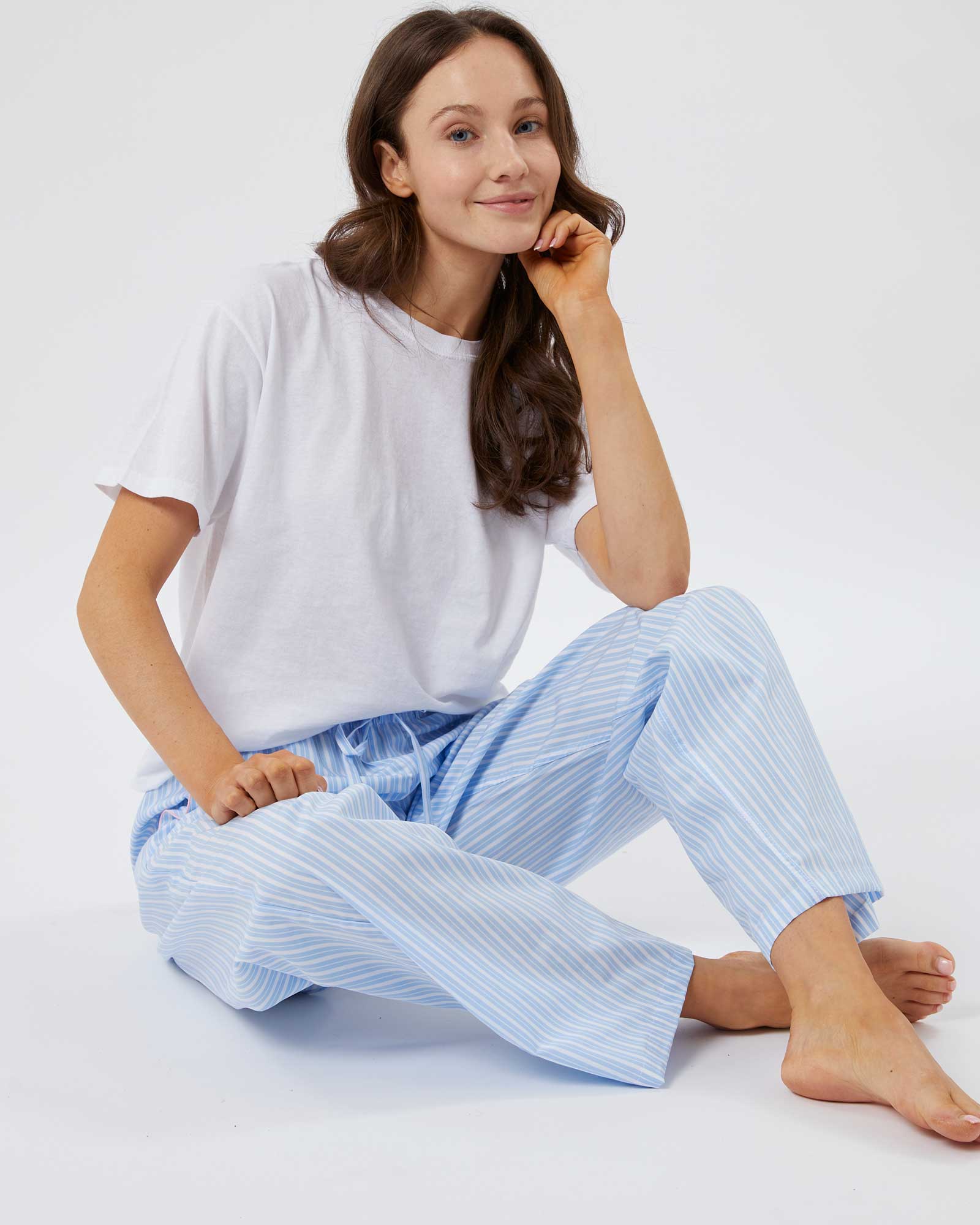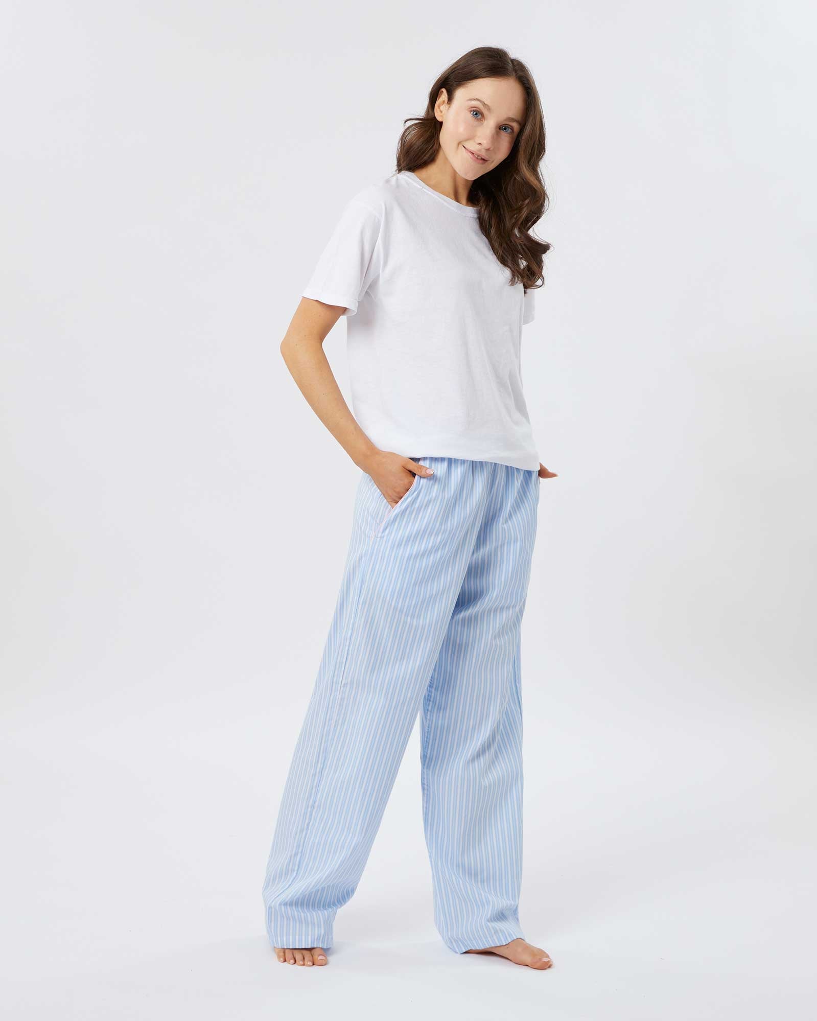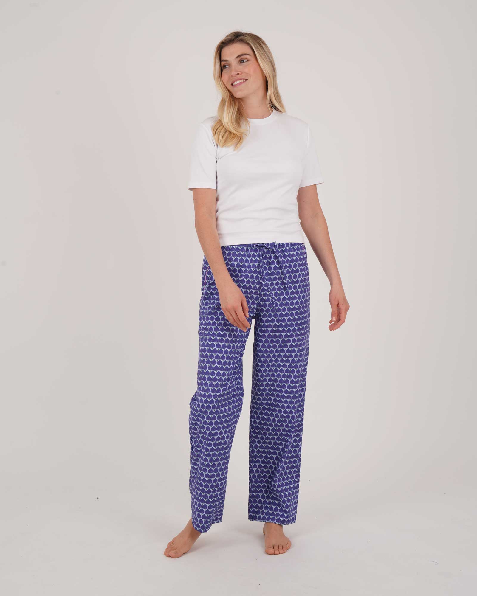 Our women's classic cotton pyjama trousers are the answer to laid back lounging. New this season in our new Nelda Blue Print. Featuring a fully elasticated and tie waist, they are perfect paired with a simple t-shirt.