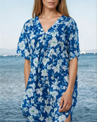 Introducing the Lou Lou Rayol Kaftan from Zen Ethic - your summer travel essential for effortless style. Designed in Paris from 100% organic cotton, these luxurious pieces are crafted with the same premium materials as your beloved Bonsoir nightwear. This kaftan features a beautiful blue base adorned with white floral print, adding a touch of elegance to your relaxation wardrobe or next getaway.