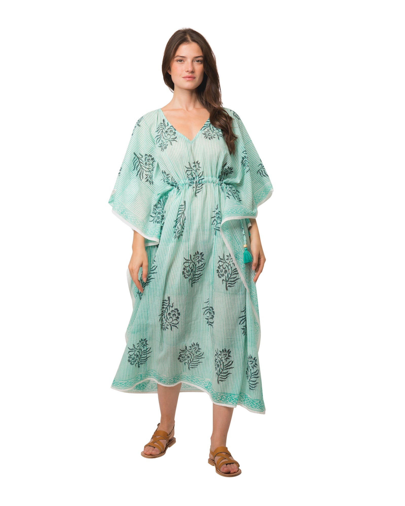 Crafted from 100% organic cotton and machine washable at 30º, these kaftans are as practical as they are beautiful. The One Size fit should comfortably suits sizes P to XXL, making them perfect for lounging or travel.