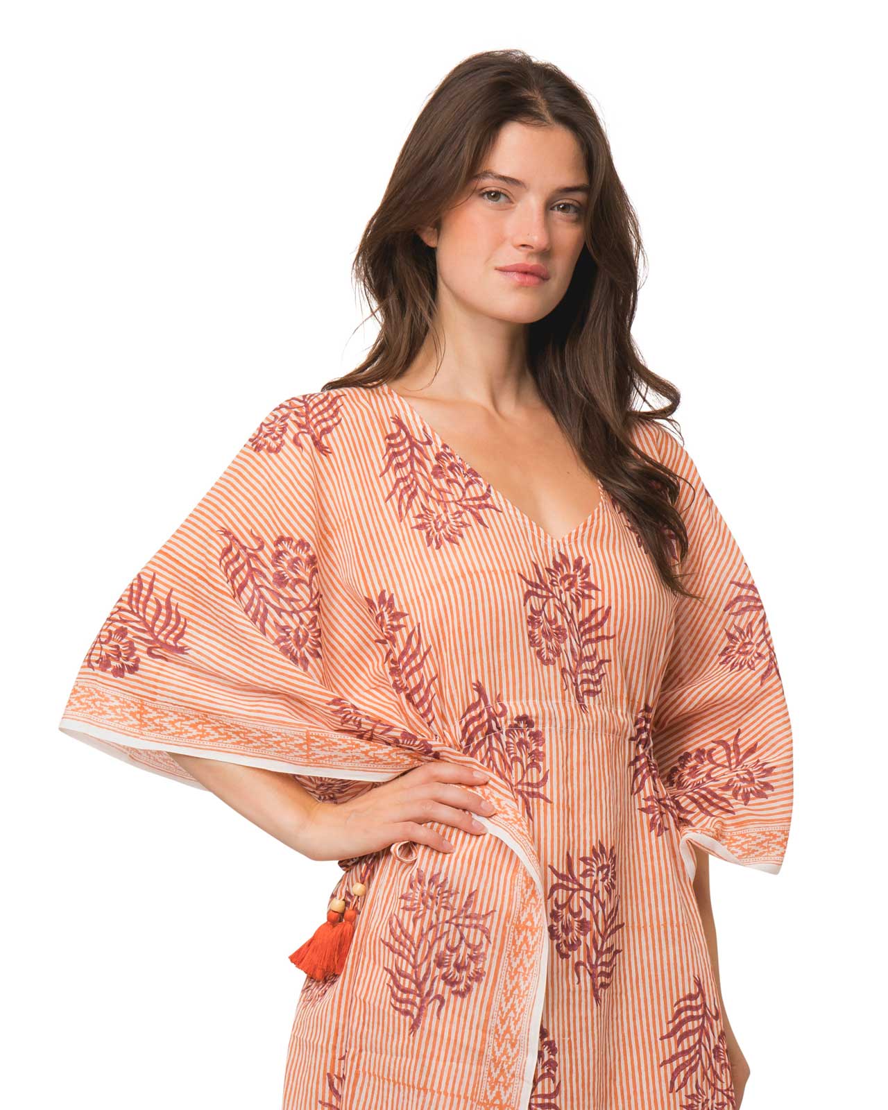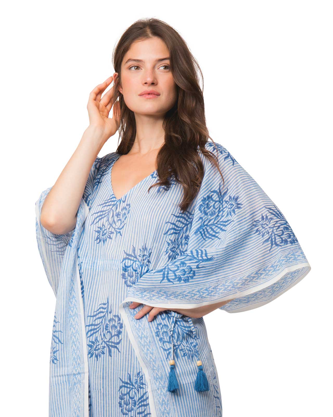 Crafted from 100% organic cotton and machine washable at 30º, these kaftans are as practical as they are beautiful. The One Size fit should comfortably suits sizes P to XXL, making them perfect for lounging or travel.