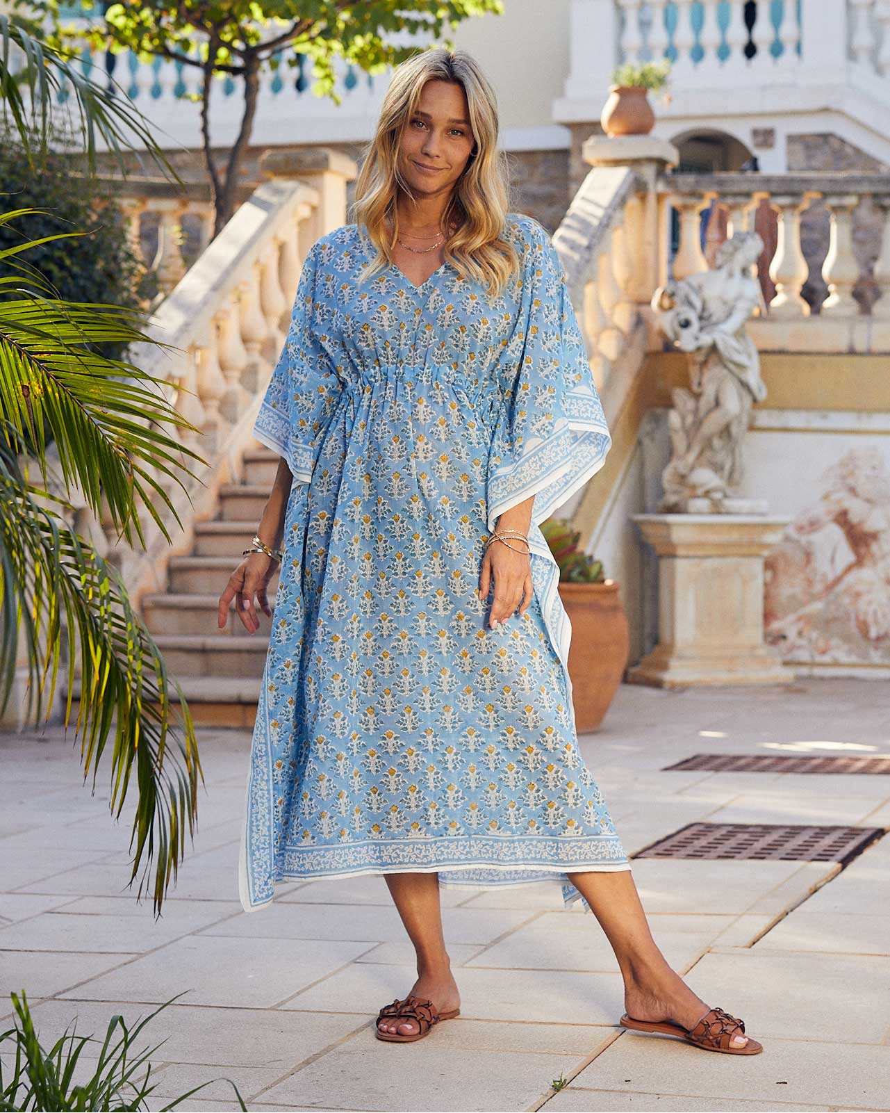 Crafted from 100% organic cotton and machine washable at 30º, these kaftans are as practical as they are beautiful. The One Size fit should comfortably suits sizes P to XXL, making them perfect for lounging or travel.