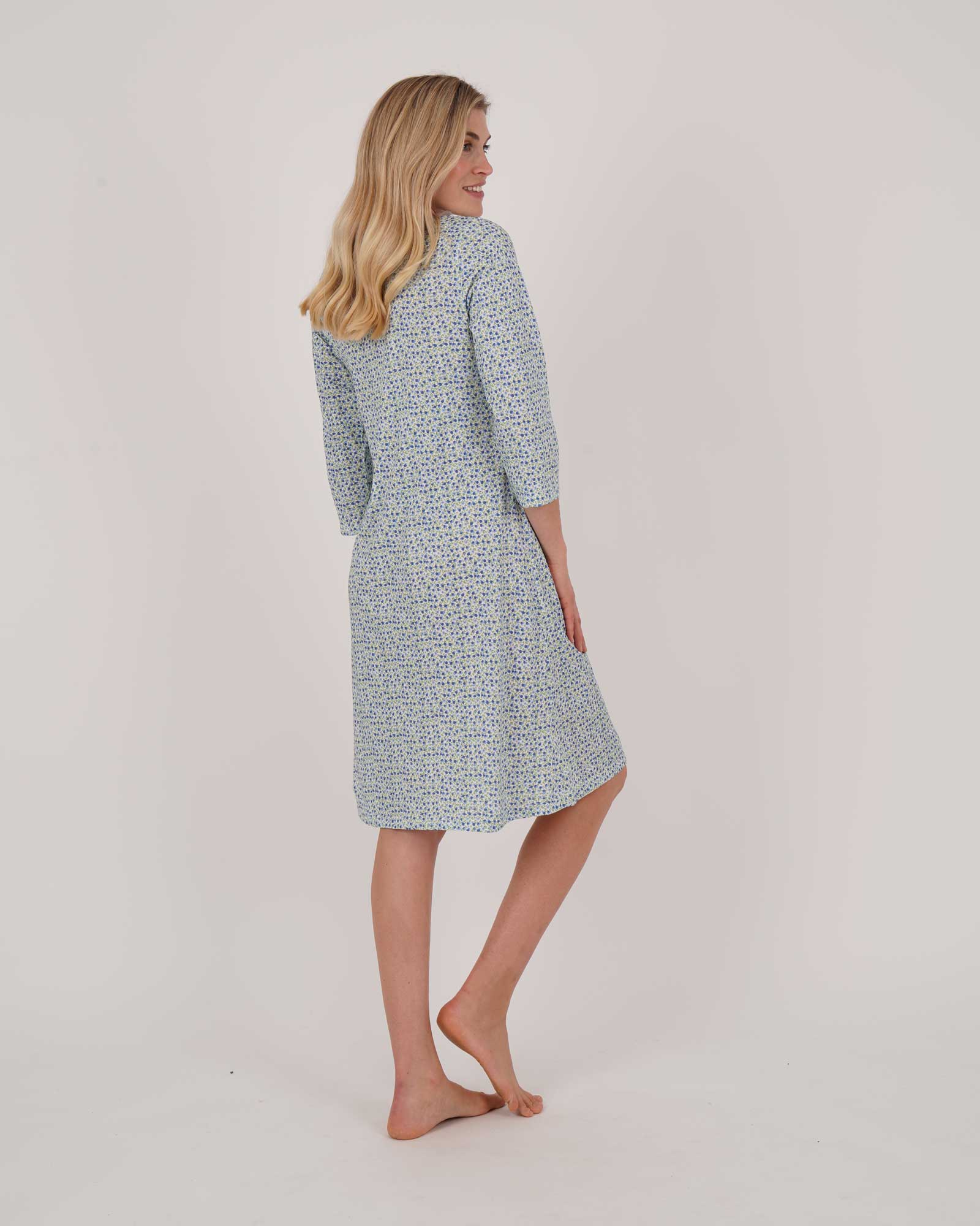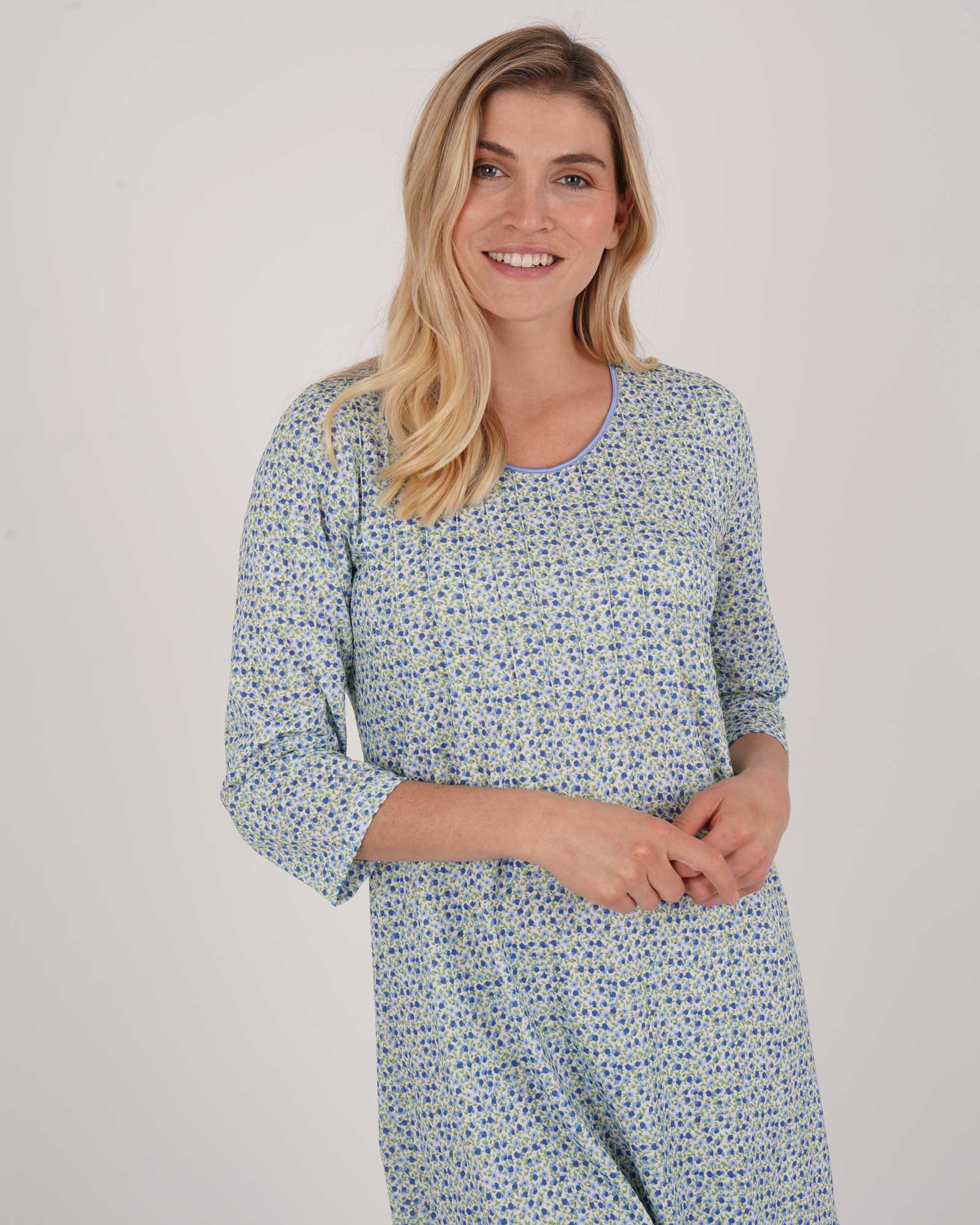 Women's French Pleat Midi Jersey Nightdress - Bickerton Ditsy Floral Blue