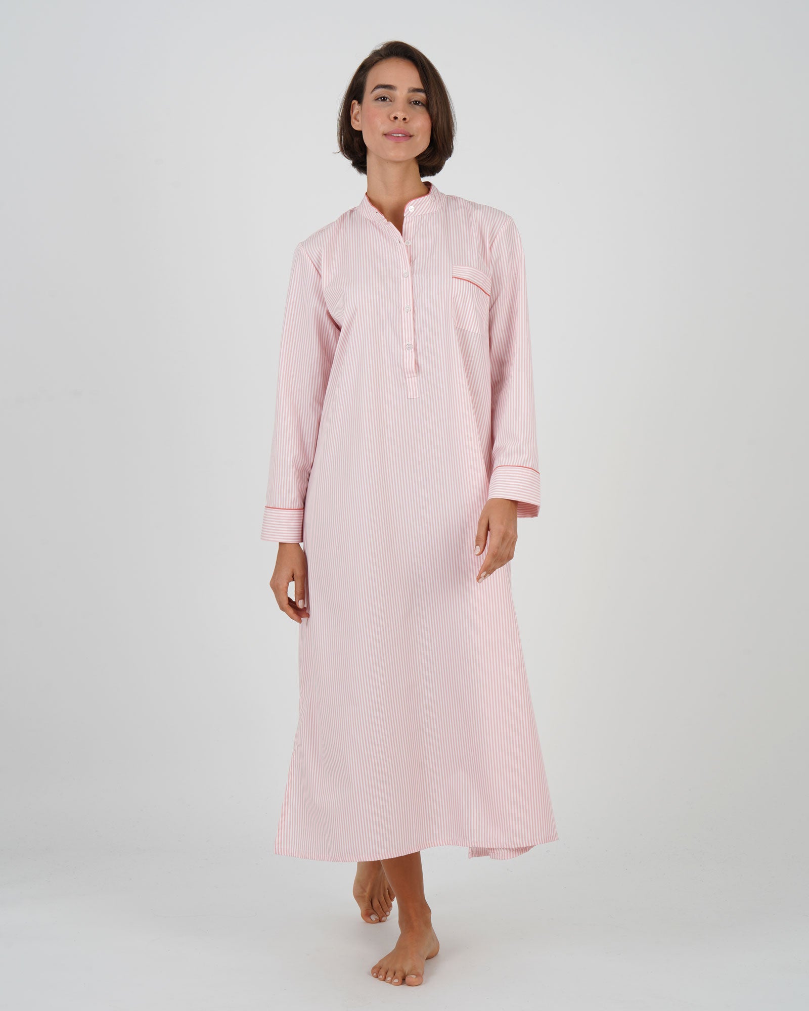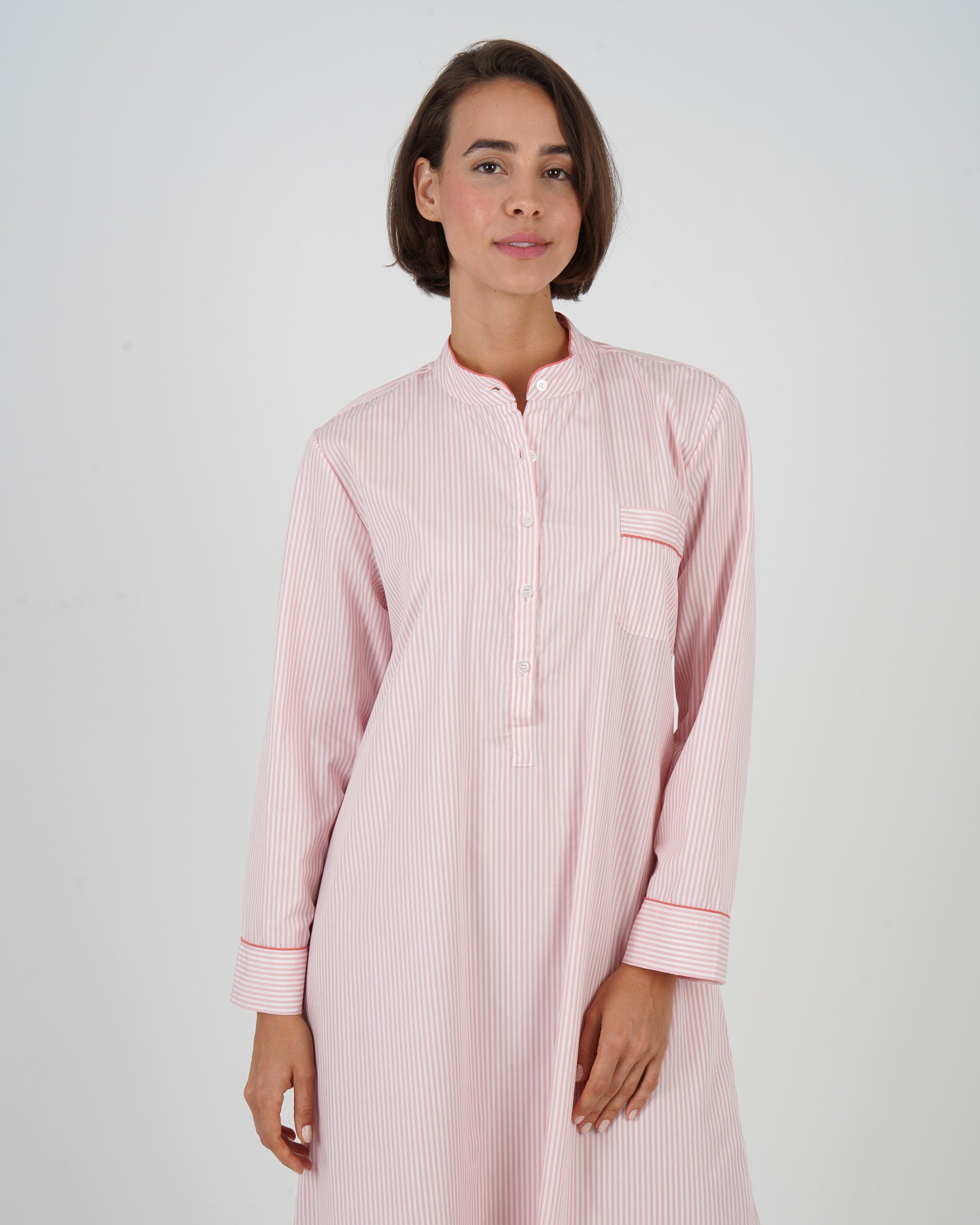 Women's Classic Cotton Estelle Grandad Collar Nightshirt - Mapperton Stripe