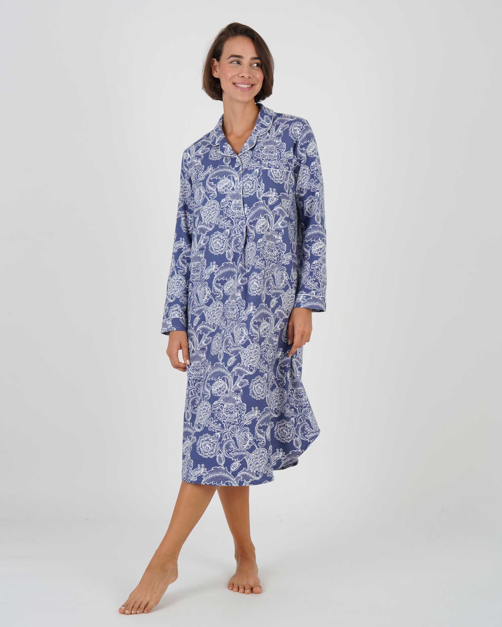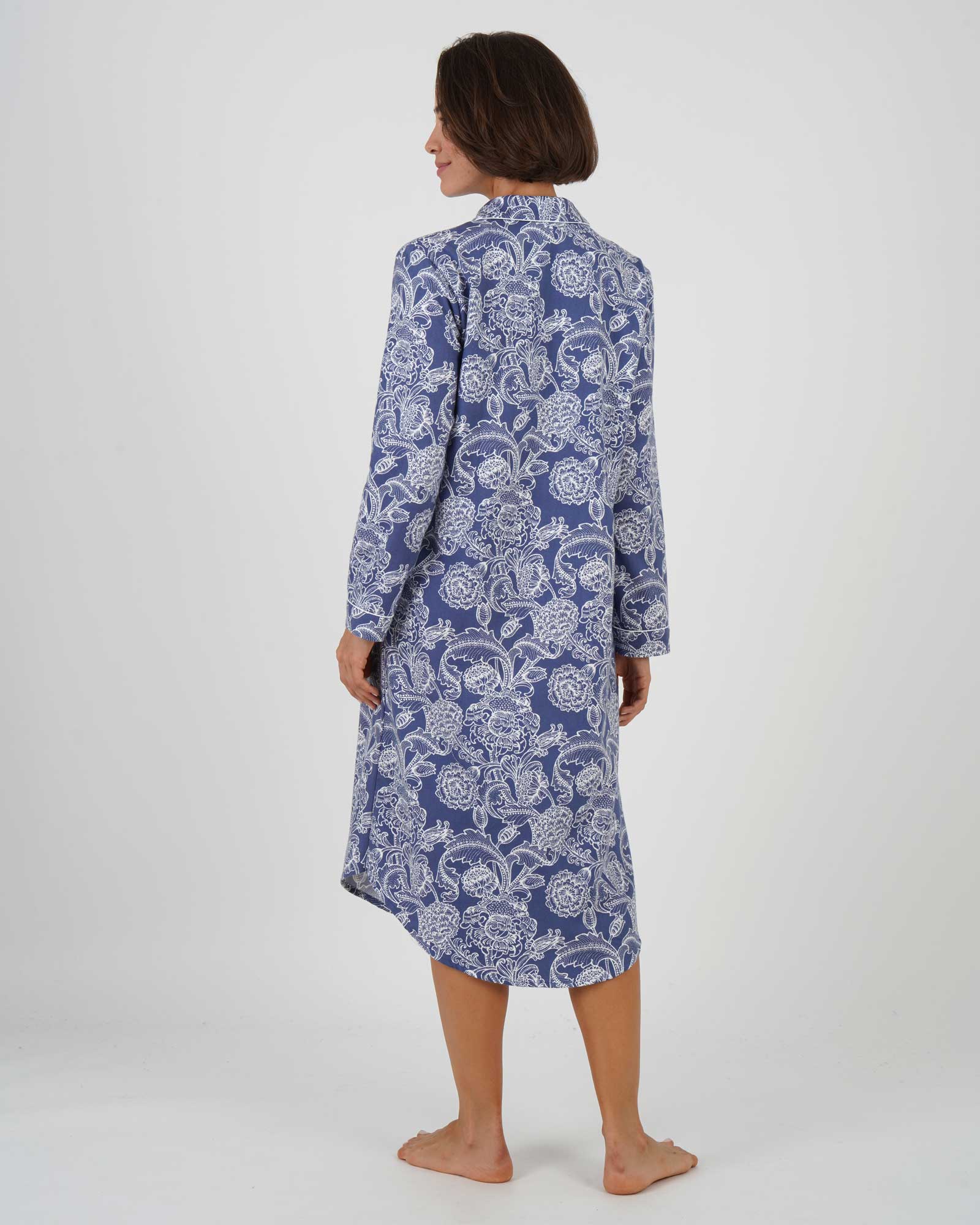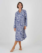 Women's Brushed Cotton Nightshirt - Paisley Flower Blue