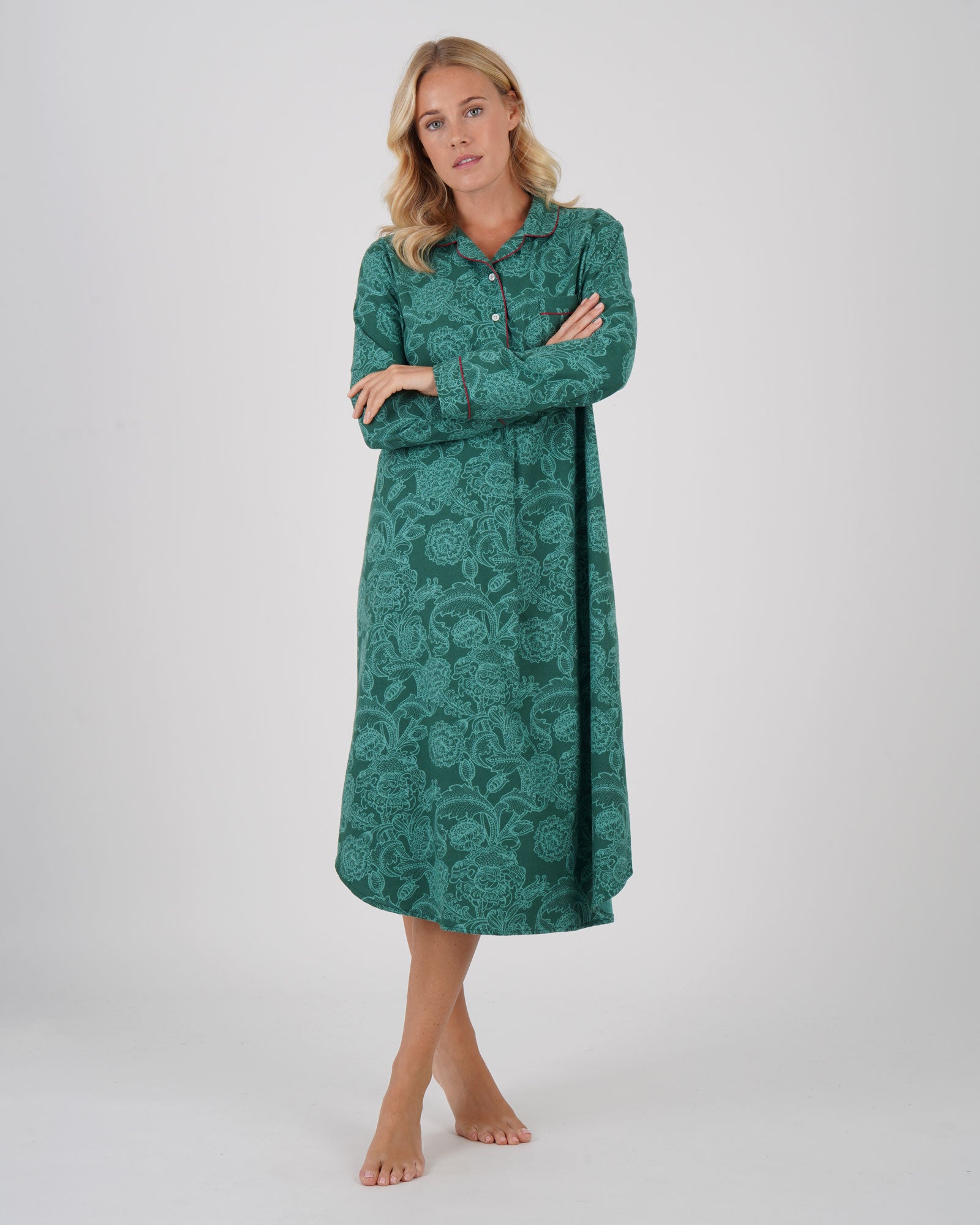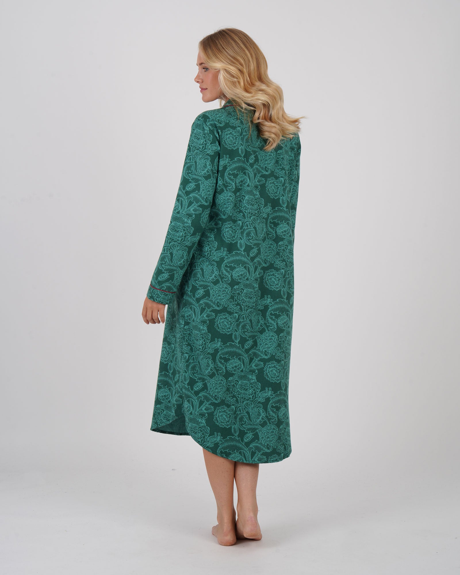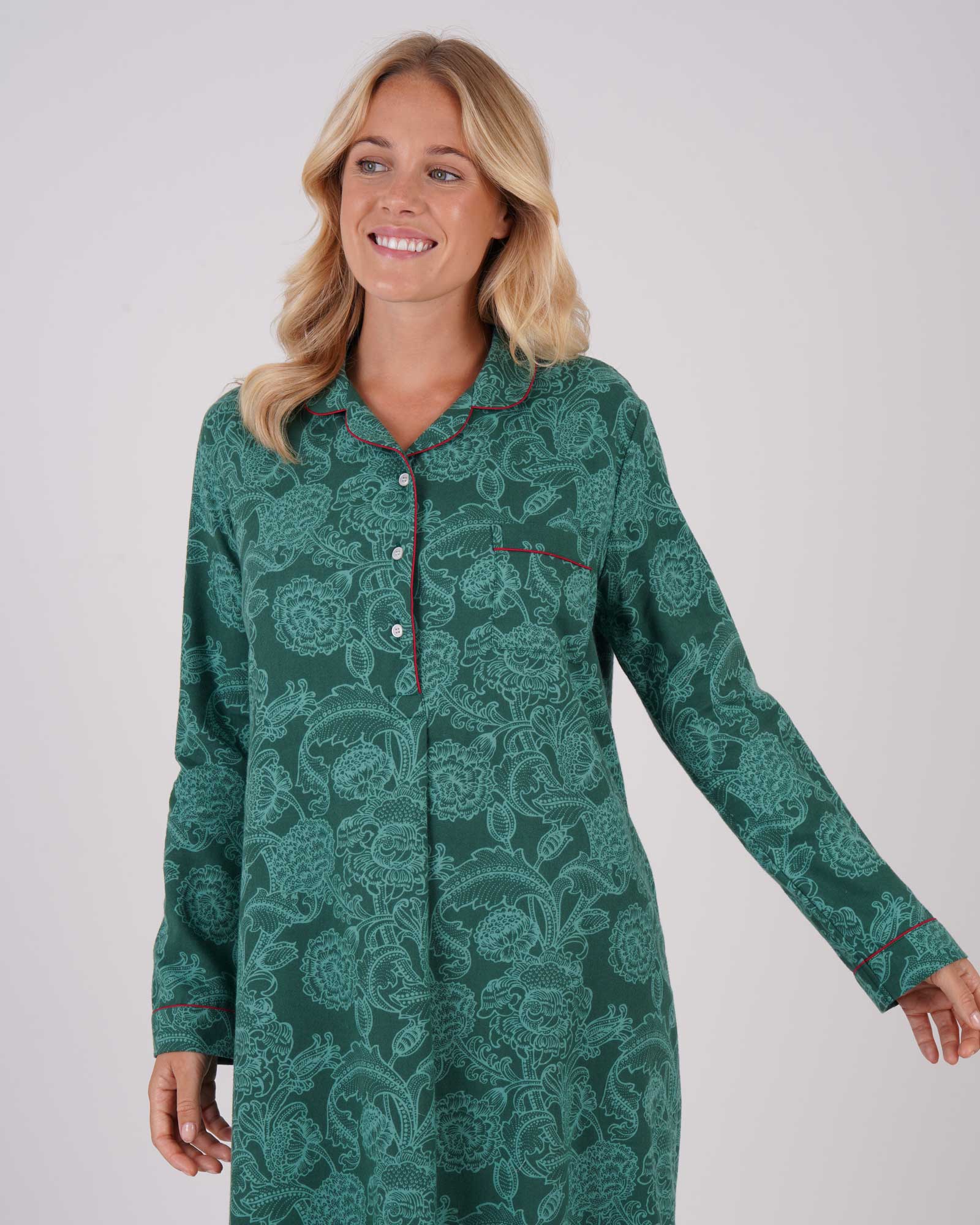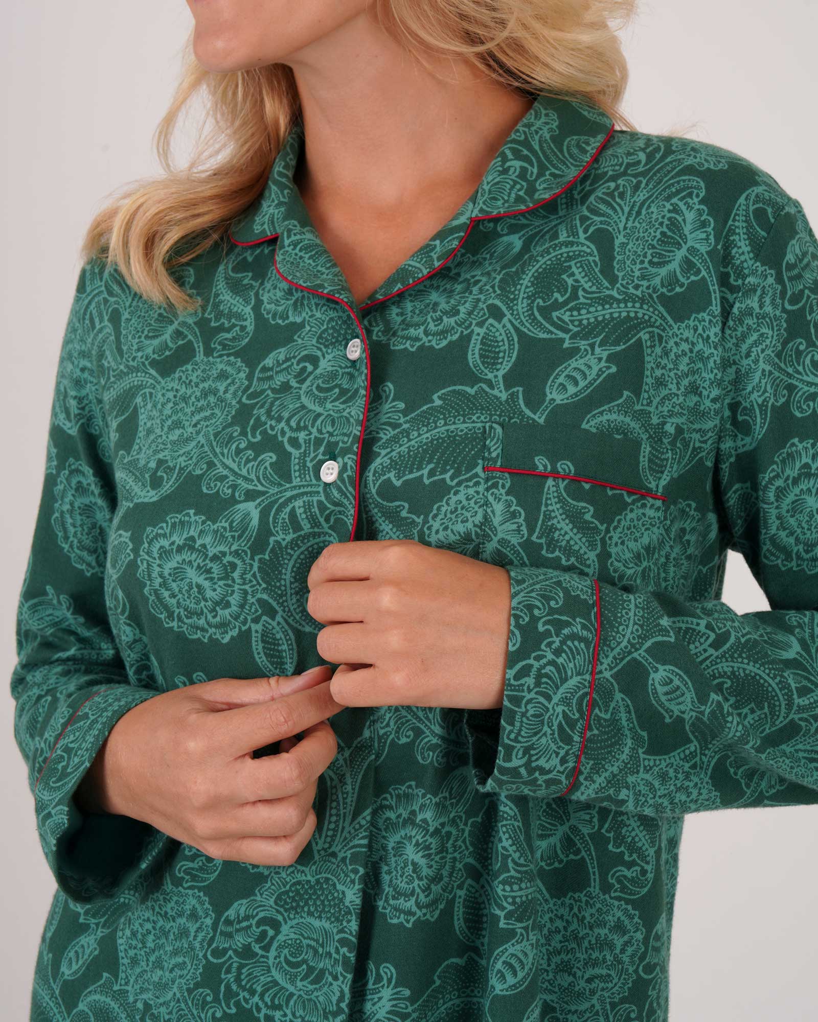 Women's Brushed Cotton Nightshirt - Paisley Flower Green