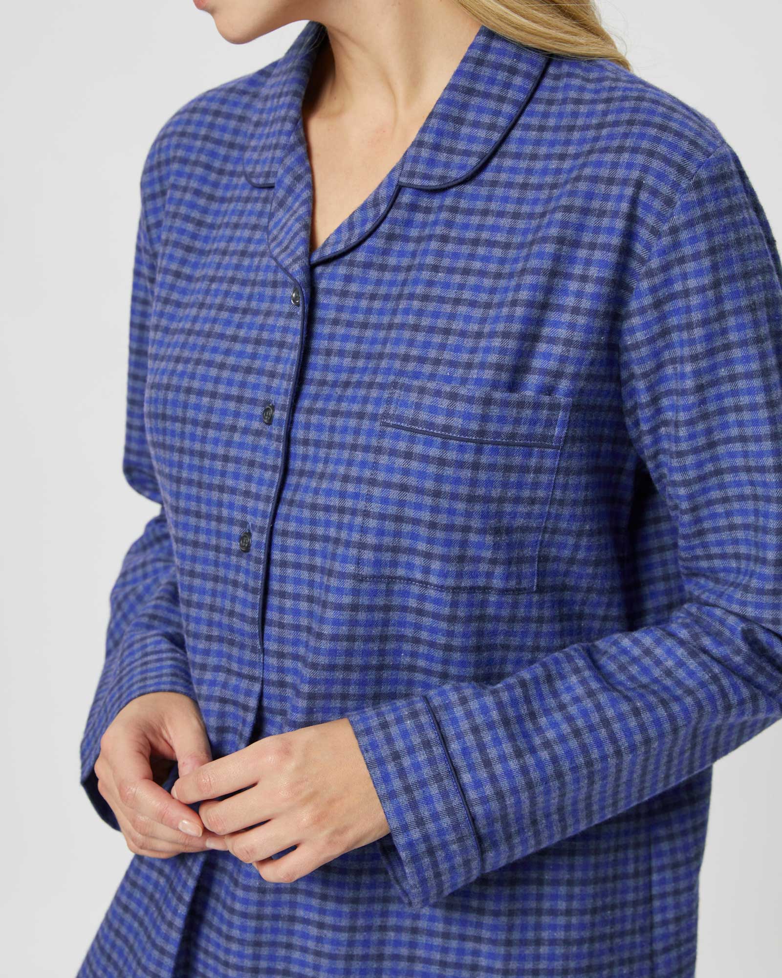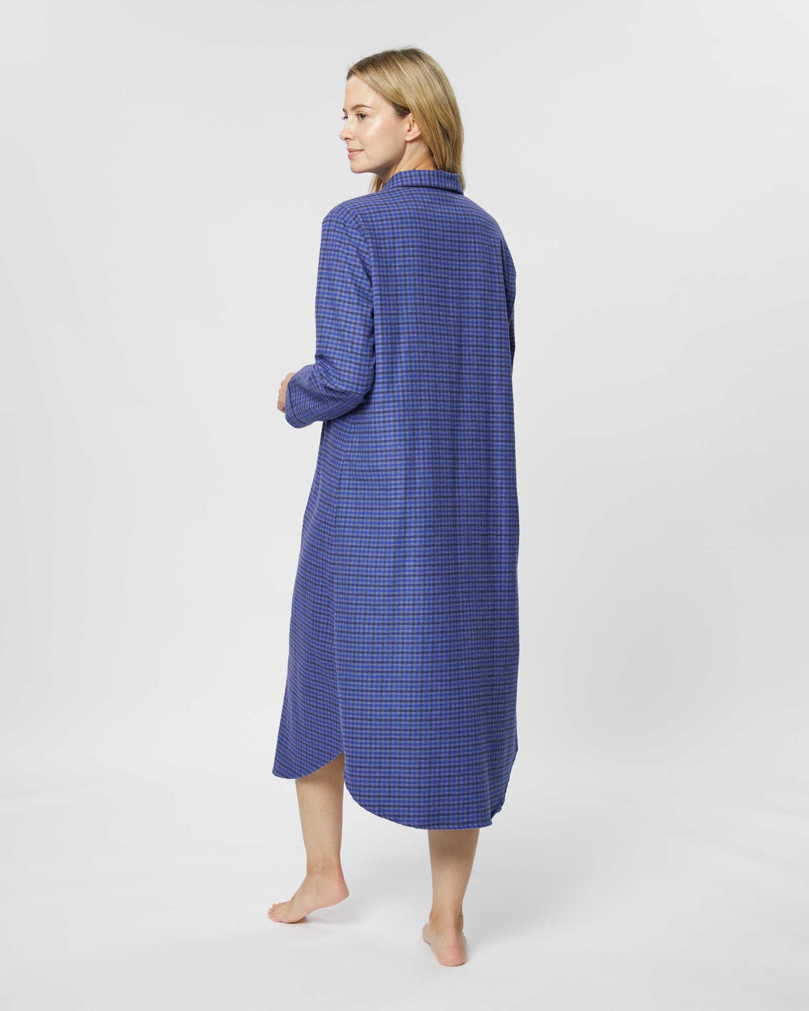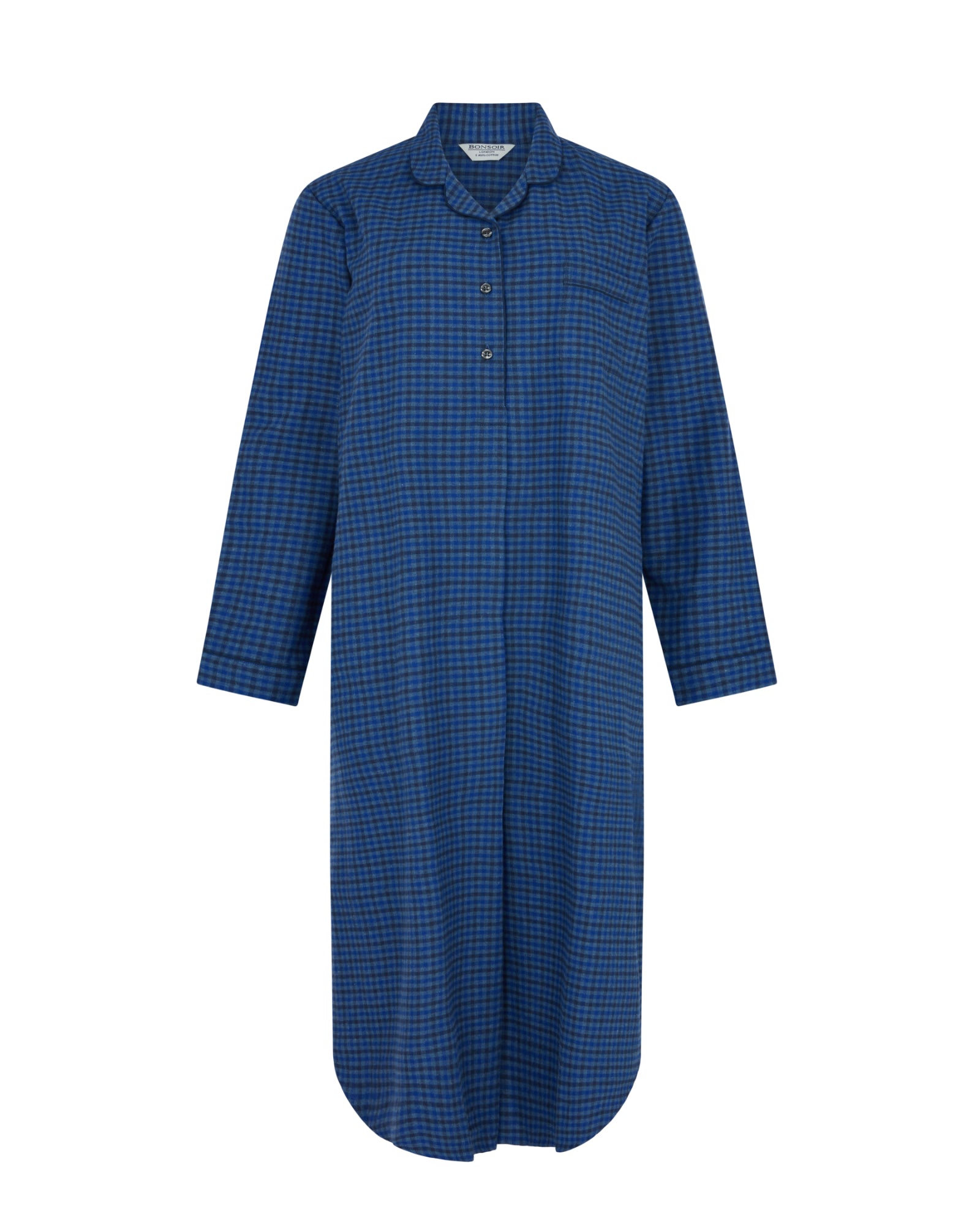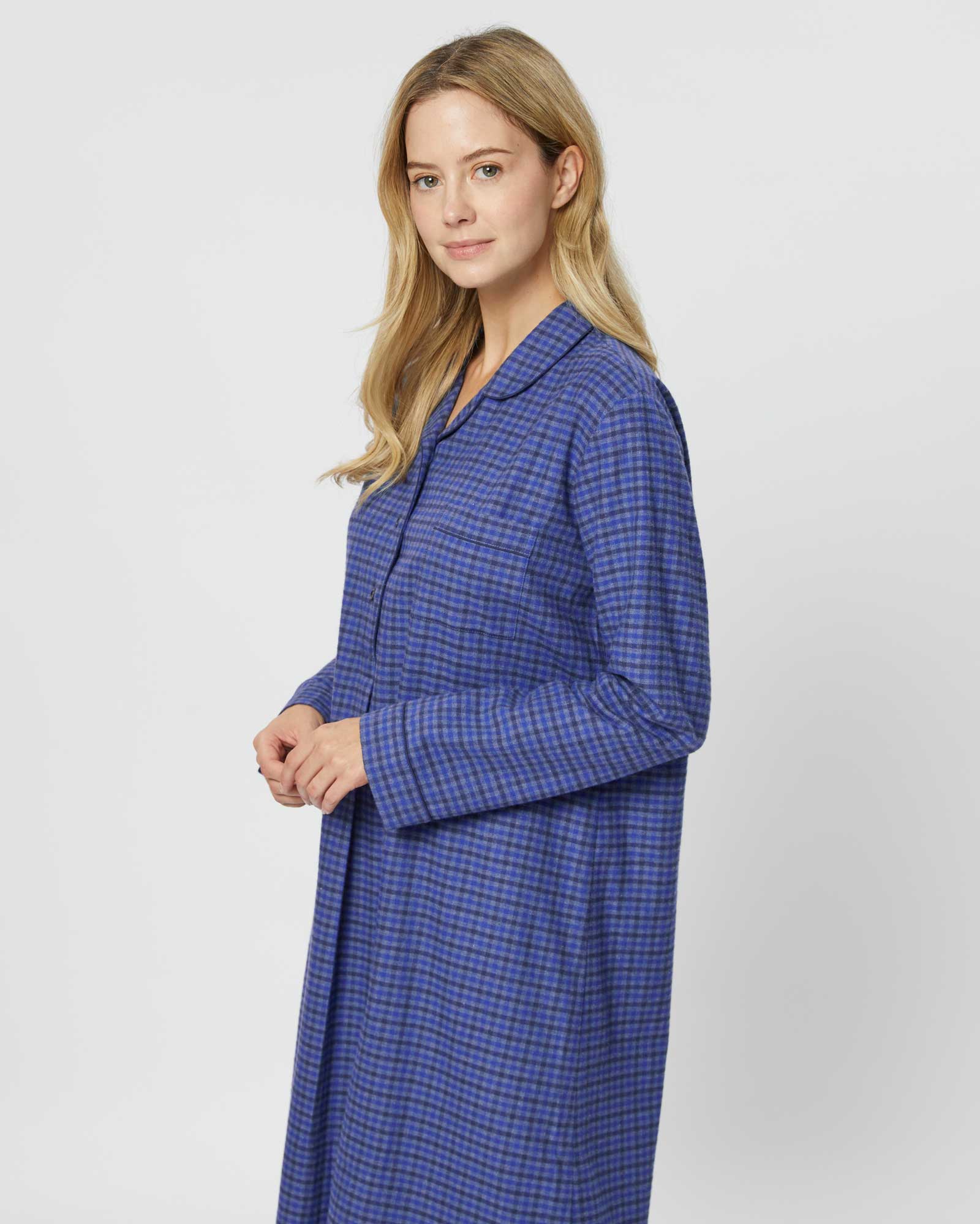 The perfect piece for sleep or lounging at home, it is expertly cut for comfort and style.  The nightshirt features a button placket with a shirt-tail hem, it is finished with complementary piping on the collar, cuffs and breast pocket.