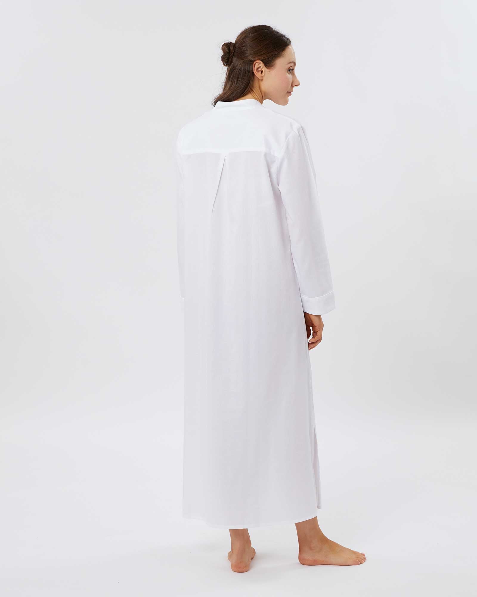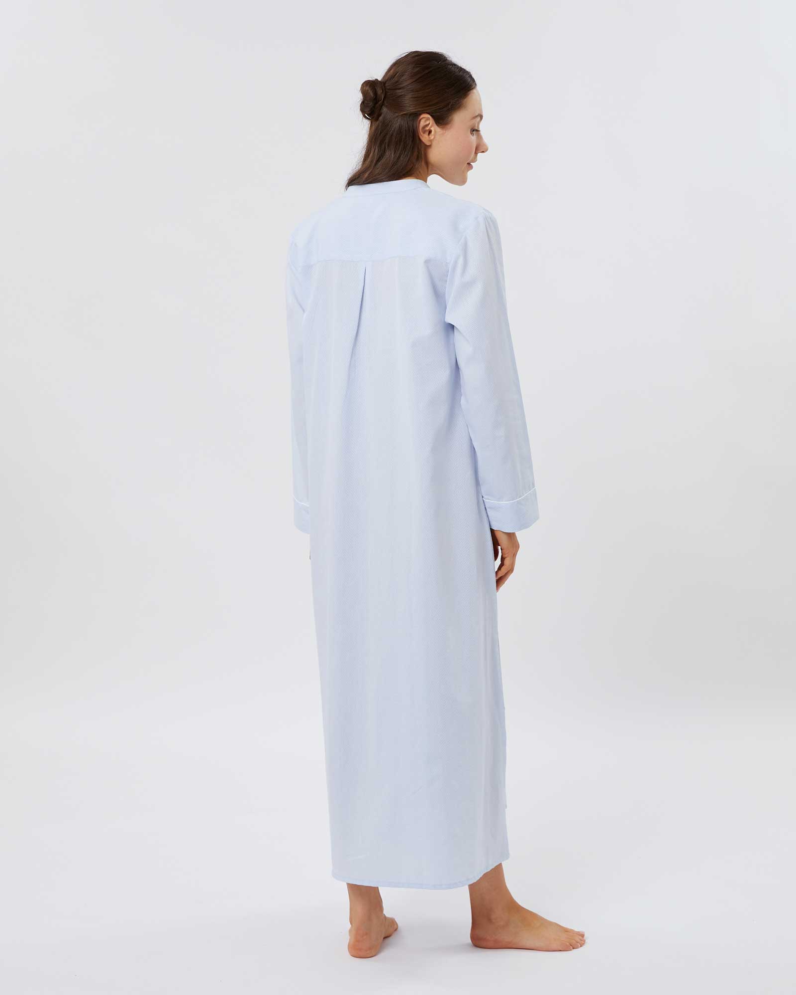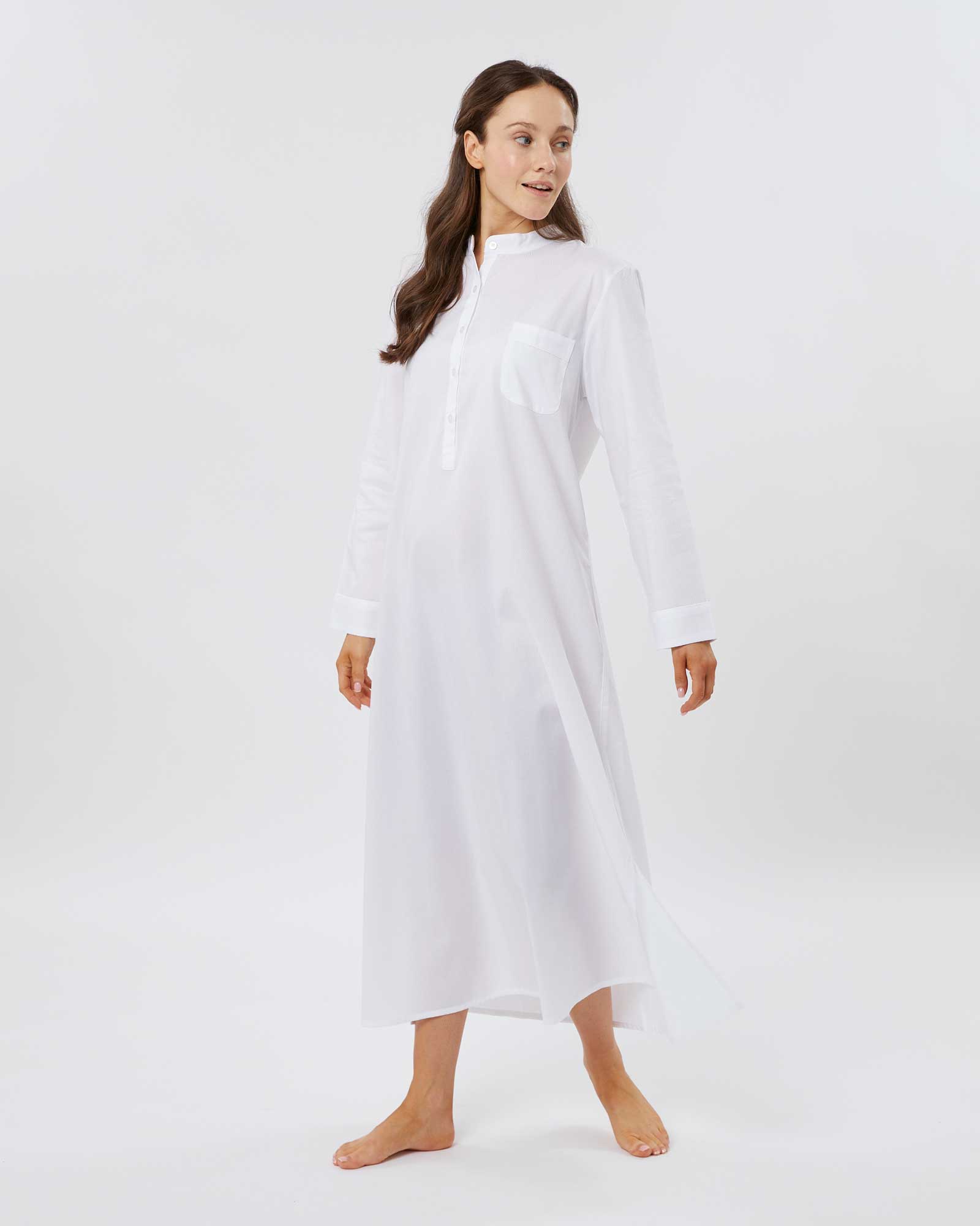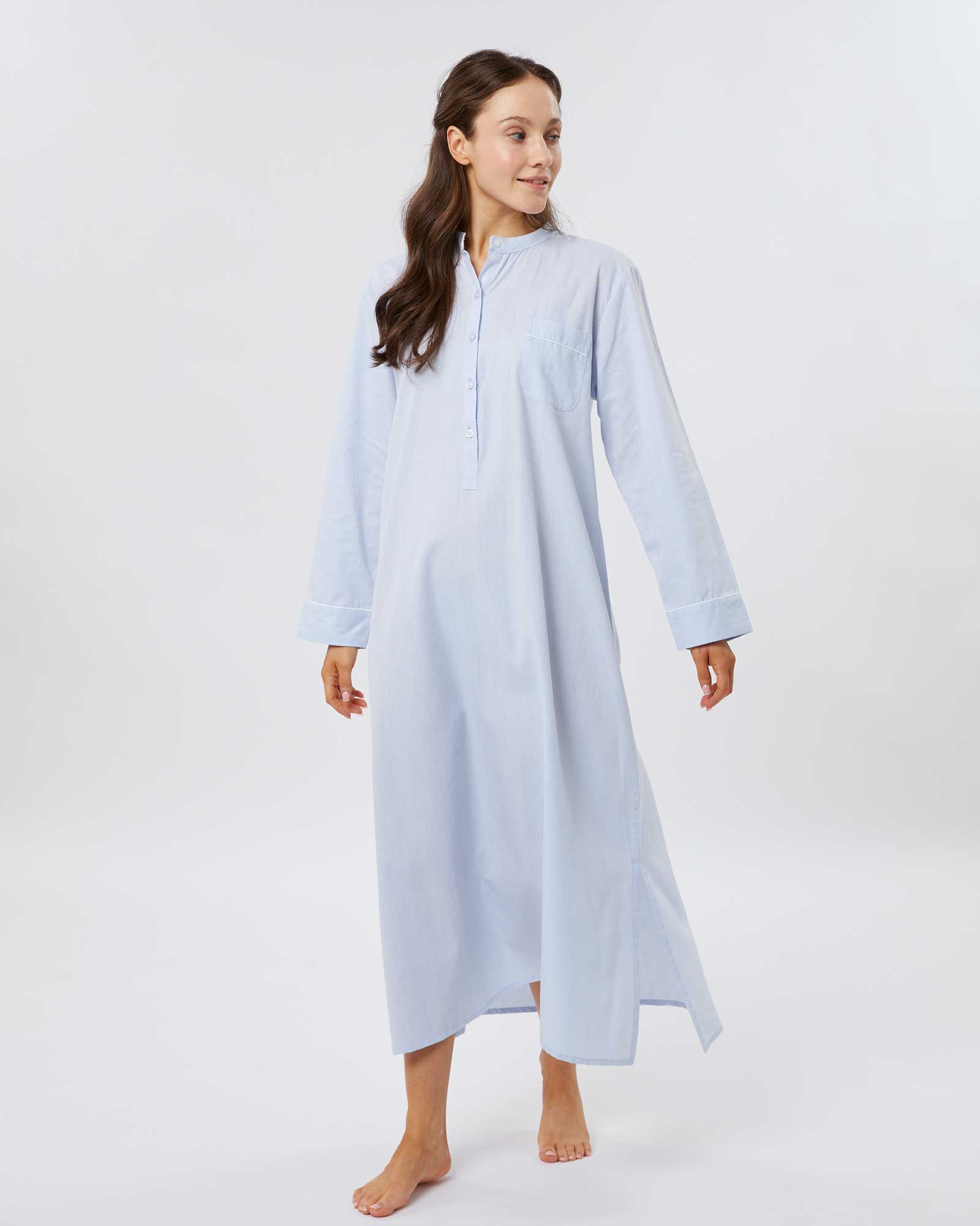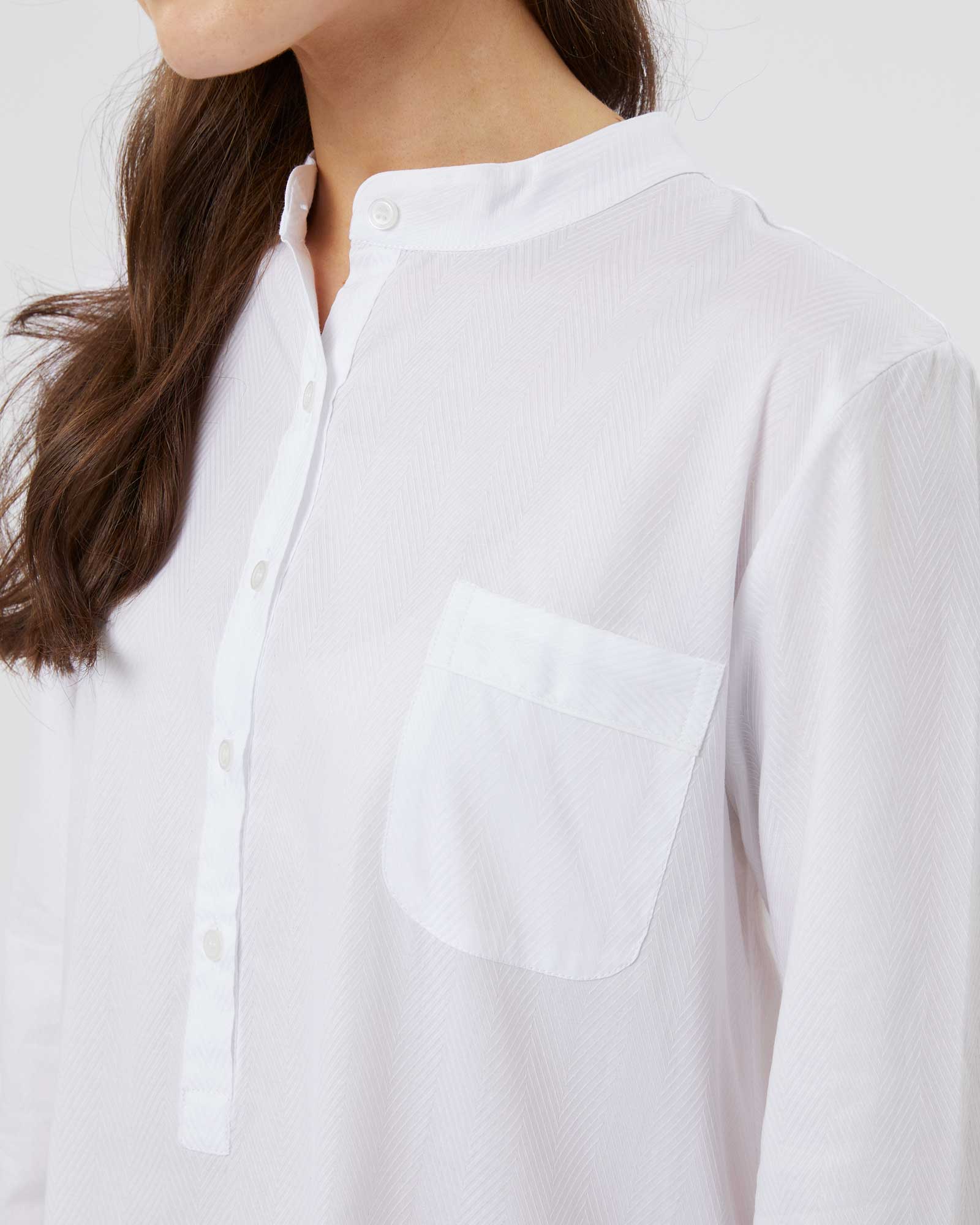 Introducing our women's Estelle Grandad Collar Nightshirt.  Crafted from a beautiful smooth 100% cotton with a woven satin herringbone design, our jacquard nightshirt in pink is the perfect addition to your nightwear collection.