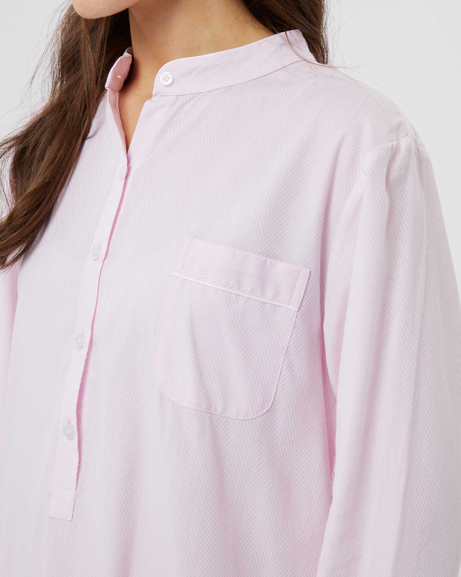 Women's Estelle Grandad Collar Nightshirt - Jacquard Pink