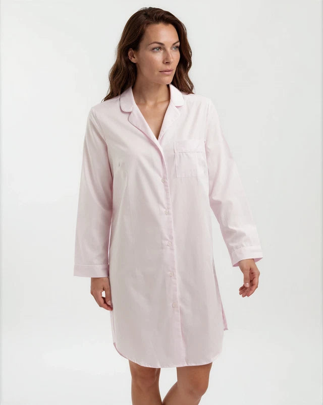 The perfect piece for sleep or lounging at home, our nightshirts are expertly cut for comfort and style. Featuring a shirt-tail hem and buttons all the way down the front, it is finished with complementary piping on the collar, cuffs and breast pocket.